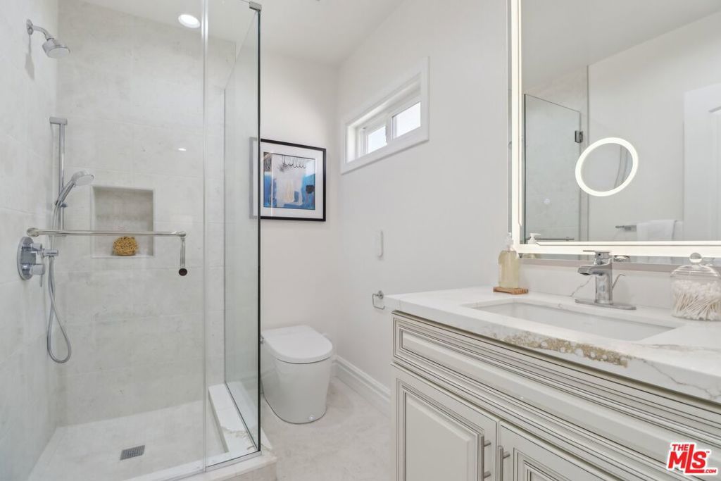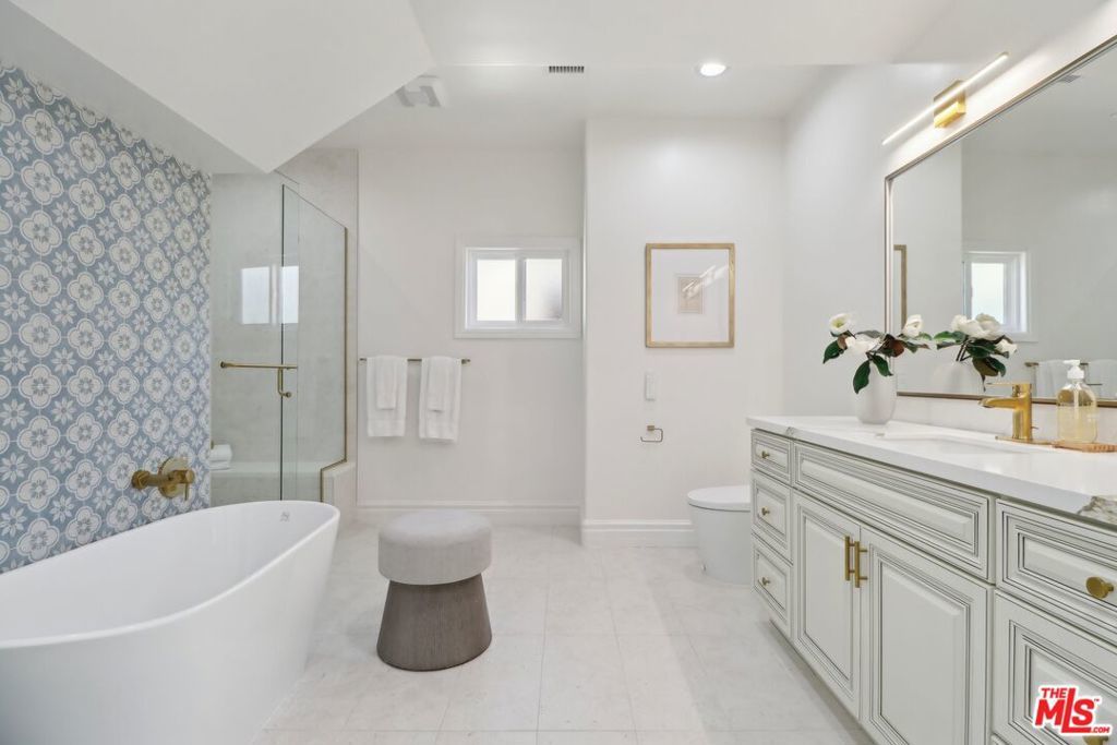 For Lease - Reimagined Tudor Residence with Modern Elegance. Nestled in a charming neighborhood, this beautifully reimagined Tudor home seamlessly blends timeless character with contemporary luxury and high-end functionality. All renovations and square footage expansions were completed with permits, ensuring quality and peace of mind.The home's classic charm is highlighted by grand arched windows that fill the interiors with natural light, showcasing exquisite craftsmanship and architectural details throughout. Inside, an open-concept layout connects spacious living areas featuring hardwood floors, built-in closets, and custom finishes that create a warm, inviting ambiance. Modern updatesincluding sleek lighting, refined cabinetry, and designer tilecomplement the home's traditional appeal. The living area centers around a smart electric fireplace and is enhanced by Bose in-ceiling speakers for an immersive audio experience.The chef's kitchen is a true centerpiece, complete with a large quartz island, premium appliances, and a built-in wine fridgeperfect for entertaining. With four spacious bedrooms and four bathrooms, the home offers comfort and flexibility for every lifestyle. The master suite serves as a private retreat, featuring a spa-inspired ensuite with dual vanities, a soaking tub, a walk-in shower, and an expansive walk-in closet. Each additional bedroom includes its own ensuite bathroom, providing privacy and convenience for guests or family members.A separate den offers the ideal setting for a home office or study. Additional amenities include a laundry room with a built-in sink, EV-ready charging station, smart home security system, and a gated driveway with garage parking. Outdoors, the beautifully landscaped front yard and surrounding privacy hedges create a tranquil setting. The upstairs deck offers scenic viewsperfect for relaxing and enjoying Los Angeles sunsets.This move-in-ready luxury lease combines classic Tudor charm with modern sophistication in one of LA's most desirable neighborhoods.