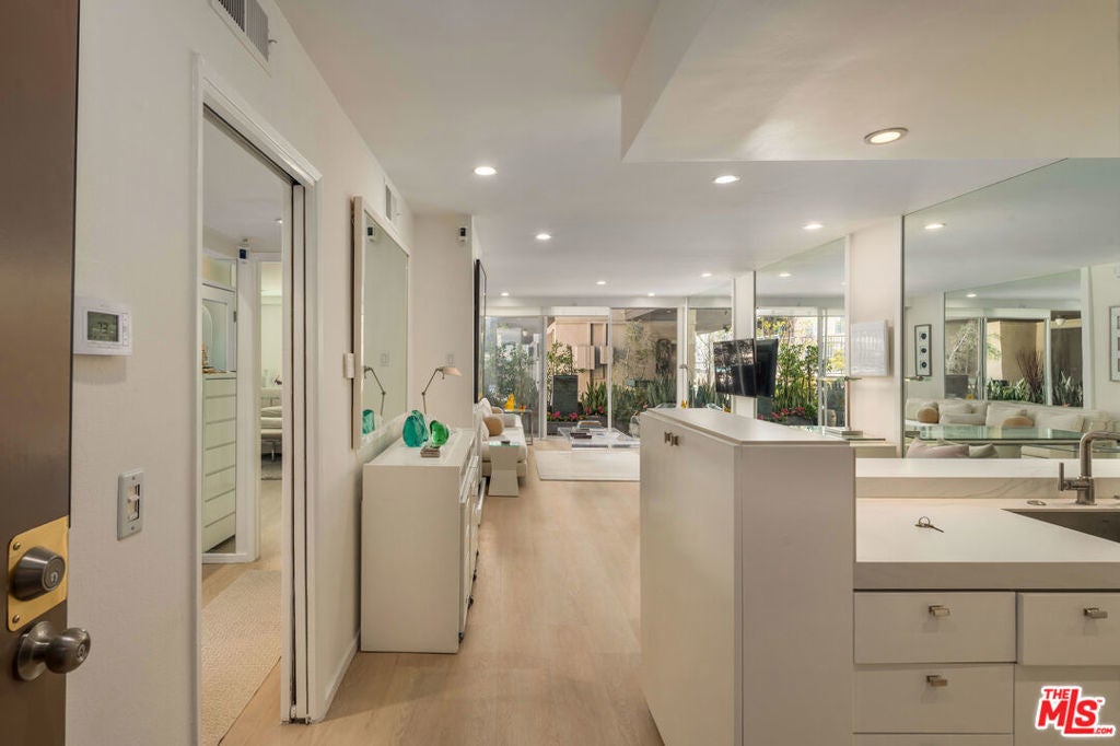 Experience contemporary city living at its finest in this sleek 1-bedroom, 1-bath residence at the sought-after Briarwood complex. This modern unit features an open-concept layout with clean lines, stylish finishes, and is flooded with natural light throughout. The living room flows seamlessly to a spacious private patio, complete with a tranquil stone waterfall floor fountain - the perfect place to unwind or entertain. A kitchen outfitted with stainless steel appliances combines elegance with modern appeal, while a thoughtfully designed layout ensures effortless flow to the bedroom. Ample space and a generous walk-in closet make the bedroom a serene retreat, complemented by an updated bath that adds a touch of luxury. Residents of Briarwood enjoy resort-style amenities, including a large pool, relaxing spa, and recreation room. Nestled just moments from the iconic Runyon Canyon, this home offers the perfect balance of urban convenience and access to nature - ideal for those who love both city energy and outdoor adventure.