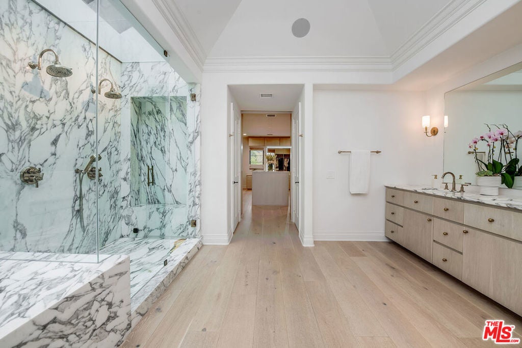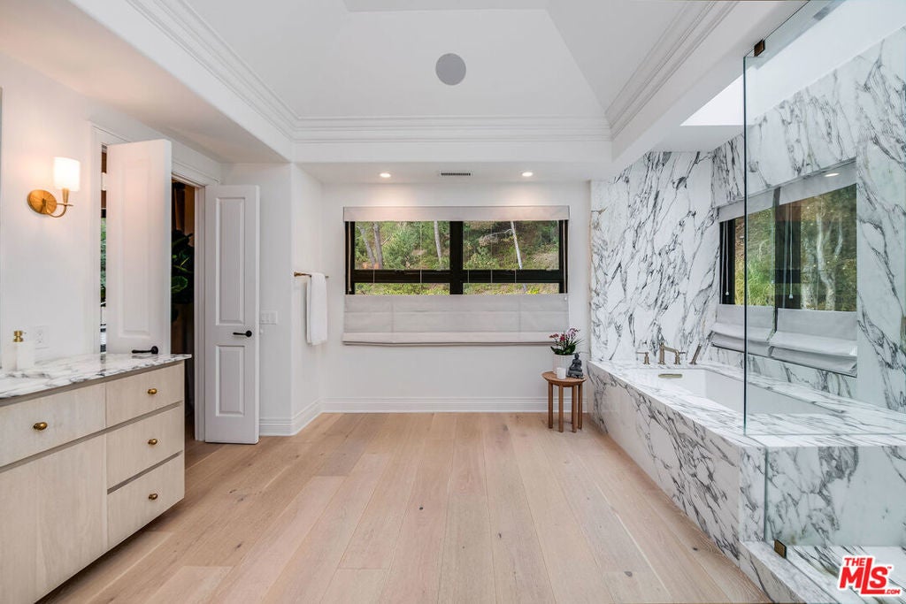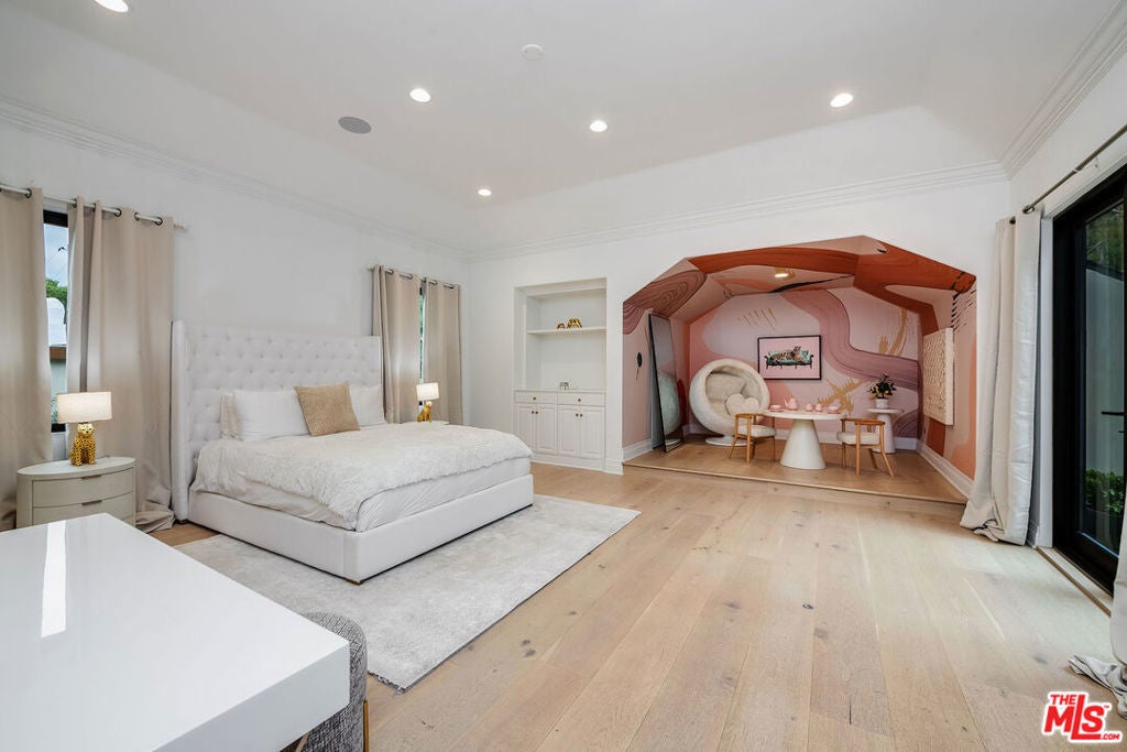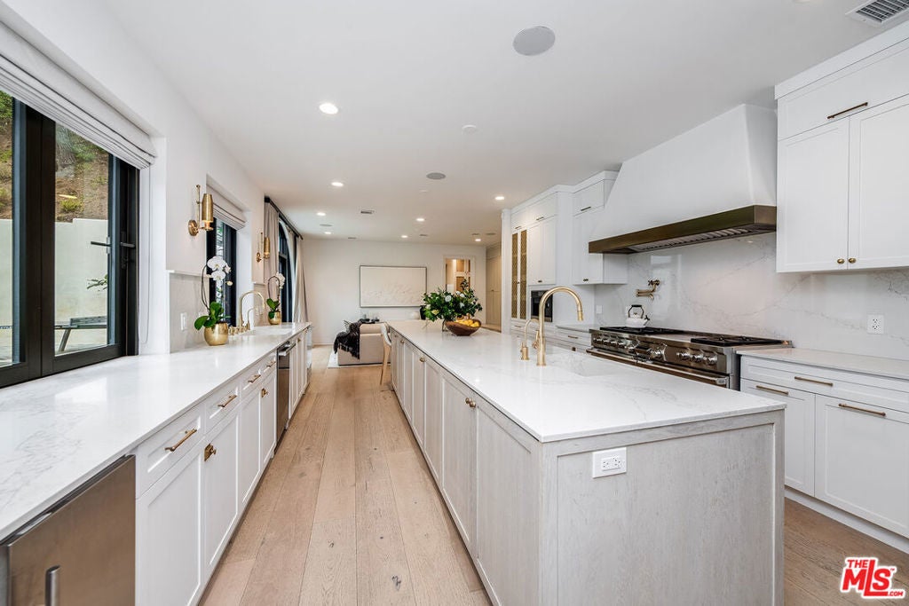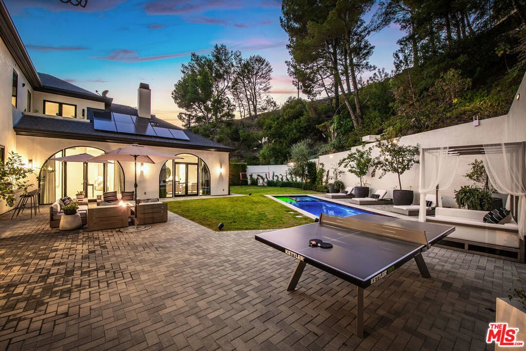 Exceptional 5 bedroom, 5.5 bathroom luxury estate located in the exclusive, guard-gated community of Hidden Valley Estates. This architectural masterpiece offers apx. 6,780 sq.ft. of expertly designed living space on an expansive apx. 1.10 acre lot. Fully remodeled and designer-finished in 2021, every detail has been thoughtfully curated to create a contemporary sanctuary of style and comfort. Inside, an expansive open kitchen and family room provide the perfect setting for modern living and entertaining. The chef's kitchen features top-of-the-line appliances, custom cabinetry, and stunning countertops, while the adjoining family room is bathed in natural light, offering a relaxed yet sophisticated ambiance. Formal living and dining rooms set the stage for elegant gatherings, and a dedicated media/game room with full bar ensures endless opportunities for leisure. The resort-style backyard is a true highlight, boasting a sparkling pool, cozy fire pit, and an outdoor kitchen ideal for dining al fresco. A state-of-the-art outdoor home theater, complete with surround sound, audio, and WiFi capability, creates the perfect venue for movie nights under the stars. Equipped with advanced smart home technology, the residence includes a Clare Home security system with glass-break sensors, Hik-Connect and Ring surveillance cameras with facial recognition and intercom doorbell, and a Lutron home automation system with dimmer switches and customizable lighting. Every element, from the hand-selected materials to the designer lighting, exemplifies refined craftsmanship and modern luxury. With abundant space for both relaxation and entertainment, this remarkable estate offers an unparalleled blend of sophistication, privacy, and comfort.