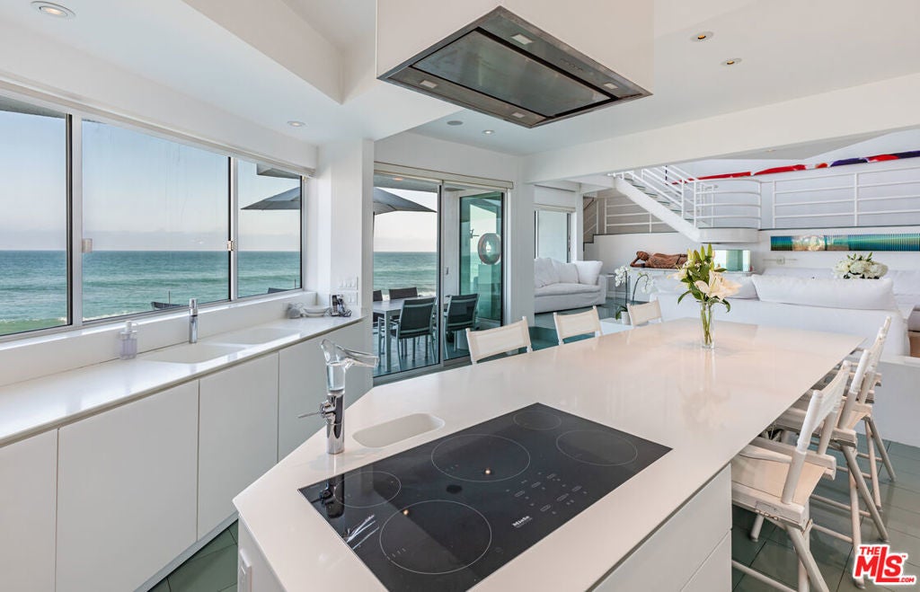 This is as beachfront as it gets. Experience iconic coastal living in this custom architectural home by FAIA architect David Lawrence Gray, nestled on Malibu's serene Dog Beach. This beach house offers breathtaking whitewater views of Catalina and the Queen's Necklace from Palos Verdes to Santa Monica. It's not surprising it was featured in Architectural Digest and other luxury design publications. Find three sleek bedrooms, each with ensuite bathrooms adorned in luxurious marble, limestone, highest quality fixtures and spa-like amenities. The primary suite doubles as a loft, featuring a private deck, custom Poliform closets, and a bathroom with a spa tub and shower overlooking the sea. The gourmet Boffi kitchen includes Miele appliances with 3 ovens, induction range, built-in coffee machine, refrigerated wine column, and a spacious center dining island. Enjoy meals with panoramic ocean vistas from the dining island and the spacious dining patio. Additional features include Italian porcelain floors, Thasos marble fireplace, Fleetwood doors and windows, and an integrated sound system throughout. Enjoy a Blue Moon private spa area, outdoor shower, and direct stairs to the beach.With a three-car garage, driveway, and proximity to Malibu's renowned amenities, this residence is a rare offering. Come see for yourself.