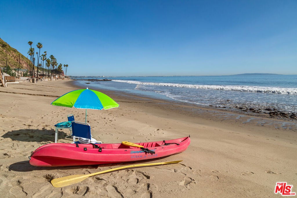 This is as beachfront as it gets. Experience iconic coastal living in this custom architectural home by FAIA architect David Lawrence Gray, nestled on Malibu's serene Dog Beach. The home has been meticulously maintained and updated by the current owner over the past 39 years with the highest design and quality elements in consultation with the architect. This beach house offers breathtaking whitewater views of Catalina and the Queen's Necklace from Palos Verdes to Santa Monica. It's not surprising it was featured in Architectural Digest and other luxury design publications. Find three sleek bedrooms, each with ensuite bathrooms adorned in luxurious marble, limestone, highest quality fixtures and spa-like amenities. The primary suite doubles as a loft, featuring a private deck, custom Poliform closets, and a bathroom with a spa tub and shower overlooking the sea. The gourmet Boffi kitchen includes Miele appliances with 3 ovens, induction range, built-in coffee machine, refrigerated wine column, and a spacious center dining island. Enjoy meals with panoramic ocean vistas from the dining island and the spacious dining patio. Additional features include Italian porcelain floors, Thasos marble fireplace, Fleetwood doors and windows, and an integrated sound system throughout. Enjoy a Blue Moon private spa area, outdoor shower, and direct stairs to the beach. Solar power with three Tesla power walls for battery backup. With a three-car garage, driveway, and proximity to Malibu's renowned amenities, this residence is a rare offering. Come see for yourself.