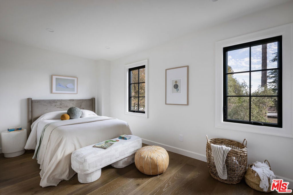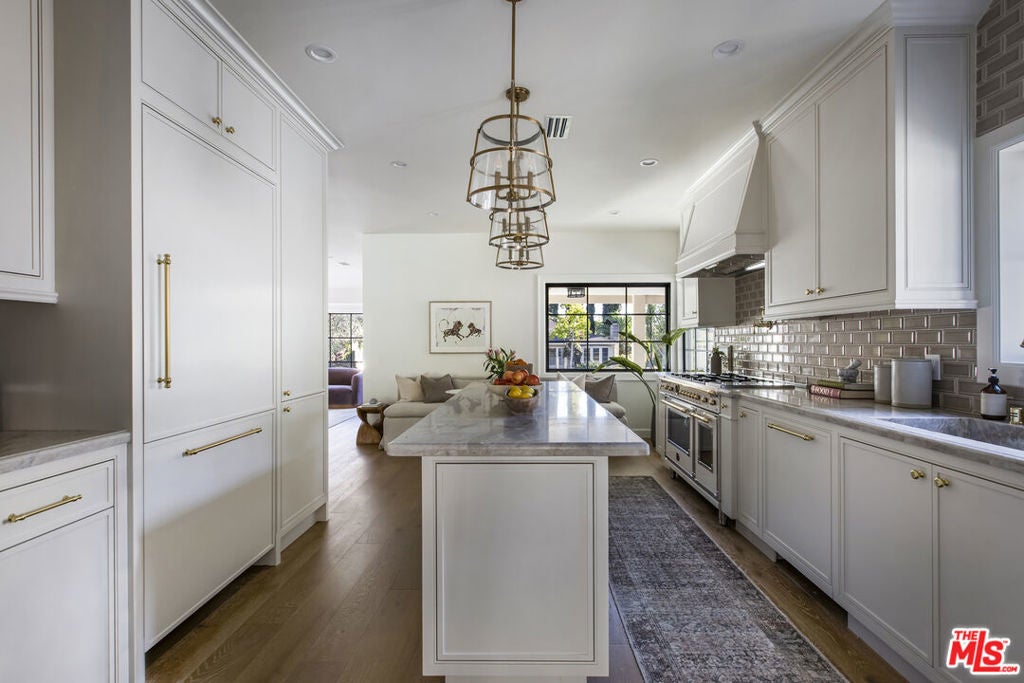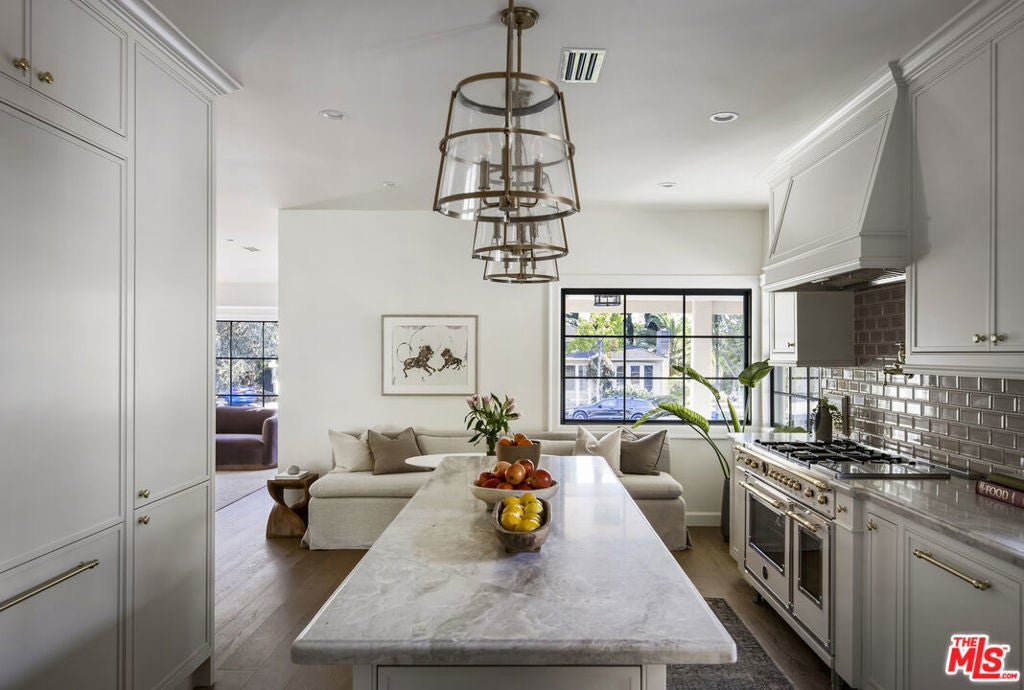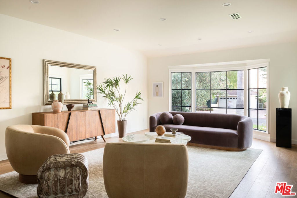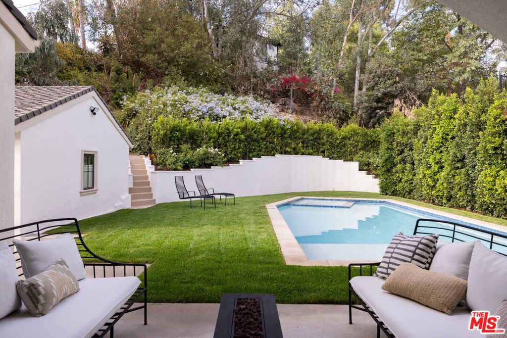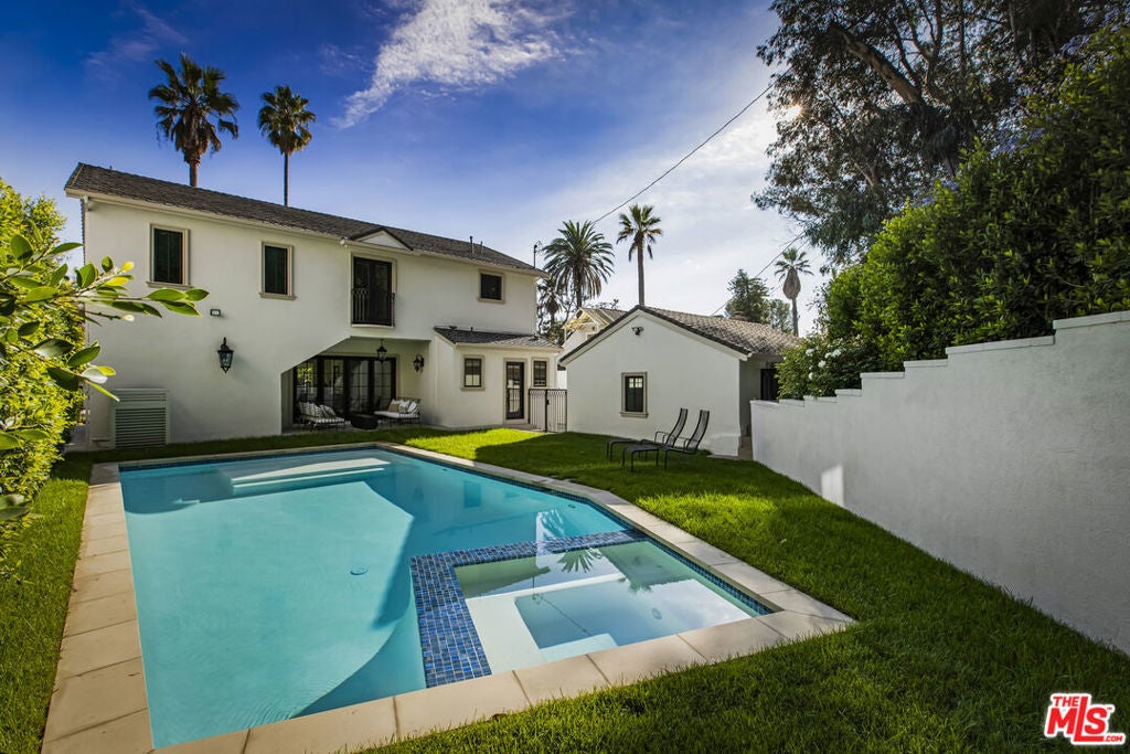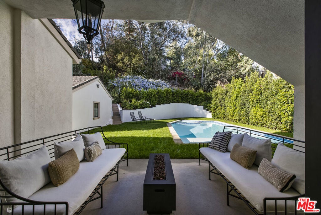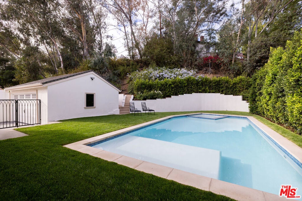 Perched on prestigious Hill Drive in Eagle Rock, this newly remodeled two-story Colonial Revival exudes timeless elegance with modern sophistication. Situated on the north side of the street on a large, beautifully landscaped lot, this five-bedroom, five-bath masterpiece showcases exceptional craftsmanship and pride of ownership. A private driveway leads to lush gardens with custom uplighting and a porte-cochere entry. Inside, the grand, light-filled living room features soaring ceilings, new wide-plank wood flooring, and a picture window overlooking Hill Drive. The open floor plan flows seamlessly into the dining area and gourmet kitchen, equipped with a Bertazzoni range, Fisher & Paykel refrigerator, and soft-close cabinetry. Just off the kitchen sits a convenient laundry room and powder room. Double doors open to a large, private backyard oasis complete with a sparkling pool, spa, and covered patio with a built-in fire pit and surrounded by lush landscaping - perfect for entertaining or relaxing in style. A spacious main-level bedroom with an ensuite bath offers a comfortable retreat for guests or extended family. A gracefully curved staircase with a custom wrought-iron railing leads to the private upstairs quarters, where the light-filled primary suite includes dual closets and a beautifully designed en-suite bathroom. Four additional bedrooms and three bathrooms offer flexibility for family, work, or creative pursuits. The finished garage offers a versatile bonus space ideal for an office, studio, or media room. The home has been remodeled from top to bottom with all-new Milgard windows and doors, updated systems, and designer finishes throughout. Set within the sought-after Dahlia Heights Elementary school district, this residence captures the essence of modern California living on one of Eagle Rock's most cherished streets. Timeless design, refined detail, and effortless elegance - this Hill Drive stunner has it all.