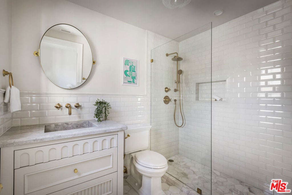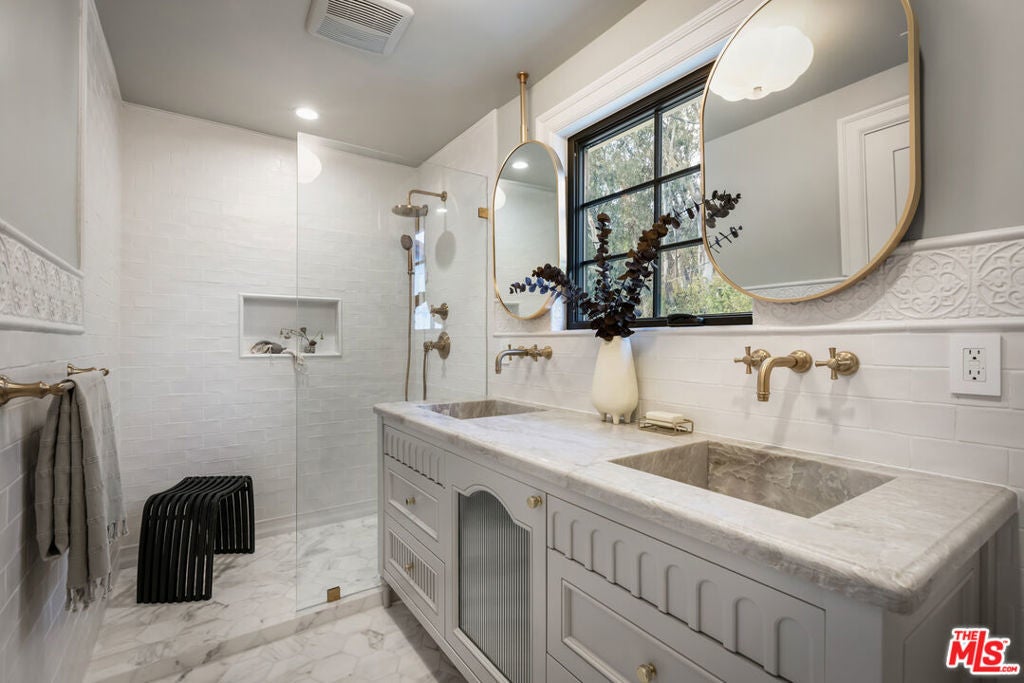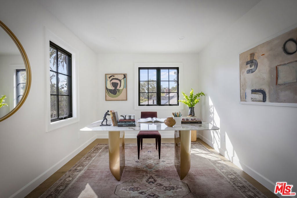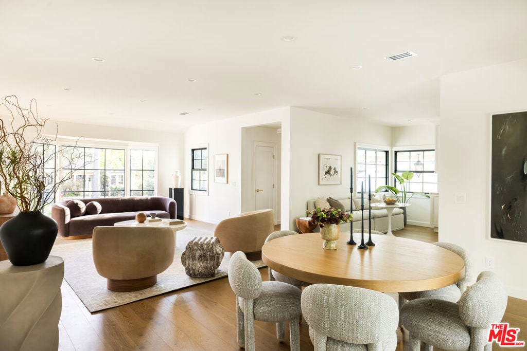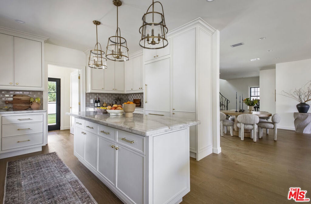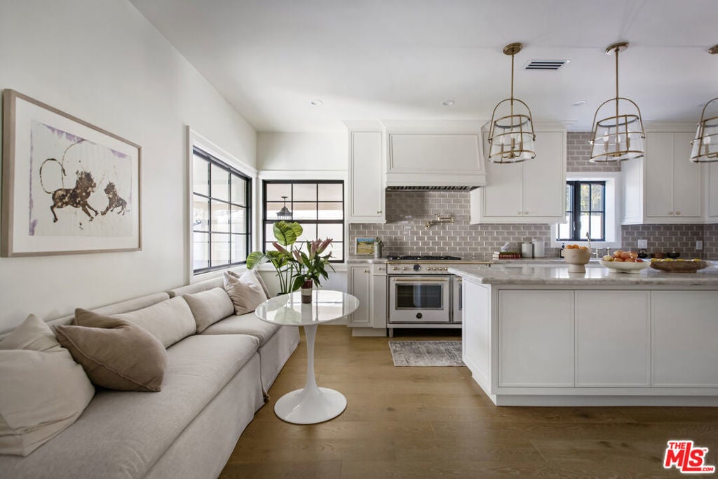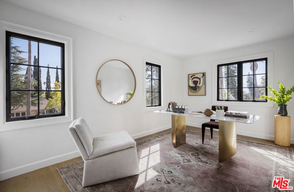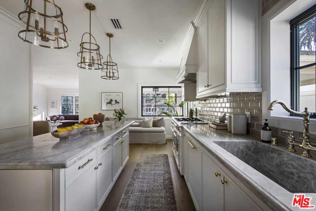 Perched on prestigious Hill Drive in Eagle Rock, this newly remodeled two-story Colonial Revival exudes timeless elegance with modern sophistication. Situated on the north side of the street on a large, beautifully landscaped lot, this five-bedroom, five-bath masterpiece showcases exceptional craftsmanship and pride of ownership. A private driveway leads to lush gardens with custom uplighting and a porte-cochere entry. Inside, the grand, light-filled living room features soaring ceilings, new wide-plank wood flooring, and a picture window overlooking Hill Drive. The open floor plan flows seamlessly into the dining area and gourmet kitchen, equipped with a Bertazzoni range, Fisher & Paykel refrigerator, and soft-close cabinetry. Just off the kitchen sits a convenient laundry room and powder room. Double doors open to a large, private backyard oasis complete with a sparkling pool, spa, and covered patio with a built-in fire pit and surrounded by lush landscaping - perfect for entertaining or relaxing in style. A spacious main-level bedroom with an ensuite bath offers a comfortable retreat for guests or extended family. A gracefully curved staircase with a custom wrought-iron railing leads to the private upstairs quarters, where the light-filled primary suite includes dual closets and a beautifully designed en-suite bathroom. Four additional bedrooms and three bathrooms offer flexibility for family, work, or creative pursuits. The finished garage offers a versatile bonus space ideal for an office, studio, or media room. The home has been remodeled from top to bottom with all-new Milgard windows and doors, updated systems, and designer finishes throughout. Set within the sought-after Dahlia Heights Elementary school district, this residence captures the essence of modern California living on one of Eagle Rock's most cherished streets. Timeless design, refined detail, and effortless elegance - this Hill Drive stunner has it all.