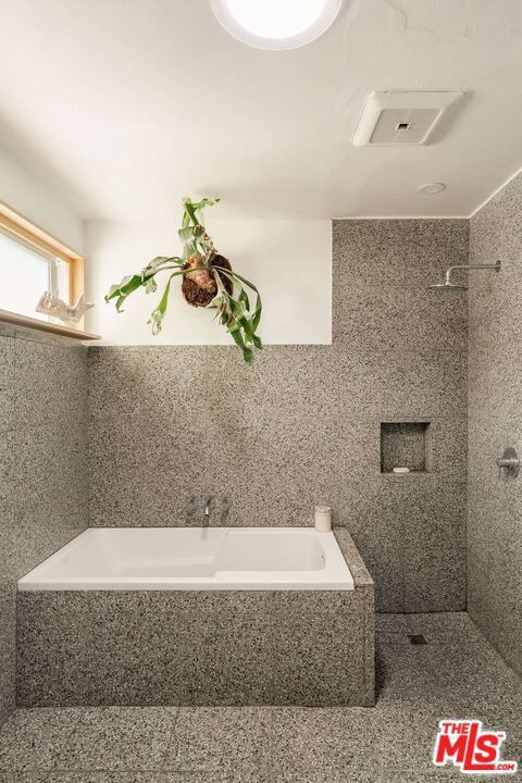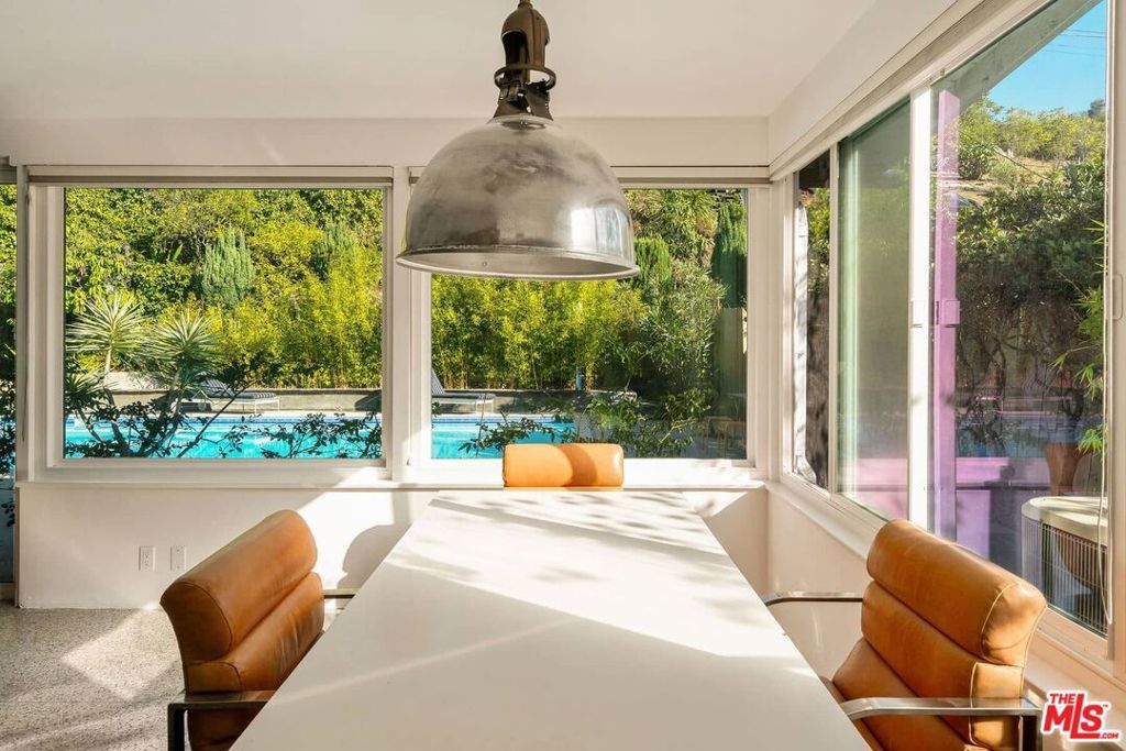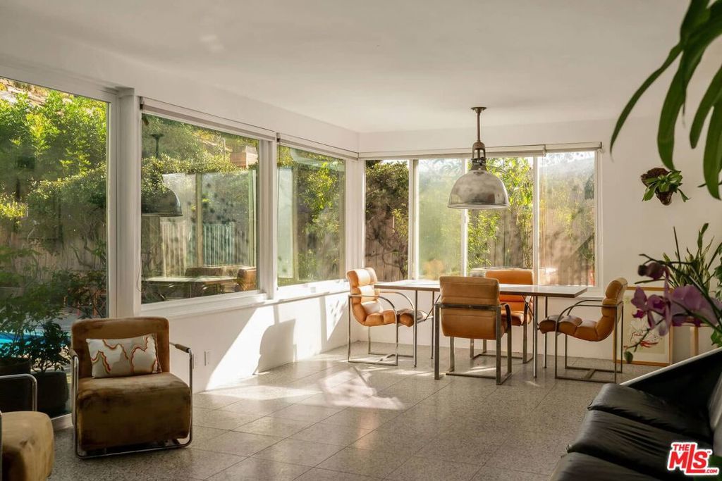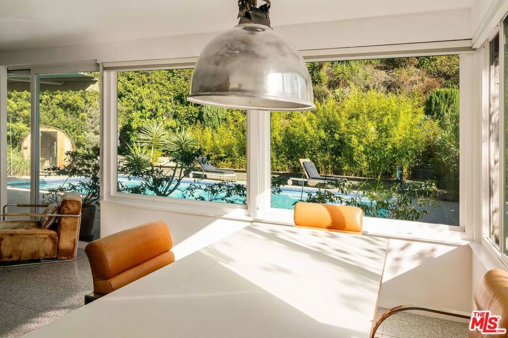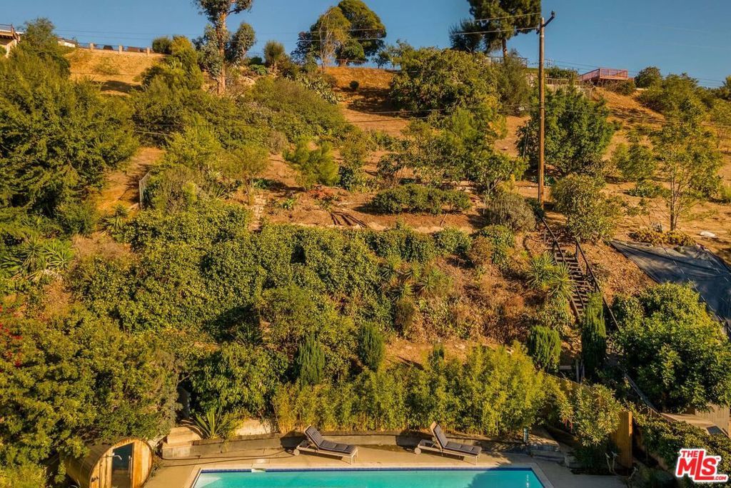 Nestled behind a veil of mature native greenery, this Mid-Century Modern ranch embodies the quiet sophistication of California's postwar design, where architecture and landscape exist in effortless dialogue. Thoughtfully restored to honor its original intent, the home balances authentic period character with a timeless refresh that feels both contemporary and enduring. At its heart, the kitchen celebrates the era's devotion to material integrity and craftsmanship, featuring a custom-fabricated " solid stainless-steel countertop, Elica appliances, and Reform cabinetry. Terrazzo tile extends throughout the home, providing visual cohesion and textural warmth, while glass sliding doors in both the living room and a bedroom open directly to the pool terrace, blurring the line between indoors and out. Outdoors, the residence reveals its tranquil rhythm: a private, bamboo-filled oasis anchored by a generous lap-sized pool, patio, and sauna nestled among California natives, complete with a private outdoor shower. The terraced hillside is planted with orange, lemon, avocado, kumquat, loquat, Pakistani mulberry, fig, and guava trees. A pathway leads to an upper terrace, ideal for sunset lounging, gardening, or creative retreat. The front garden, shaded by a mature mesquite, Desert Museum Palo Verdes, and another large fig, completes the home's connection to nature. Located within a neighborhood served by high-rated schools, this serene pocket of Monterey Hills offers proximity to DTLA, Pasadena, Highland Park, and Silver Lake, all within 15-20 minutes. Beyond your door, Monterey Park's acclaimed culinary scene beckons, its "Where to Eat" guide celebrating the city's diverse Asian, American, and Latin offerings, along with nearby recreation at Edison Trails Park and Barnes Park.