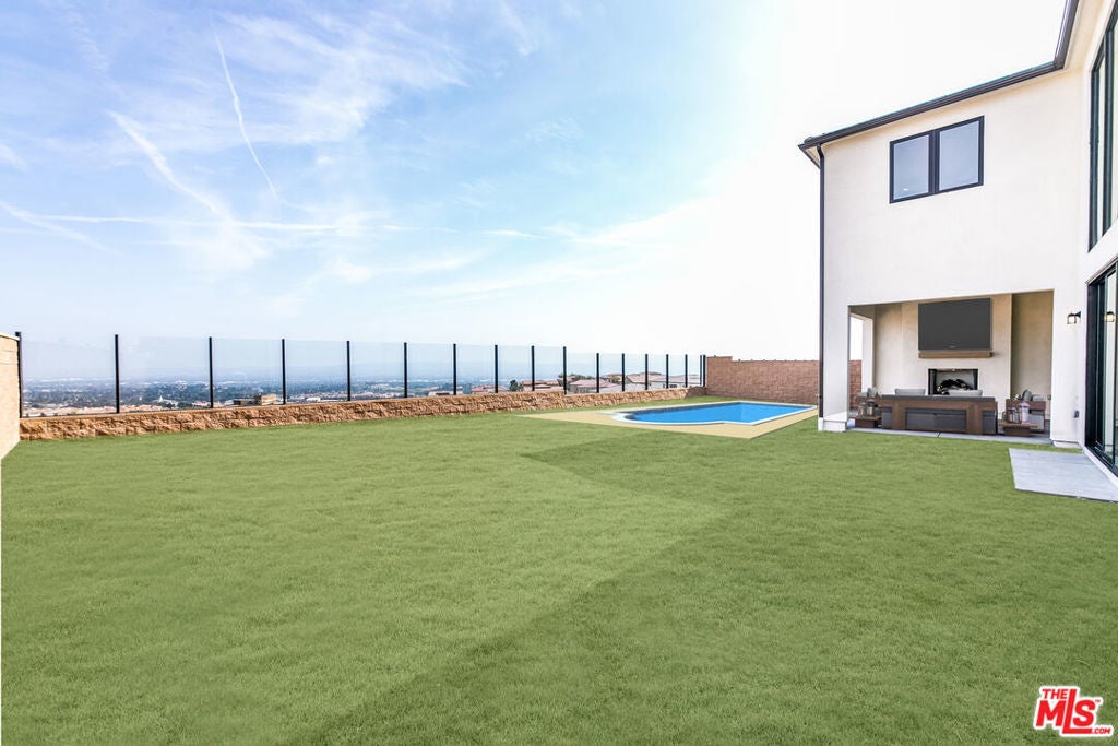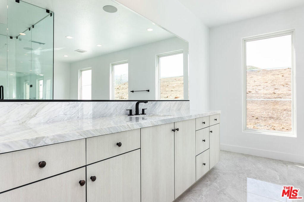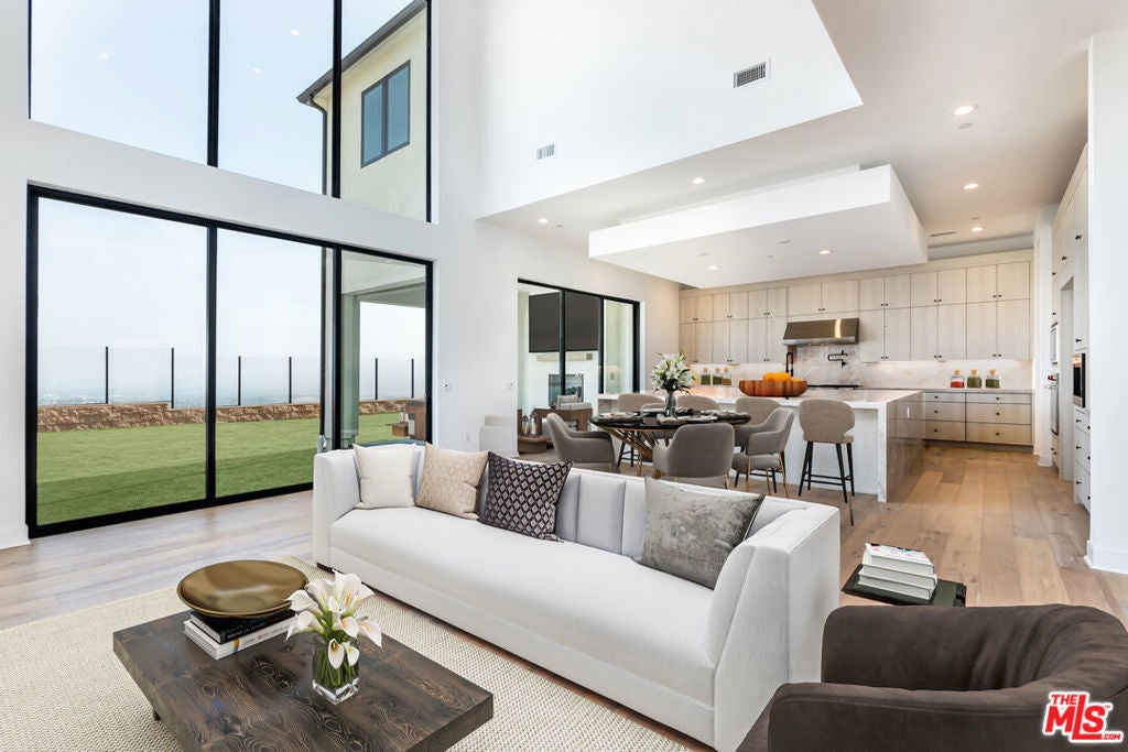 Experience modern luxury in this stunning 5,490 sq ft estate located in the exclusive, guard-gated Westcliffe community of Porter Ranch. Completed in July 2023, this 5-bedroom, 6-bathroom home features a sleek open floor plan, soaring two-story foyer with floating glass staircase, a spacious loft, and an incredible multi-generational suite- a private living space perfect for extended family, guests, or live-in support. Thoughtfully designed for comfort and independence, the suite includes its own living room, private entrance, full bathroom, walk-in closet, and built-in appliances, creating a true home within a home. At the heart of the main living area is a gourmet chef's kitchen, showcasing top-of-the-line Wolf appliances, an expansive Taj Mahal quartzite waterfall island, upgraded custom cabinetry, and a sleek pot filler. The home sits on a premium lot with unobstructed panoramic views of the city and mountains, with no homes directly across the street offering unmatched privacy and breathtaking sunrises and sunsets. Designed with exquisite finishes including custom stone bathrooms, upgraded lighting, oak floors, 2 sets of stacking glass doors and expansive glass windows, and a 72" color-changing crystal fireplace, every inch of this home exudes modern elegance. The primary suite is a luxurious retreat with a large sitting area, colossal walk-in closet, and spa-style marble bathroom. Additional features include surround sound, state-of-the-art home tech, fully paid solar, a three-car garage, and a spacious backyard with an outdoor fireplace perfect for entertaining or relaxing under the stars. Conveniently located near The Vineyards shopping center, Whole Foods, AMC, award-winning schools, and the 118 freeway, this is a rare opportunity to own one of Porter Ranch's most prestigious and breathtaking estates.