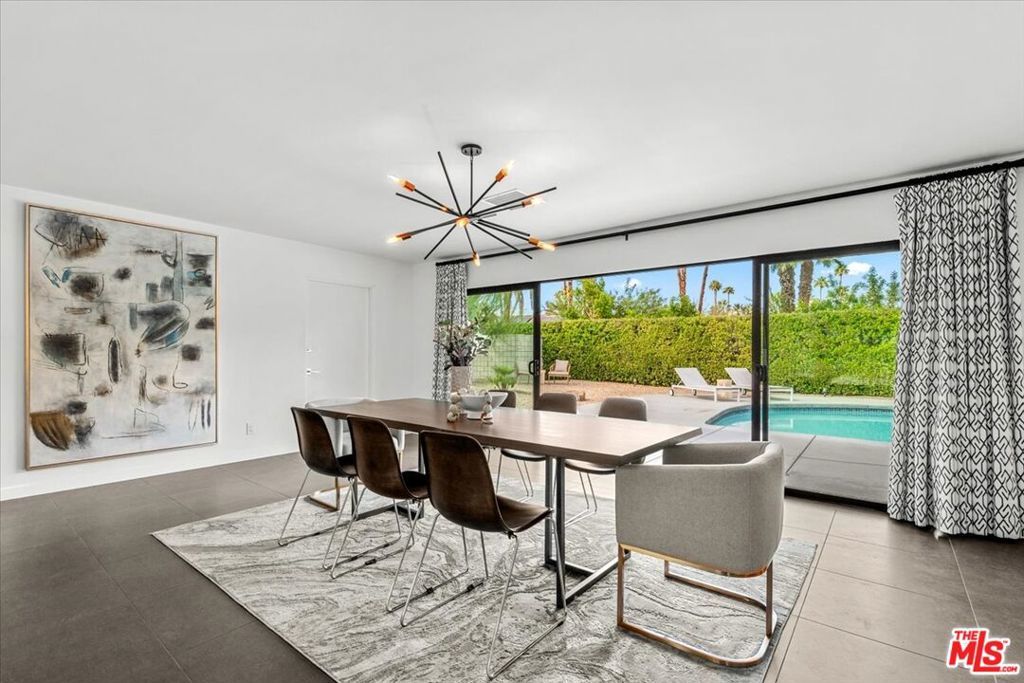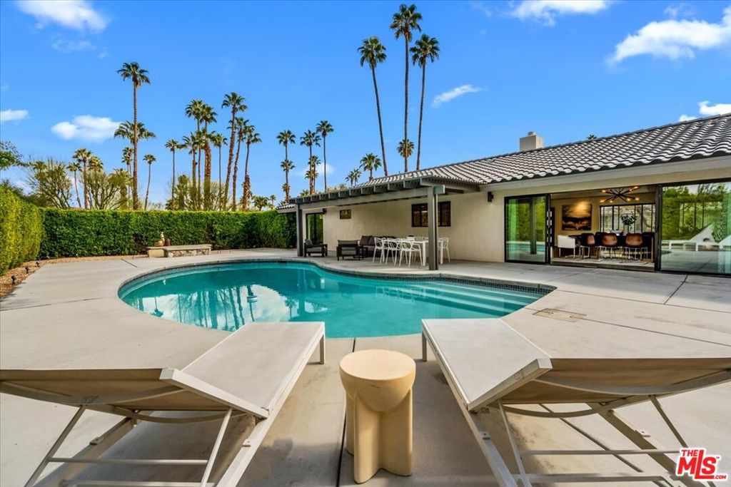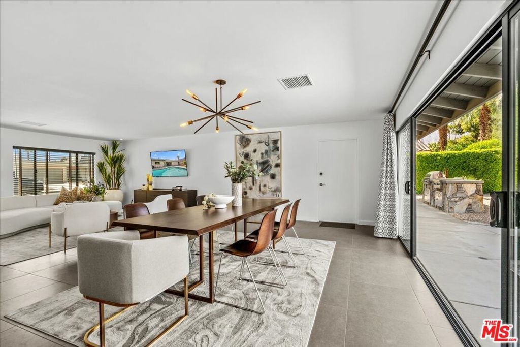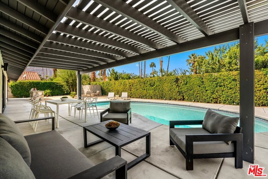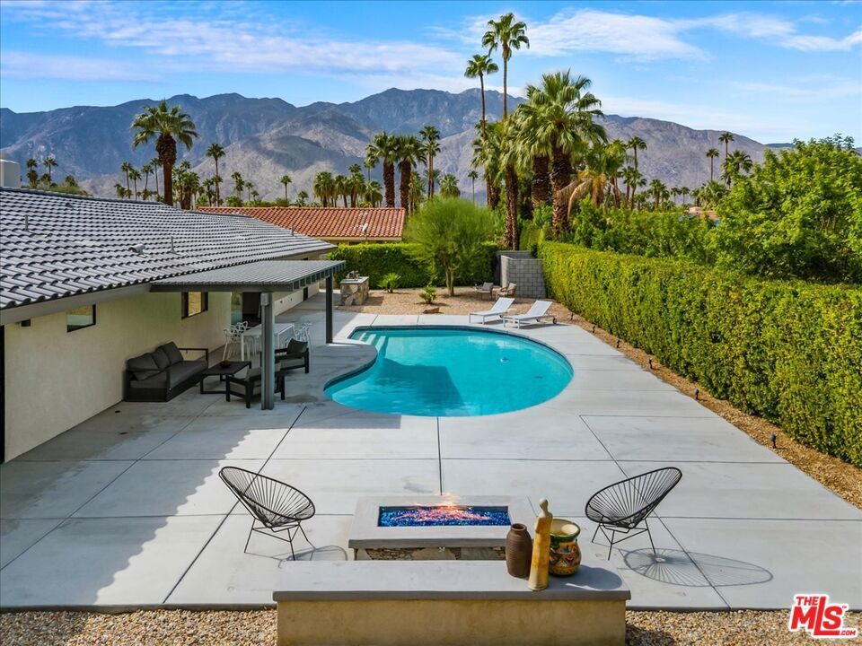 Stunning and relaxed South Palm Springs retreat . Unique opportunity to own this meticulously recently renovated Mid Century home in the peaceful Los Compadres neighborhood. Located on an expansive corner lot, with room to add casita/ADU or RV pad. Features an open flowing layout with plenty of natural light that lends itself to the relaxing indoor / outdoor desert lifestyle. Beautiful modern kitchen perfect for entertaining. Beautiful tiled floors and stylishly curated custom high end finishes throughout. Living space opens on to your completely private oasis backyard with mountain views for the indoor / outdoor lifestyle. A stunning kidney shaped pool, covered patio , fire-pit and built in BBQ round off this meticulously maintained and expansive backyard. There is a 3 car garage with epoxy floors and built in storage. You own the land, so no HOA. This home is not a STR, but could be a very high yielding property. At the time of listing, Los Compadres remains below the STR neighborhood cap. Buyer to do own due diligence. Take advantage of this unique opportunity to own this beautifully recently renovated home oasis on fee land in the highly desirable South Palm Springs minutes away from downtown, shopping, trails, Demuth Park and PS Airport.