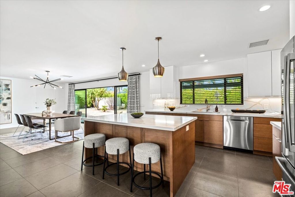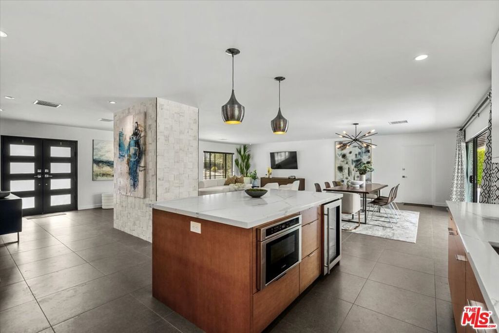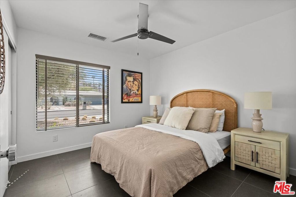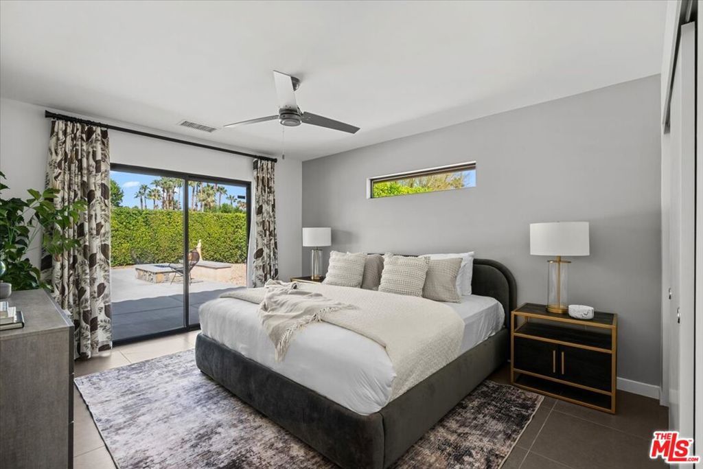 Stunning and relaxed South Palm Springs retreat . Unique opportunity to own this meticulously recently renovated Mid Century home in the peaceful Los Compadres neighborhood. Located on an expansive corner lot, with room to add casita/ADU or RV pad. Features an open flowing layout with plenty of natural light that lends itself to the relaxing indoor / outdoor desert lifestyle. Beautiful modern kitchen perfect for entertaining. Beautiful tiled floors and stylishly curated custom high end finishes throughout. Living space opens on to your completely private oasis backyard with mountain views for the indoor / outdoor lifestyle. A stunning kidney shaped pool, covered patio , fire-pit and built in BBQ round off this meticulously maintained and expansive backyard. There is a 3 car garage with epoxy floors and built in storage. You own the land, so no HOA. This home is not a STR, but could be a very high yielding property. At the time of listing, Los Compadres remains below the STR neighborhood cap. Buyer to do own due diligence. Take advantage of this unique opportunity to own this beautifully recently renovated home oasis on fee land in the highly desirable South Palm Springs minutes away from downtown, shopping, trails, Demuth Park and PS Airport.