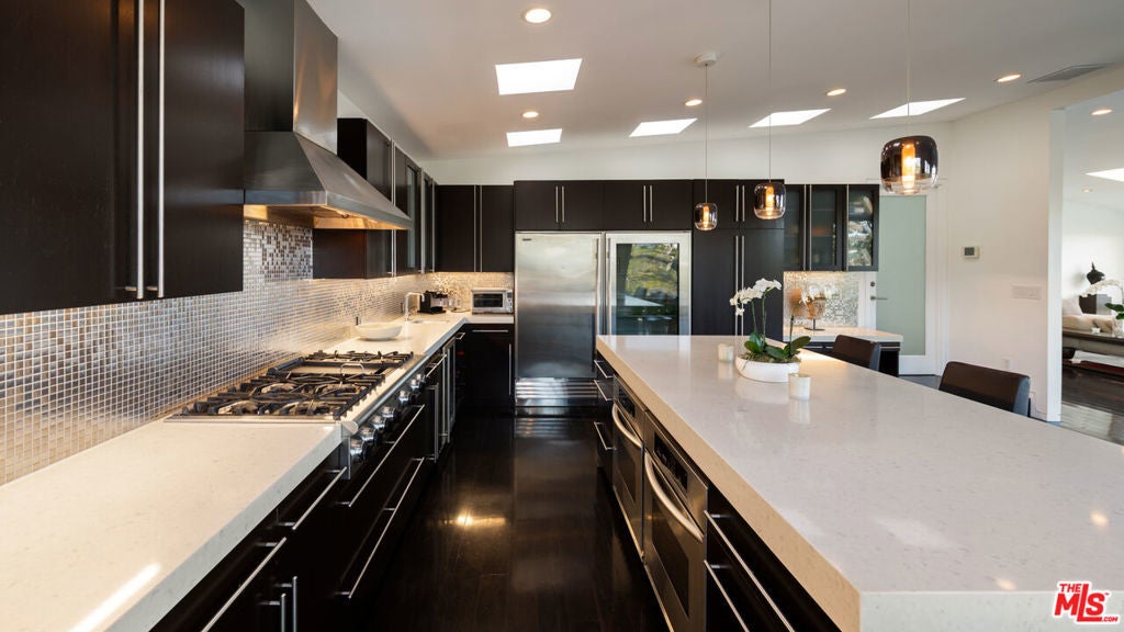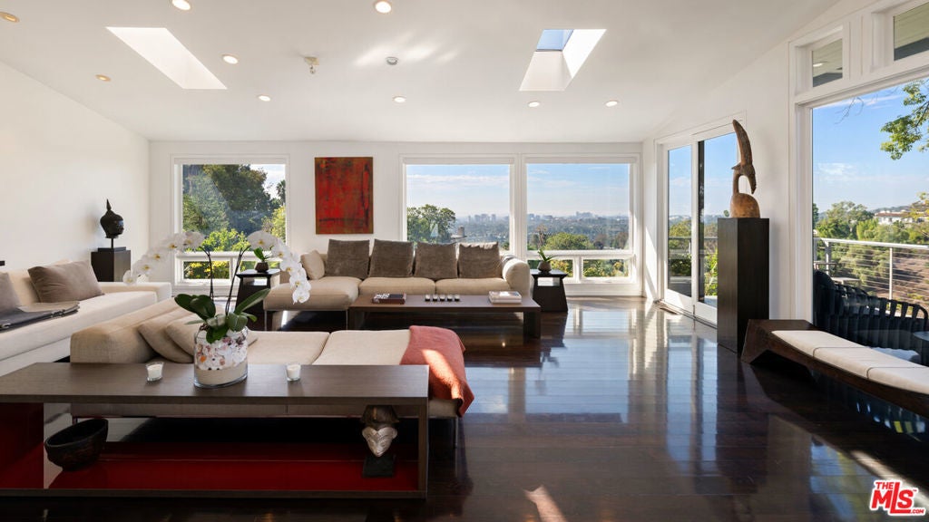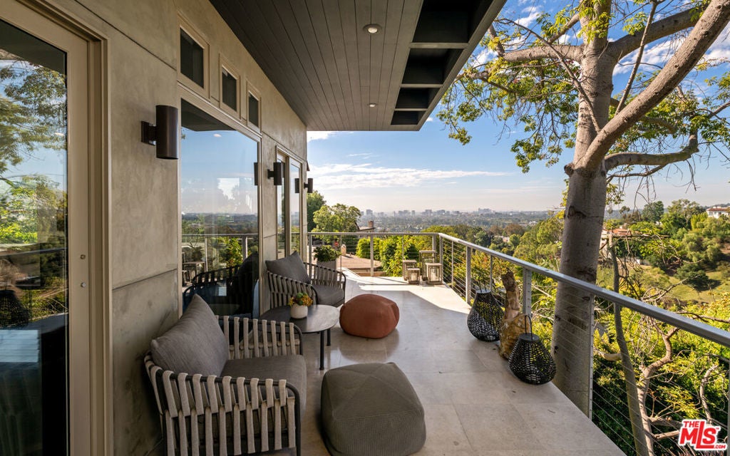 Set in a tranquil Beverly Hills PO location, this contemporary architectural masterpiece combines privacy, comfort, and stunning views of the ocean, Catalina Island, sparkling city lights, and the Getty Museum all while remaining easily accessible. Perched just above the city on a coveted street-to-street lot, the home offers seamless indoor-outdoor living with expansive balconies, lush gardens, and space for an infinity-edge pool or private ADU with its own entrance. Walls of glass, skylights, and floor-to-ceiling windows flood the interiors with natural light. The grand living room is perfect for entertaining, while the open-concept chef's kitchen features a 9' x 4' island, Bisazza glass tile backsplash, Cesar stone countertops, and top-tier stainless steel appliances.The luxurious primary suite includes a spa-like bath with steam shower and custom walk-in closet, complemented by three additional en-suite bedrooms, including a private guest suite with separate entrance. Offering prestige, privacy, and unmatched views without being far above the city, this estate delivers the ultimate Beverly Hills lifestyle.
