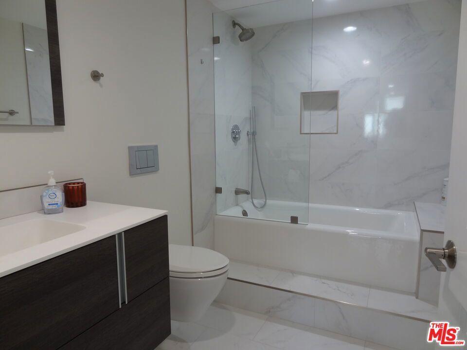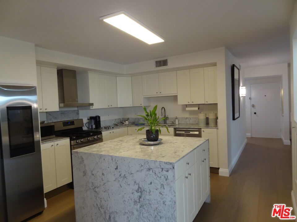 Fully Restored!! Situated in one of the most desirable location of Beverly Hills, this exquisite unit offers the best in luxury condo living and is currently being painted outside, including railings and patios. This single level unit boasts 3 bedrooms and 3 bathrooms with warm and inviting rooms. Light and bright with stunning new hardwood floors throughout. Enter into welcoming spacious living/Dining area with attached private balcony. The kitchen boasts stainless steel appliances and marble counter tops. Enter into the bright and airy primary bedroom which features beautiful views and a stunning walk in closet and even bigger bathroom and walk in shower. This condo has been recently updated to perfection. Building amenities include rooftop pool, deck, BBQ, and this unit has 2 subterranean parking spaces. Best of both worlds with amazing walkability to all shops, dining, rodeo Drive and the best that Beverly Hills has to offer. Minutes from Beverly Hills High School, business district in Century City and the outdoor Westfield Shopping Center. Everything you have been waiting for.