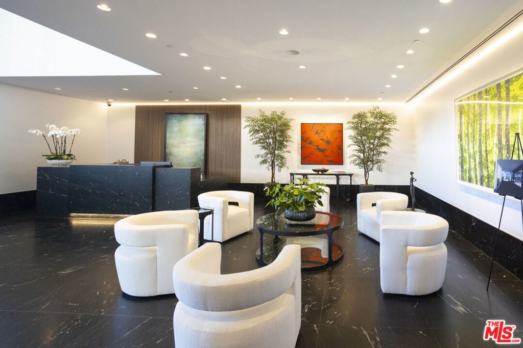 Positioned in the desirable northwest corner of The Diplomat, this elegant residence is framed by walls of glass that fill each room with natural light and capture sweeping views of the city skyline, ocean, and mountains with clear-day ocean views and mountain vistas from the north-facing windows.The layout includes a welcoming living area with a fireplace, a dining space, and a covered terrace ideal for relaxation and entertaining. The updated kitchen features quality appliances, excellent storage, and a convenient bar area with a wine cooler. Both bedrooms are spacious and feature hardwood floors. The primary suite includes a large walk-in closet and an updated bath. The second bedroom also includes an en-suite bath, offering comfort and privacy for guests or an ideal office setup.Additional highlights include marble floors in the main living areas, a powder room, and a dedicated laundry room with washer and dryer.The Diplomat is a prestigious full-service building on the Wilshire Corridor offering two parking spaces, 24-hour doorman and valet service, pool, spa, saunas, fitness center, and additional storage. A refined home combining comfort, privacy, and views in one of Los Angeles's most desirable high-rise communities.
