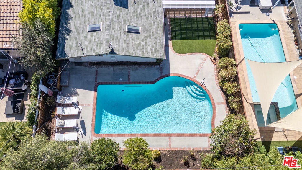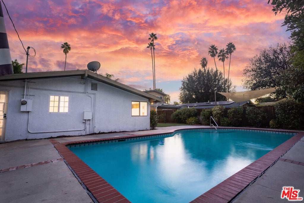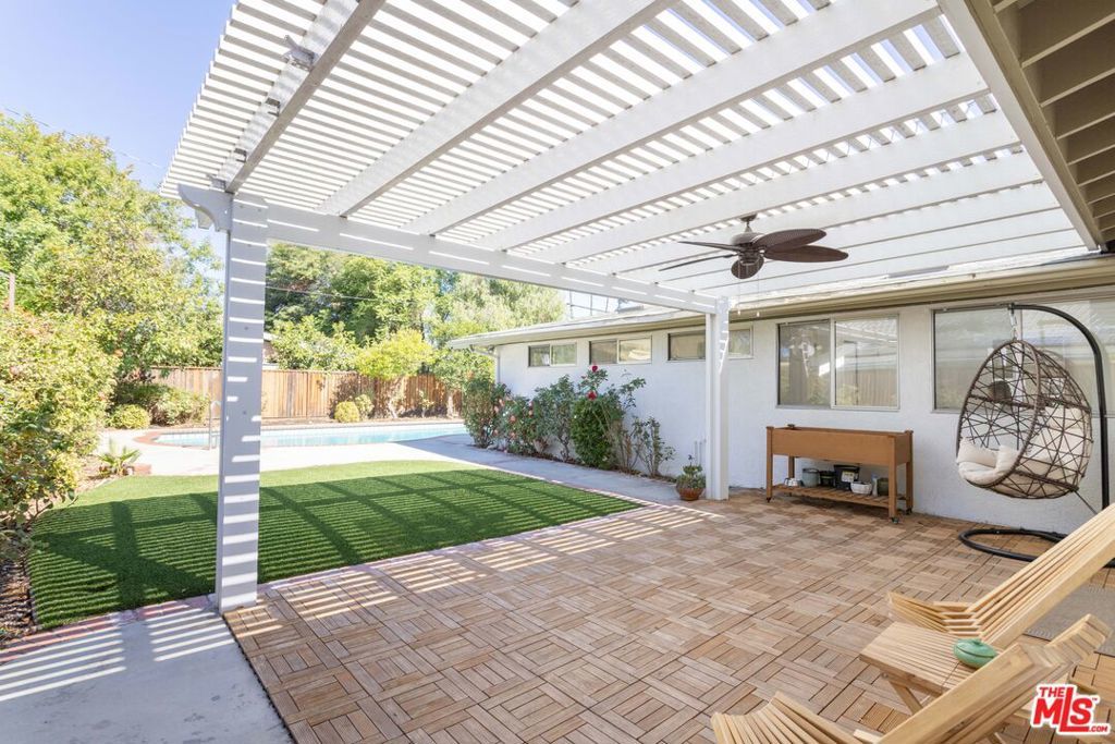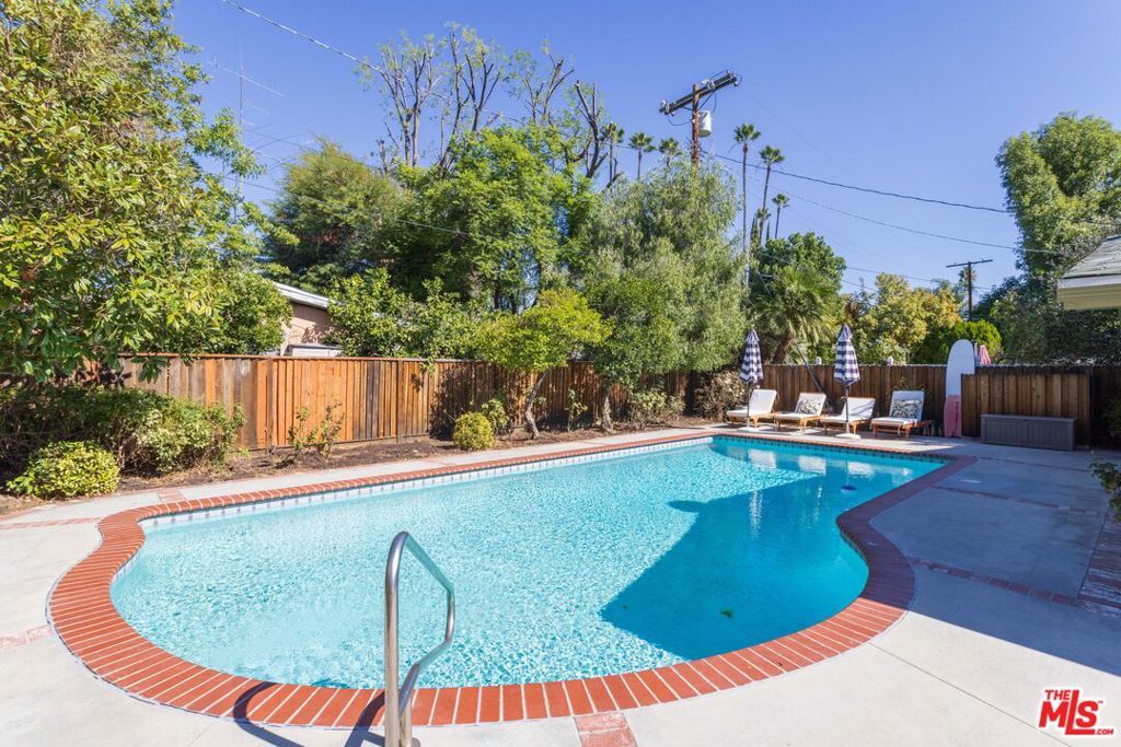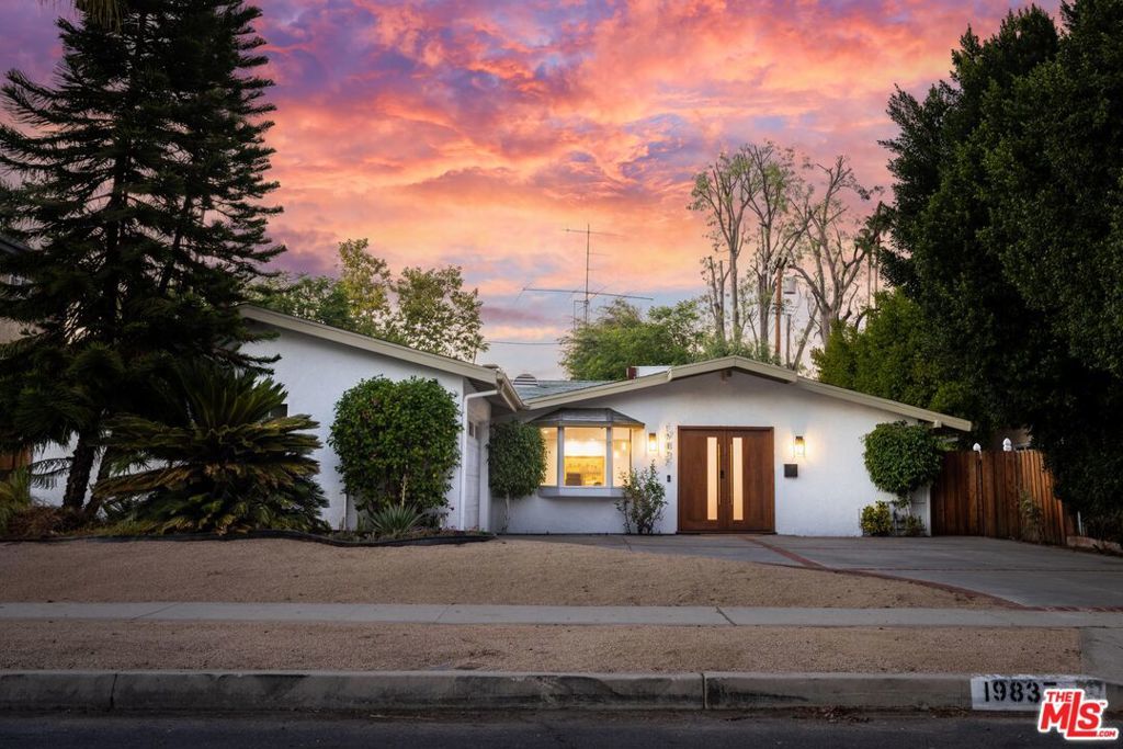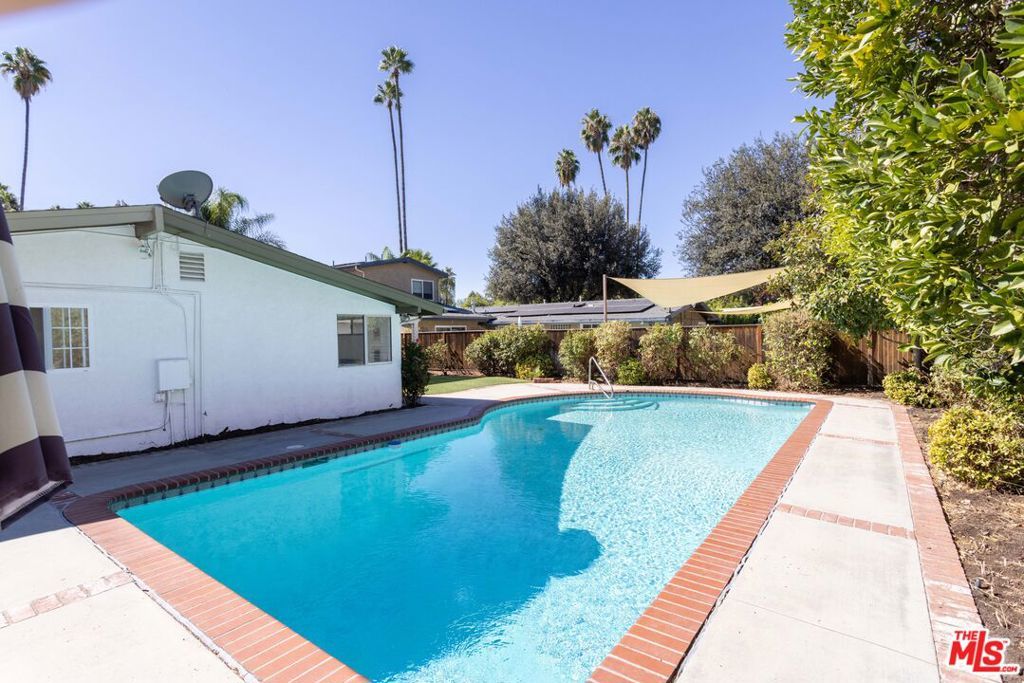 Located in the highly coveted Corbin Palms neighborhood of Woodland Hills, this Mid-Century Marvelous pool home was designed by renown Architects Dan Palmer & William Krisel and built by The Alexander Construction Company. Before Palmer & Krisel went on to design thousands of homes in Palm Springs forever influencing the cities modern look, they designed Corbin Palms right here in Woodland Hills. Their designs emphasized simplicity, privacy with functionality and a profound respect for the natural landscape. This residence embodies clean lines, natural lighting with modern upgrades for the best of today's California living and entertaining. The moment you step through the dramatic double door entry you will be in awe of the vaulted ceilings and natural light cascading in from the double pane windows and skylights while showcasing the recently remodeled modern aesthetic. New drywall coating with interior paint, Tasteful engineered hardwood flooring and recessed lighting throughout the living spaces. Gorgeous kitchen featuring new soft close cabinetry with quartz countertops, floating shelves, spacious pantry, tile backsplash with LG and Samsung stainless steel appliances. Open, light and bright floorplan offers a formal living room with floor to ceiling tiled gas fireplace, large dining area and huge family room with dry bar and French Doors that seamlessly connect to the private backyard. New artificial turf, covered pergola and sparkling swimming pool will make you feel like you're on vacation every day. Designer inspired Primary suite opens to the outdoor living space and is both simple and luxurious with its neutral double sink vanity, Delta brushed brass hardware, tastefully tiled flooring and shower with frameless glass and freestanding soaking tub. Dual closets including a Custom walk-in modular closet system. Two additional bedrooms with engineered hardwood flooring, vaulted ceilings, skylights and Jack and Jill access to an updated bathroom. More new features include exterior paint, water heater, double front doors, Nest thermostat, recessed lighting, fixtures, electrical outlets, switches and pool filtration system. Walking distance to the new Haynes Street Greenway which features California Native vegetation and trees, a walking path, seating areas, perimeter fencing with a decorative entry gate and a security system. Conveniently located near restaurants, shopping, The Westfield Topanga Village, Warner Center, public transportation and more!