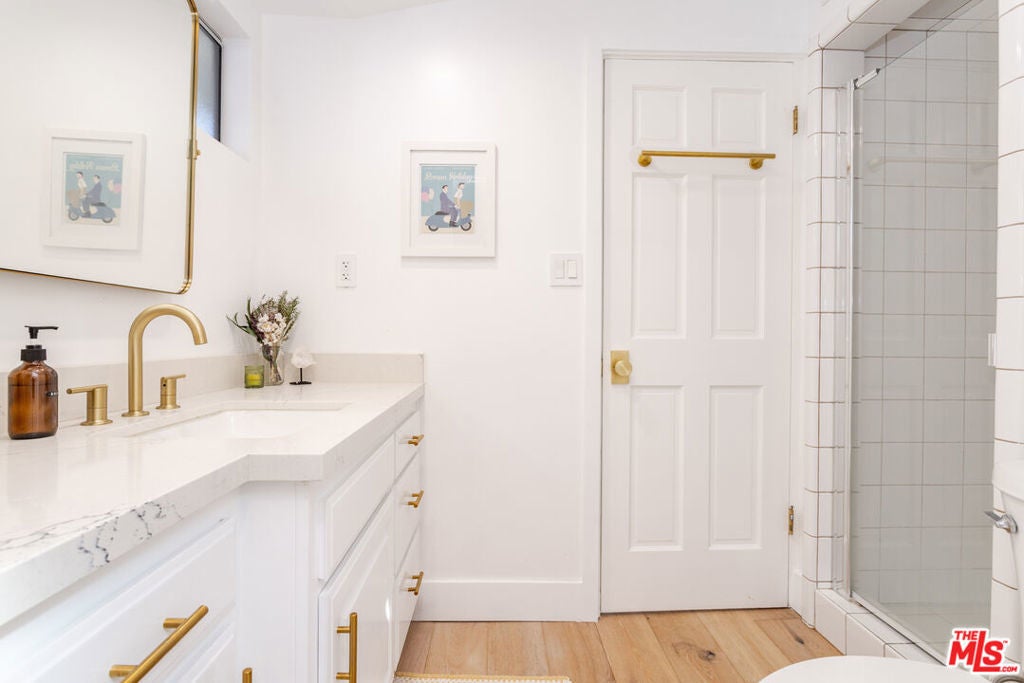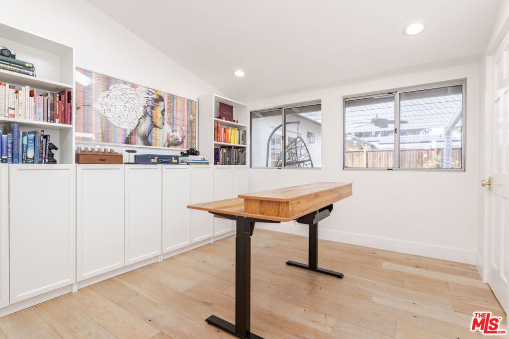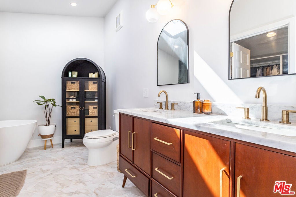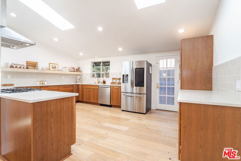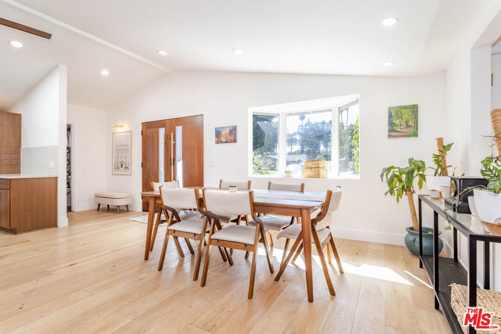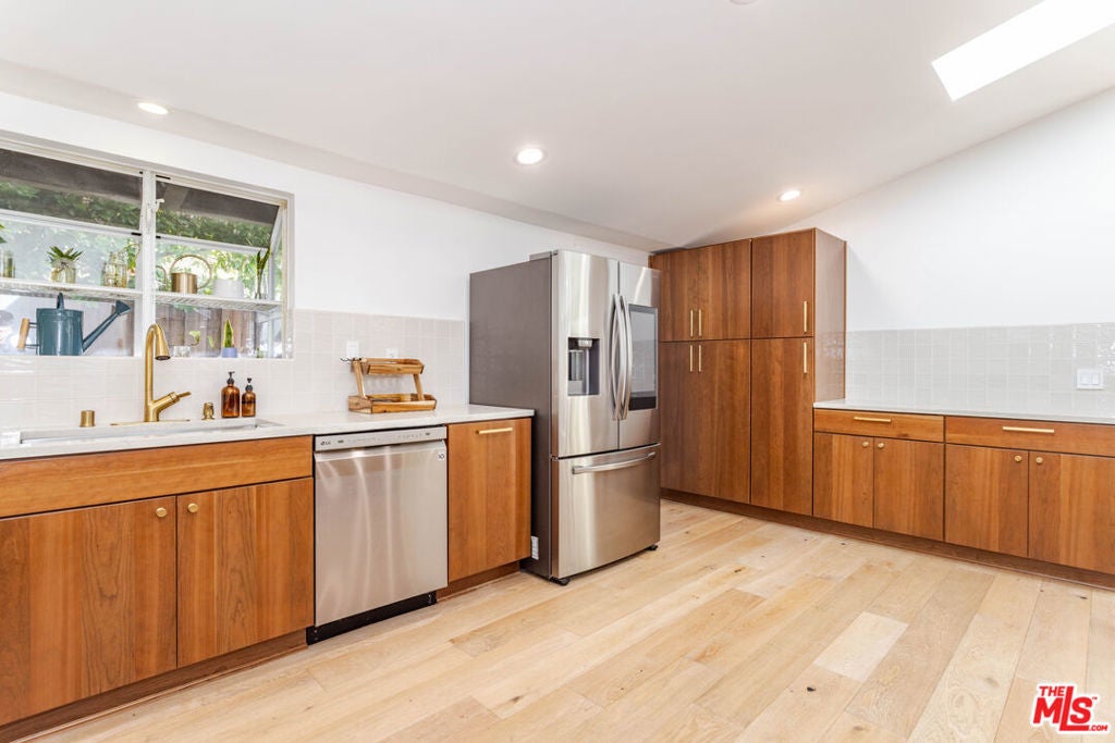 Located in the highly coveted Corbin Palms neighborhood of Woodland Hills, this Mid-Century Marvelous pool home was designed by renown Architects Dan Palmer & William Krisel and built by The Alexander Construction Company. Before Palmer & Krisel went on to design thousands of homes in Palm Springs forever influencing the cities modern look, they designed Corbin Palms right here in Woodland Hills. Their designs emphasized simplicity, privacy with functionality and a profound respect for the natural landscape. This residence embodies clean lines, natural lighting with modern upgrades for the best of today's California living and entertaining. The moment you step through the dramatic double door entry you will be in awe of the vaulted ceilings and natural light cascading in from the double pane windows and skylights while showcasing the recently remodeled modern aesthetic. New drywall coating with interior paint, Tasteful engineered hardwood flooring and recessed lighting throughout the living spaces. Gorgeous kitchen featuring new soft close cabinetry with quartz countertops, floating shelves, spacious pantry, tile backsplash with LG and Samsung stainless steel appliances. Open, light and bright floorplan offers a formal living room with floor to ceiling tiled gas fireplace, large dining area and huge family room with dry bar and French Doors that seamlessly connect to the private backyard. New artificial turf, covered pergola and sparkling swimming pool will make you feel like you're on vacation every day. Designer inspired Primary suite opens to the outdoor living space and is both simple and luxurious with its neutral double sink vanity, Delta brushed brass hardware, tastefully tiled flooring and shower with frameless glass and freestanding soaking tub. Dual closets including a Custom walk-in modular closet system. Two additional bedrooms with engineered hardwood flooring, vaulted ceilings, skylights and Jack and Jill access to an updated bathroom. More new features include exterior paint, water heater, double front doors, Nest thermostat, recessed lighting, fixtures, electrical outlets, switches and pool filtration system. Walking distance to the new Haynes Street Greenway which features California Native vegetation and trees, a walking path, seating areas, perimeter fencing with a decorative entry gate and a security system. Conveniently located near restaurants, shopping, The Westfield Topanga Village, Warner Center, public transportation and more!
