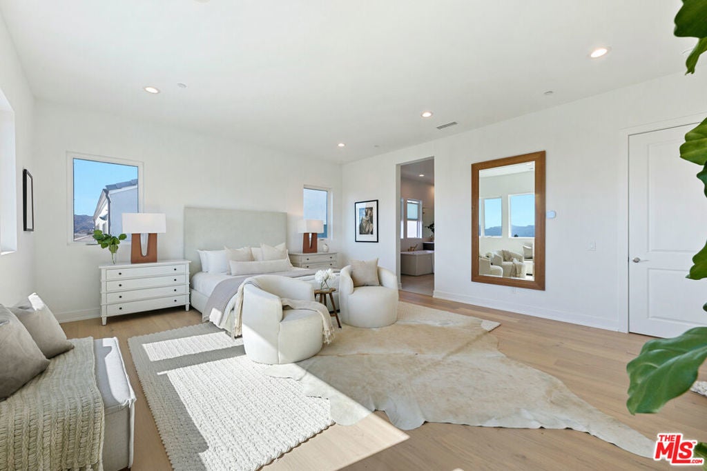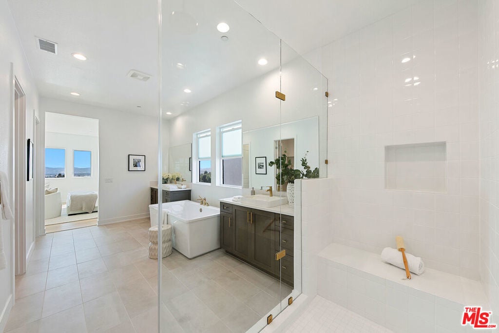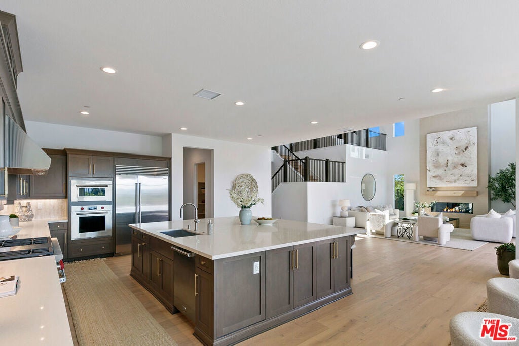 Experience the pinnacle of modern luxury living in this stunning brand-new, fully upgraded residence located in the gated community of Verona. This sophisticated five-bedroom, four and a half bathroom estate showcases impeccable design, breathtaking valley views, and an array of state-of-the-art finishes that redefine contemporary elegance. Adding to its features is an attached multi-gen suite with its own separate living room and entry. Upon entering the main home, you're greeted by soaring ceilings and walls of glass that flood the home with natural light, highlighting the seamless open-concept layout. The interior boasts white oak wood flooring throughout, creating a warm yet refined atmosphere that flows effortlessly from room to room. The chef's kitchen is a true showpiece, featuring top-of-the-line Wolf appliances, custom cabinetry, and an oversized island perfect for both culinary creations and entertaining guests. Each of the five spacious bedrooms offers comfort and style, while the luxurious bathrooms are adorned with premium fixtures and designer finishes. Step outside to your private oasis with a brand-new pool and spa, surrounded by lush, fully landscaped grounds, ideal for outdoor gatherings or quiet relaxation while enjoying the panoramic valley views. Perfectly situated near the world-renowned Sierra Canyon School, this exclusive property also offers proximity to premier shopping and dining destinations, and provides easy access to major highways, making commuting and exploring the city effortless. This home exemplifies the ultimate in luxury, design, and location, a rare opportunity to own a true masterpiece.