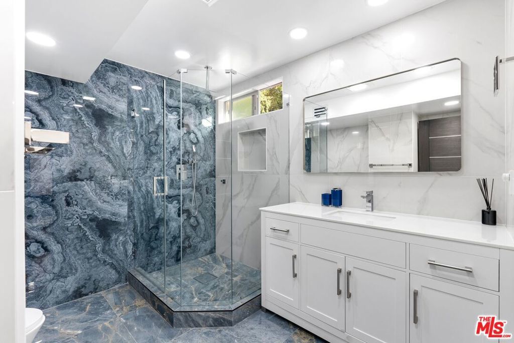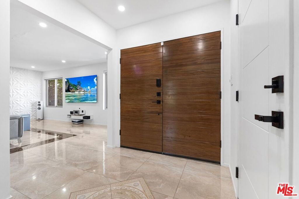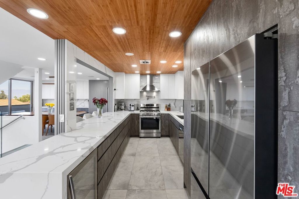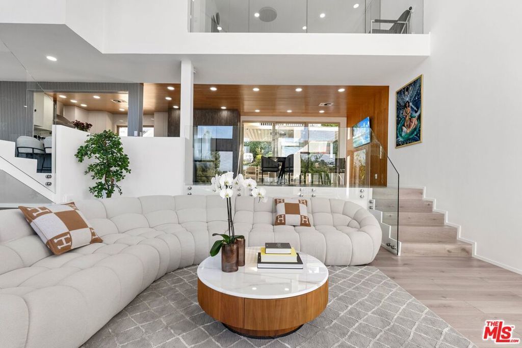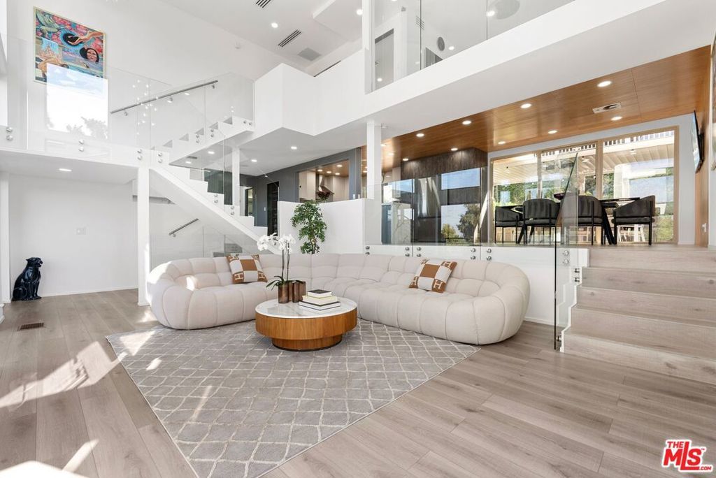 Discover this fully remodeled luxury estate in the prestigious Royal Woods neighborhood of Sherman Oaks, offering 3,716 sqft of elegant living on a 14,112 sqft lot, just minutes from the 405 and 101 freeways and vibrant Ventura Blvd. Completed in 2023, the home boasts top-of-the-line upgrades including new stucco, electrical, plumbing, flooring, and custom bathrooms. Inside, you'll find soaring ceilings, expansive floor-to-ceiling windows, and a European-style kitchen with stainless steel appliances. The entertainment room features a custom-built bar, while the upstairs showcases a cozy family room with a fireplace, a formal dining area, and a luxurious master suite with a beautifully remodeled bathroom. The second level also offers two spacious bedrooms and two stylishly renovated bathrooms. Outdoor space is perfect for entertaining, with a waterfall, koi pond, covered patio, modern pergola with full barbeque kitchen, and breathtaking valley views from the wrap-around front patio. Additional highlights include a glass walls gym, office, full house water softening system, in-ceiling sound system throughout the house, and a serene atmosphere near hiking trails and shopping, making this a rare blend of modern elegance and tranquility. Showings are by appointment only.