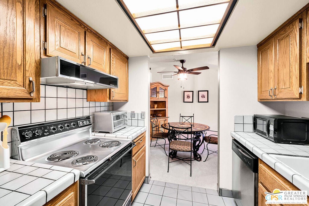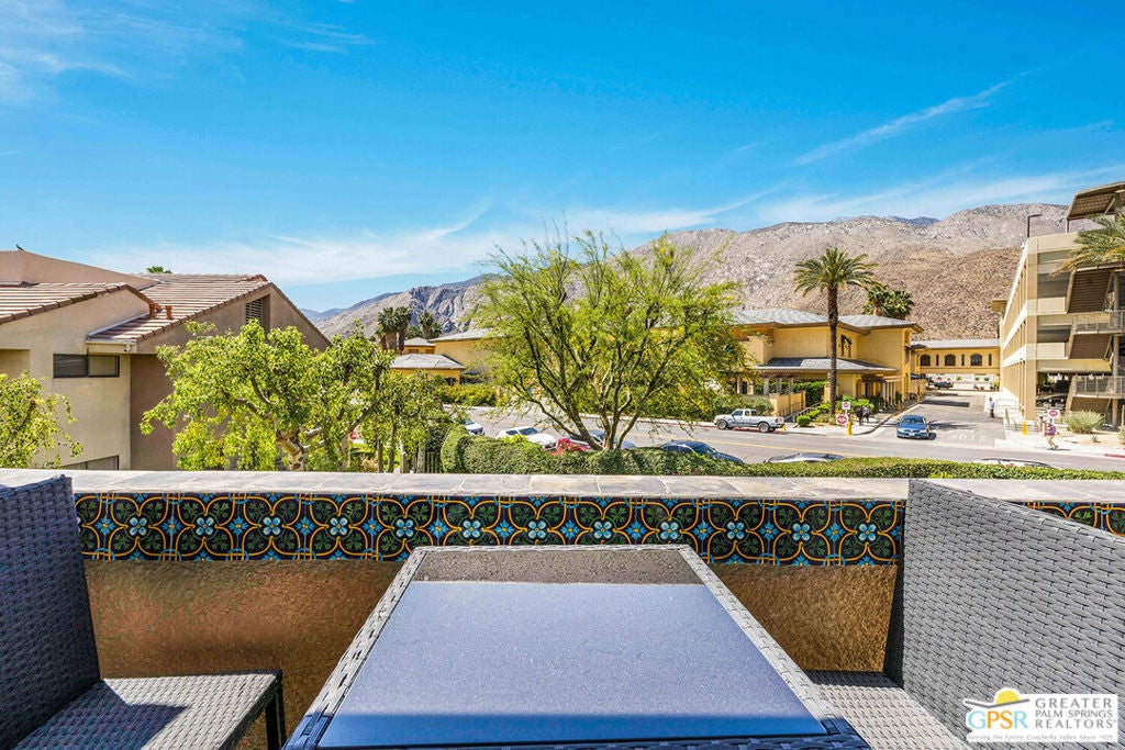 Discover this fabulous turnkey, fully furnished top-level 2-bedroom, 2-bath condo at Plaza Villas in downtown Palm Springs. Whether you're looking for a primary residence or a great investment property, this desirable unit offers a prime location within the community and breathtaking mountain views from the west-facing patio. The well-equipped kitchen is perfect for unleashing your inner chef, while the spacious and bright living room flows seamlessly into the dining areaideal for entertaining or relaxing in style. The comfortable master suite offers a peaceful retreat after a day lounging by the pool, complete with its own private patio featuring peek-a-boo mountain views.Your guests will appreciate the generously sized second bedroom and bathroom. The convenience of in-unit laundry makes extended stays or everyday living even easier. Plaza Villas offers multiple pools and spas, a fabulous tennis court, and dedicated covered parking. Best of all, this charming community is located less than two blocks from the heart of downtown Palm Springsclose to restaurants, galleries, shops, and more.