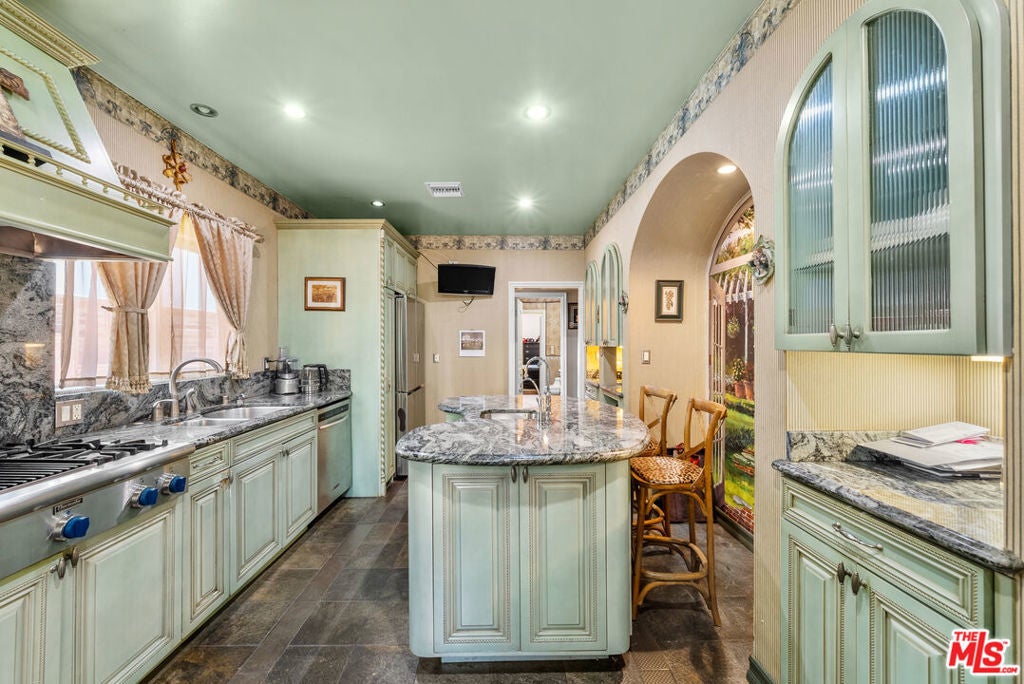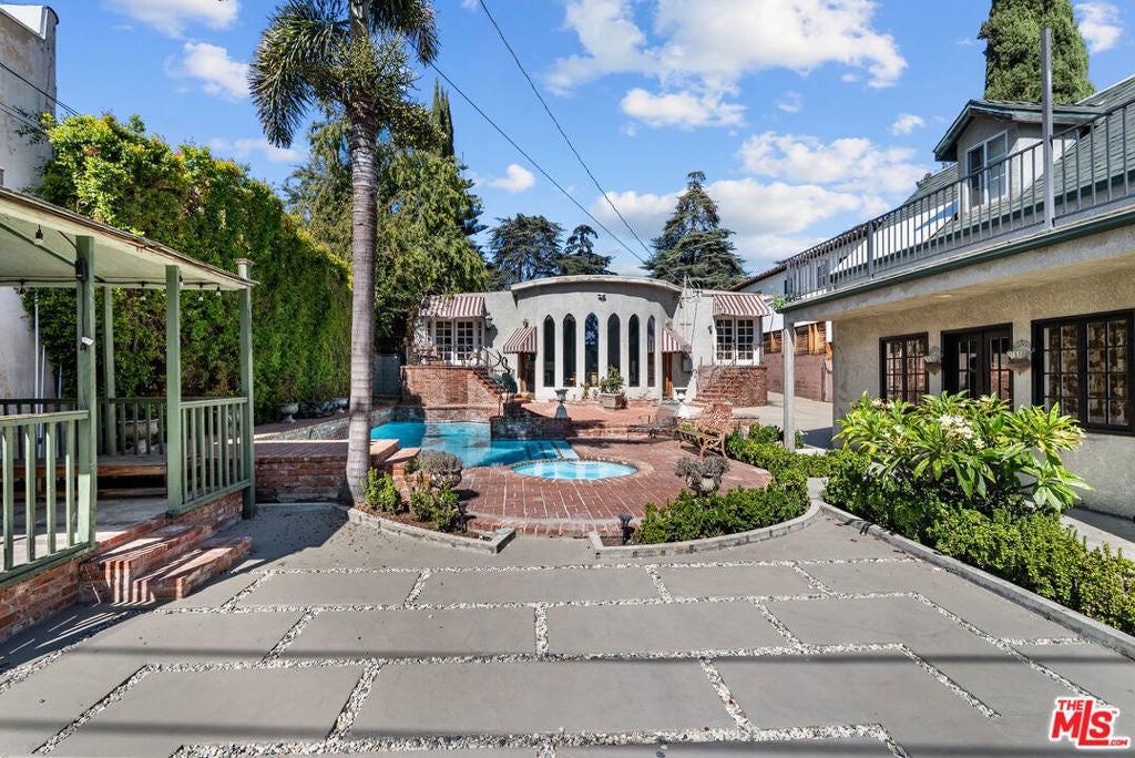 Nestled in one of Los Angeles' most coveted neighborhoods, this architecturally distinctive residence offers a rare opportunity to restore or reimagine a truly one-of-a-kind property. First time on the market in 37 years, the home spans approximately 2,344 sq ft and rests on a rare, flat 9,000 sq ft lot an exceptional find in the heart of Los Feliz. Rich in old-world character and timeless craftsmanship, the residence showcases dramatic vaulted living spaces, arched windows, and vintage detailing that speak to its storied past. Expansive entertaining areas include a grand living room with a stately fireplace, coffered ceilings, and French doors that invite natural light throughout. A spacious kitchen, multiple bedrooms, and generous common areas offer an inspiring canvas for a designer's or investor's vision. The backyard evokes the ambiance of a European courtyard, complete with brick patios, lush greenery, a sparkling pool and spa, and a detached two-story guest structure featuring a pool house below and a workshop with a deck above, ideal for creative use or future ADU potential. Set among tree-lined streets and surrounded by multi-million-dollar estates, this residence embodies the essence of Los Feliz charm. Whether restored to its classic glory or transformed into a modern masterpiece, 5006 Los Feliz Blvd represents a once-in-a-generation opportunity to own a piece of architectural history in one of L.A.'s most desirable enclaves. Sold as-is.