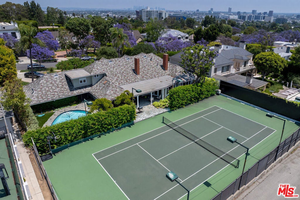 Now available for lease, this beautifully updated 5-bedroom, 5-bathroom traditional estate is located on one of the most prestigious streets in the Beverly Hills Flats. Set on an elevated 21,200+ sq. ft. lot and surrounded by mature jacarandas and lush landscaping, the residence is privately nestled behind a wide circular driveway, offering charm, seclusion, and striking curb appeal. Recently refreshed with new flooring, updated bathrooms, and fresh interior paint, the home features a spacious, light-filled layout with a generous primary suite, guest suite, and multiple formal and informal living areas. Classic architectural elementsincluding dormer windows, stone accents, and a slate roofadd timeless elegance, while the expansive grounds provide exceptional outdoor amenities. A north-south tennis court and sparkling pool are thoughtfully positioned for both privacy and enjoyment, creating the ideal setting for relaxation and entertaining.