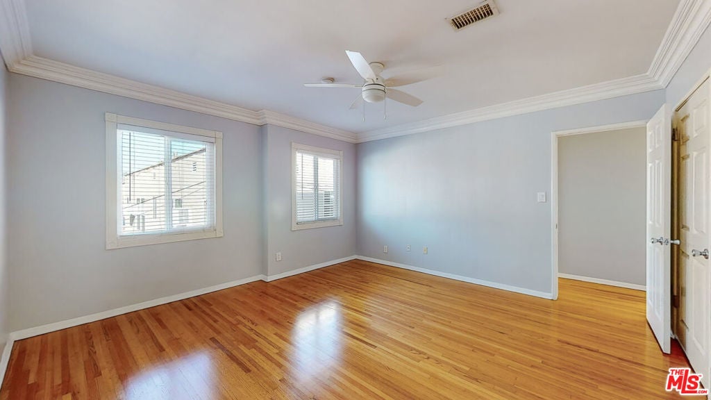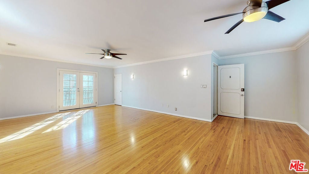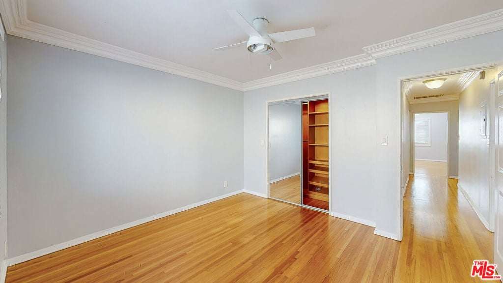 Extra-large top floor "Owner's Unit" in the heart of Beverly Hills. Located in the back of the building, away from any street noise and soaked in natural light. Expansive living room leads to updated kitchen with granite counter tops and separate dining room. All three bedrooms are oversized and have built out custom closets. Central air, wood floors throughout, and in unit laundry. Great opportunity to be in the Beverly Hills school district!