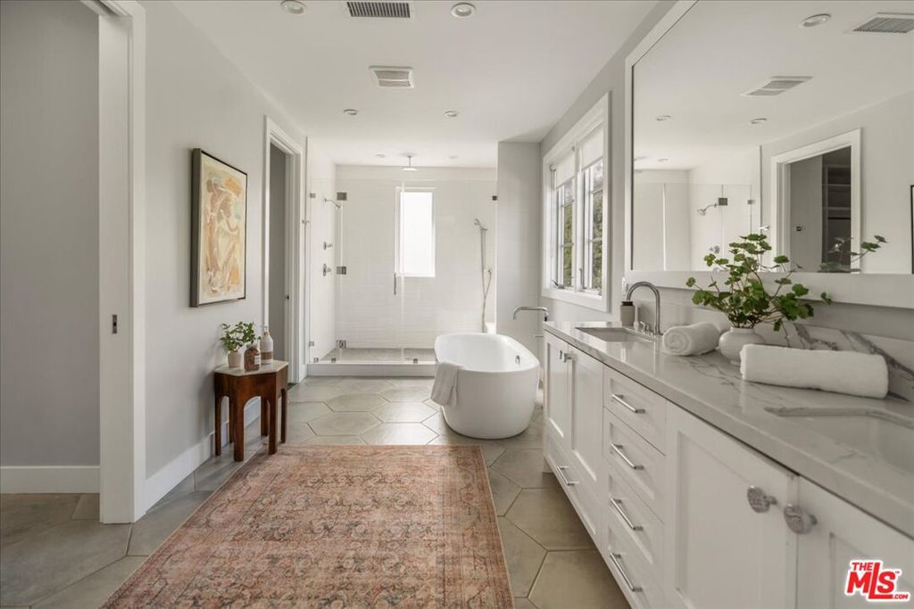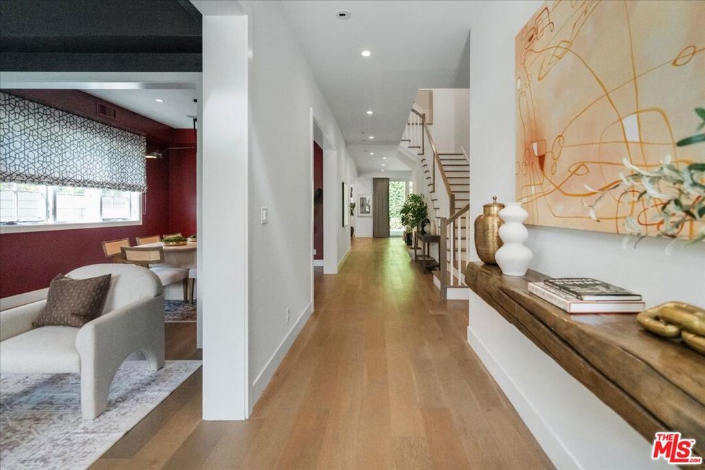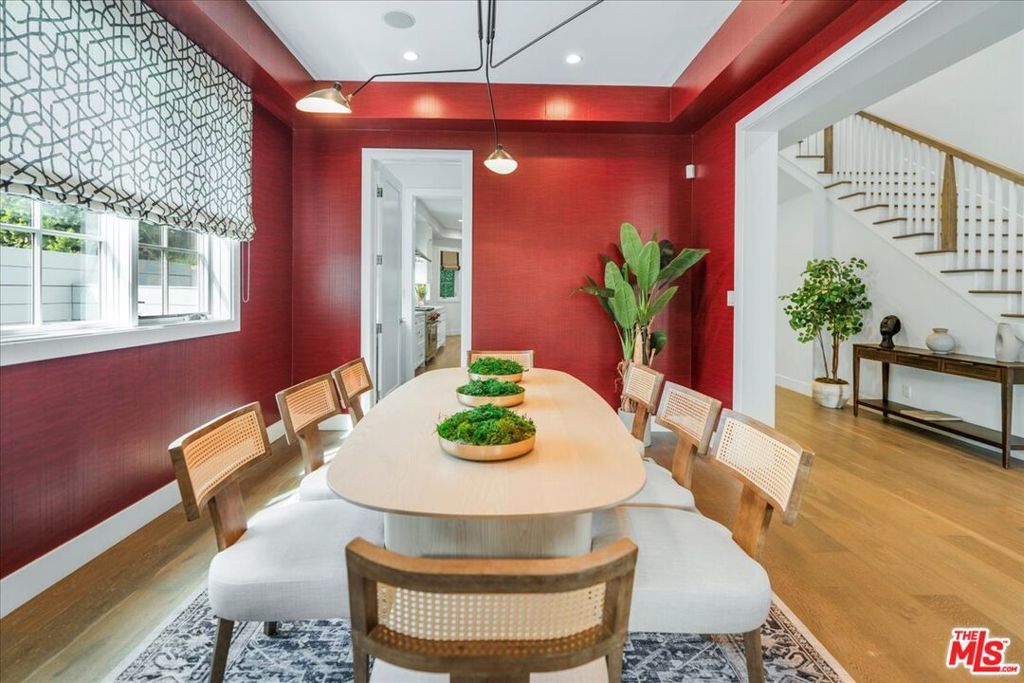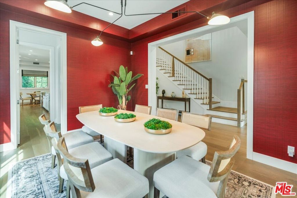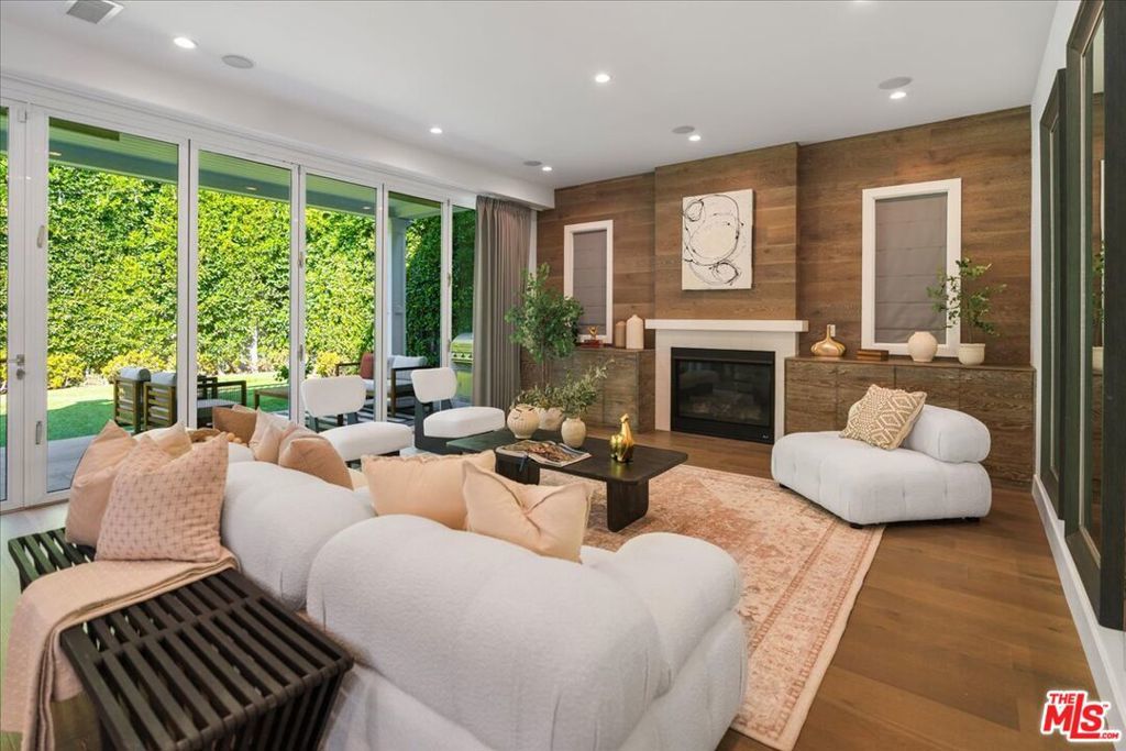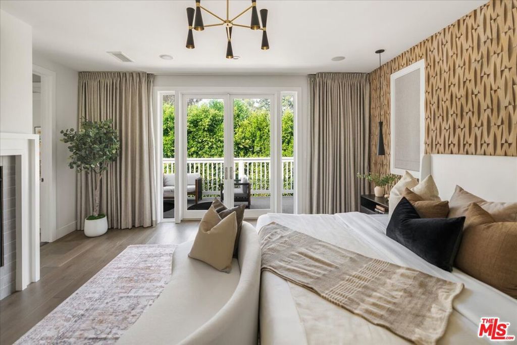 Tucked away on the south side of Brentwood Glen in a peaceful cul-de-sac, 11413 Bolas Street captures the essence of timeless California living. This designer-done, chic traditional-transitional home features five bedrooms and five baths with an open, sun-filled floor plan that blends elegance, comfort, and functionality. The formal living room with a fireplace overlooks the charming front porch, while the spacious dining room offers the perfect setting for family gatherings or entertaining guests. The heart of the home is the light-filled chef's kitchen, beautifully designed with a Wolf range, premium appliances, an oversized refrigerator and freezer, and an expansive waterfall island wrapped in dramatic veined stone. Custom cabinetry, designer lighting, and wide-plank hardwood floors complete the space. The kitchen flows effortlessly into the family room, where nearly floor-to-ceiling bi-fold glass doors open completely to the private, hedged backyard creating the ultimate indoor-outdoor living experience. The backyard is ideal for entertaining, featuring a covered patio with built-in gas heaters, BBQ, refrigerator, and lush landscaping with low-maintenance artificial turf perfect for kids and pets. Upstairs are four bedrooms, including a serene primary suite with vaulted ceilings, a cozy seating area, private balcony, spa-like bath, and custom walk-in closet. Additional en-suites and a Jack-and-Jill layout offer comfort and flexibility, while the main level includes a guest suite, powder room, and a mudroom with direct garage access. Located just moments from Brentwood Village, San Vicente shops and restaurants, and UCLA within the highly coveted Kenter Canyon School District!