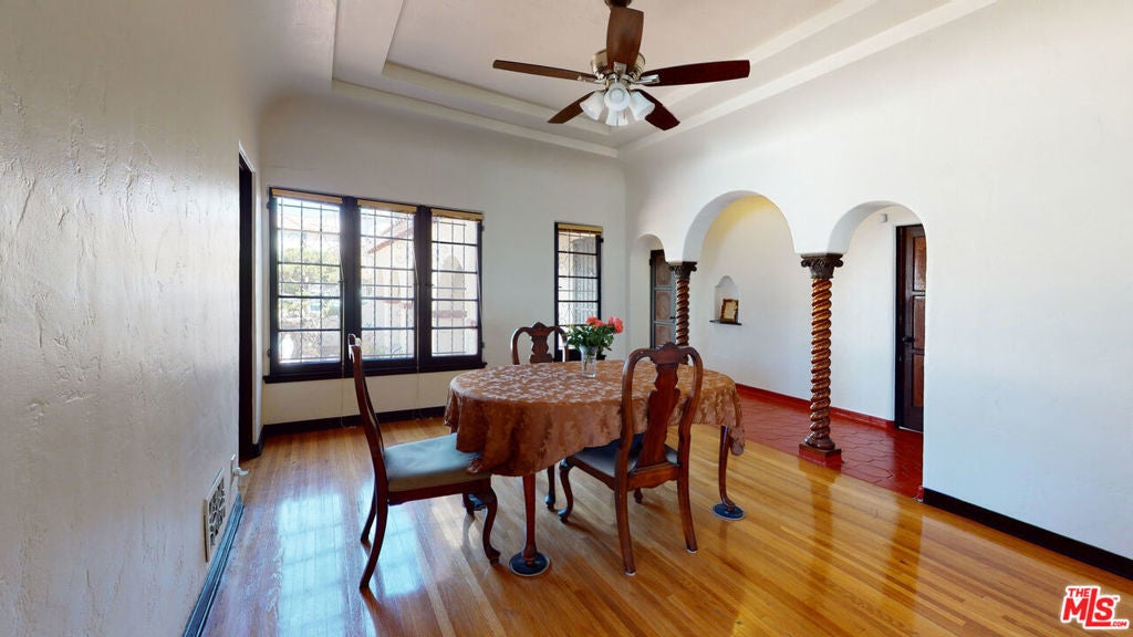 Two Homes on One Lot! Welcome to this beautifully preserved Spanish-style gem, featuring two character-filled homes on one lot, perfect for extended family living or investment potential. The main home features three spacious bedrooms and two bathrooms, showcasing classic architectural details rarely found today. Step inside the grand living room with soaring vaulted ceilings, bathed in natural light from large arched windows. The space is adorned with decorative pillars and original hardwood floors that add warmth and elegance throughout. Enjoy your morning coffee in the cozy breakfast nook surrounded by charm and character at every corner. Additional features include central heating and air, refrigerator, stove, and washer, dryer, combining old-world beauty with modern comfort. The second home, a delightful two bedroom, one bath Spanish cottage featuring hardwood floors and abundant natural light. With wall A/C, washer/dryer hookups, a private 1-car garage, and a charming outdoor area, this home is both inviting and functional. Plans have been paid to convert the 1-car garage to an ADU! Nestled in the heart of historic Boyle Heights, this property is ideally located near USC Medical Center, Keck USC, White Memorial Hospital, San Antonio Winery, Dodger Stadium, and beloved local shops and restaurants. This is more than a property; it's a piece of Los Angeles history, offering timeless architecture, versatility, and an unbeatable location. A must-see to truly appreciate its charm and character!