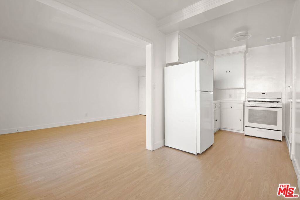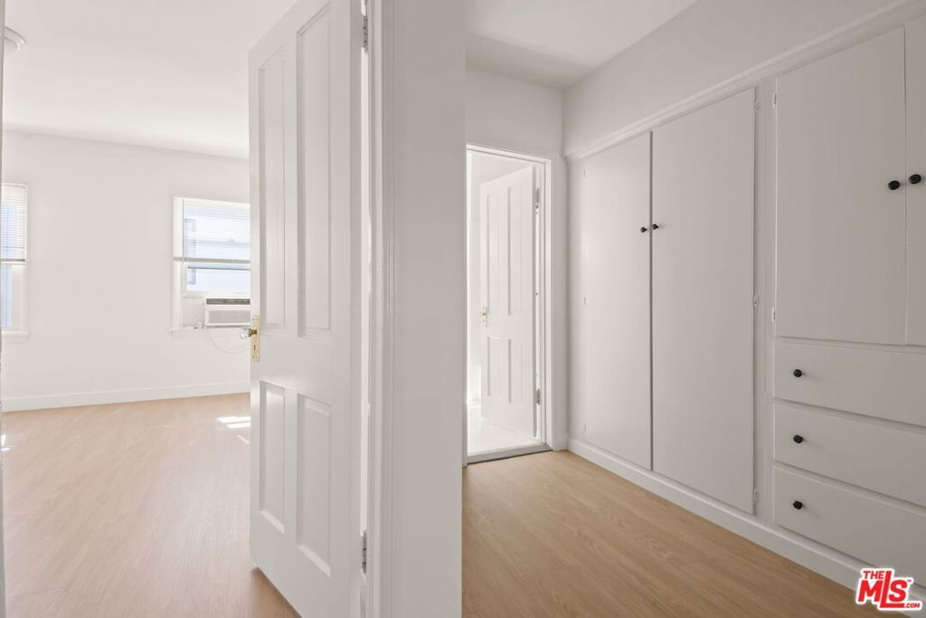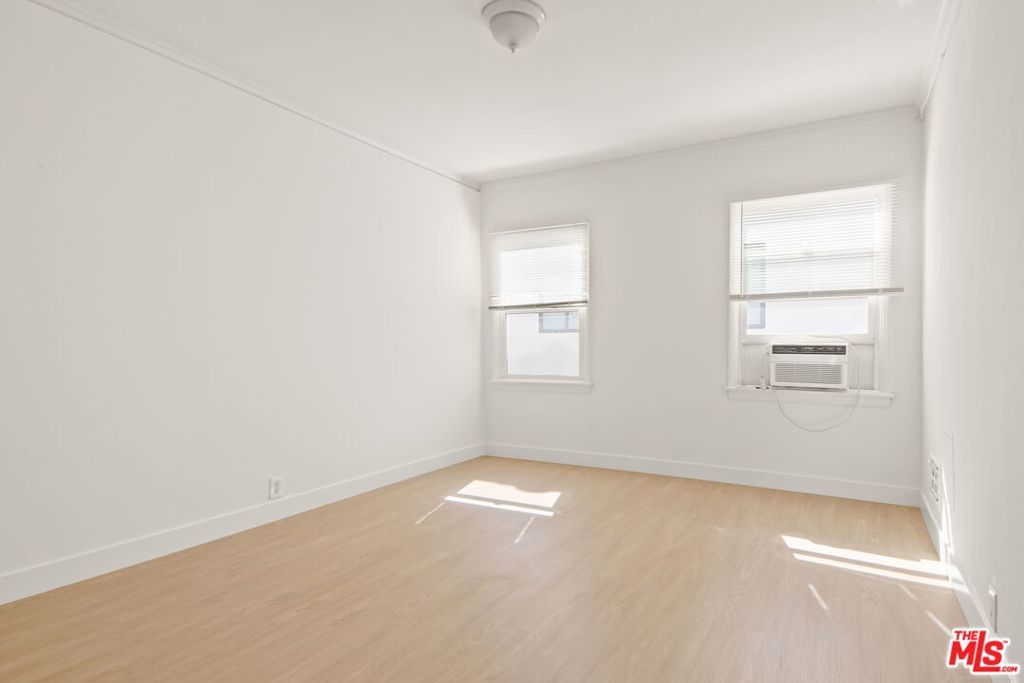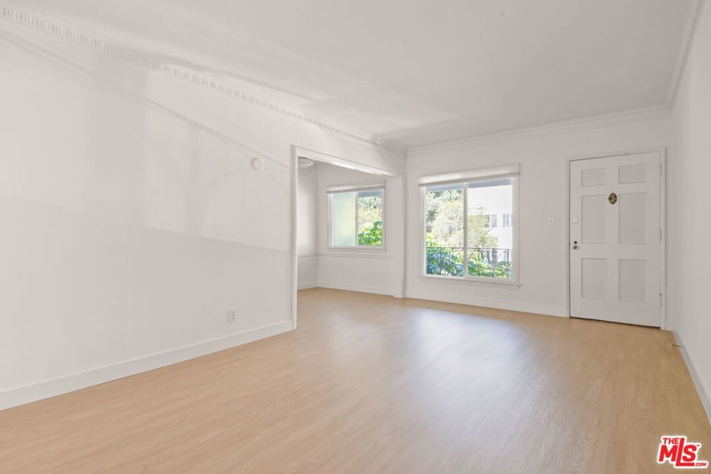 Classic Beverly Hills charm meets everyday practicality in this top-floor 1-bedroom, 1-bath unit. Thoughtfully designed, it features new hardwood floors, crown molding, and a layout that just works. The living room flows into a bright kitchen with a true dining nook. Down the hall, you'll find a spacious bedroom with a window AC unit, a full bathroom, and more storage than you'd expect (including a wall of closets that gets the job done). Additional perks include on-site laundry, a dedicated carport parking space, and a prime location near Cedars-Sinai, The Grove, Beverly Center, and the vibrant shops and cafes along Robertson, 3rd, and Melrose. A timeless find in the heart of it all.