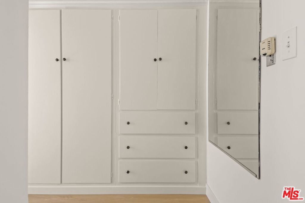 Classic Beverly Hills charm meets everyday practicality in this top-floor 1-bedroom, 1-bath unit. Thoughtfully designed, it features new hardwood floors, crown molding, and a layout that just works. The living room flows into a bright kitchen with a true dining nook. Down the hall, you'll find a spacious bedroom with a window AC unit, a full bathroom, and more storage than you'd expect (including a wall of closets that gets the job done). Additional perks include on-site laundry, a dedicated carport parking space, and a prime location near Cedars-Sinai, The Grove, Beverly Center, and the vibrant shops and cafes along Robertson, 3rd, and Melrose. A timeless find in the heart of it all.