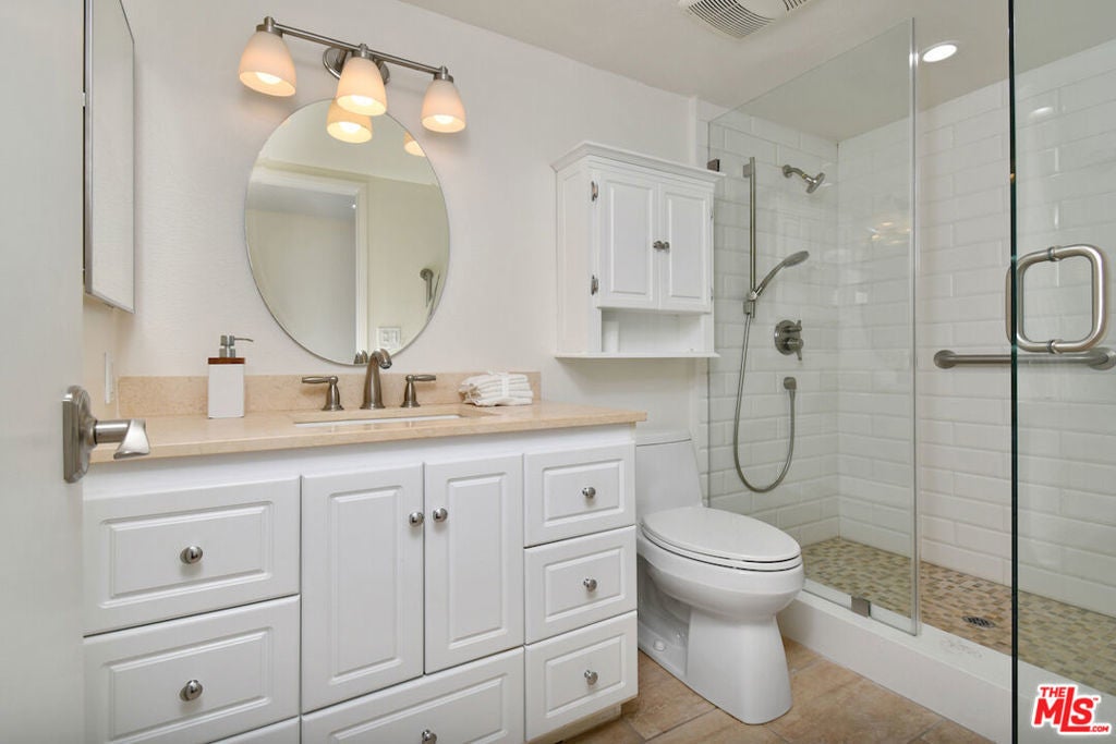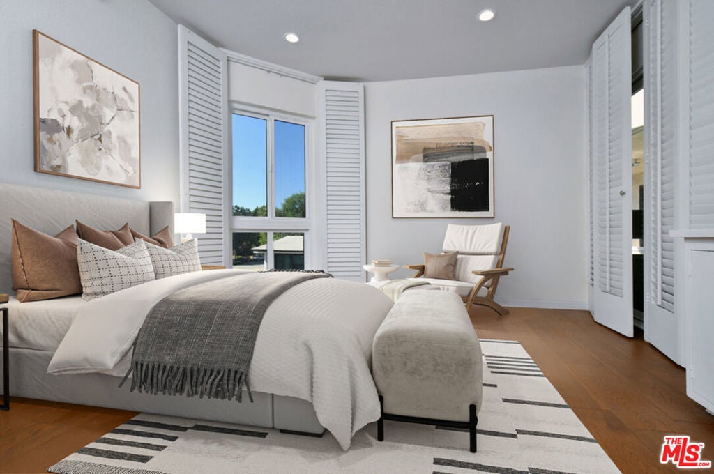 Experience exceptional living in the heart of Toluca Lake. This beautifully updated three-bedroom, three-bath condominium offers an expansive 1,904 square feet of single-level living space, an uncommon find in the area, where most condominium homes are smaller and multi-level. The open floor plan flows effortlessly between the living, dining, and kitchen areas, creating a versatile environment ideal for both relaxing and entertaining. The renovated kitchen features marble countertops, stainless-steel appliances, and modern cabinetry, complemented by recessed lighting, wood floors, and custom built-ins throughout. Dual-pane windows ensure a quiet, serene atmosphere, while an updated HVAC system and in-unit laundry provide comfort and convenience. Step onto the front-facing balcony to enjoy the breeze and tree-lined views while sipping your morning coffee, or enjoy the outdoors and explore the best of Toluca Lake Village. Discover neighborhood favorites like Prosecco Trattoria or Hungry Crowd for dinner, Gelson's or Trader Joe's for your daily shopping, and cap the evening with a show at the Garry Marshall Theatre. Additional features include a security system, two side-by-side parking spaces, ample storage, and access to a community pool and recreation room. Combining generous square footage, thoughtful updates, and an unbeatable location, this residence perfectly captures the inviting charm and vibrant lifestyle that make Toluca Lake one of Los Angeles' most desirable neighborhoods.