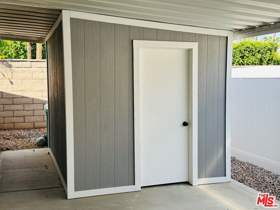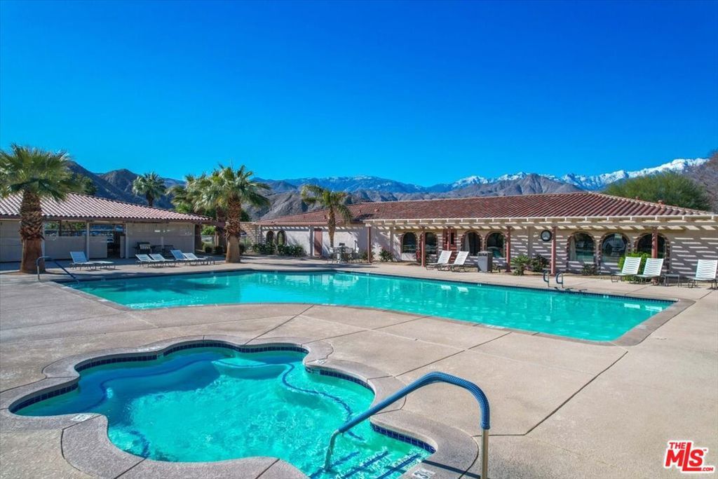 This practically brand-new completely renovated home offers country club living at a price that can't be beat! Offered fully furnished and turn-key, it features a spacious great room with vaulted ceilings and clerestory windows that showcase breathtaking mountain views and fill the space with natural light. The gourmet kitchen is a chef's dream, complete with high-end smart stainless steel appliances, sleek quartz countertops, a custom tile backsplash, a sit-in island, and warm, sexy shaker-style cabinetry. Luxury vinyl flooring flows throughout the home, leading to a stylish butler's pantry, perfect for serving cocktails and appetizers. The designer bathrooms feature quartz counters, custom-tiled showers, and elegant glass partitions. You'll find three generously sized bedrooms with ample closet space, complemented by contemporary hardware and chic light fixtures throughout. The wide hallway and doors allow for maximum accessibility. Step outside to enjoy a beautifully landscaped yard with accent lighting, a powered shed, and a charming private patio, ideal for relaxing desert evenings. Clever use of the outdoor space could allow for the addition of a fenced pet area / dog run. This rare gem sits on a low-maintenance, budget-friendly lot in the heart of the community, just steps away from the dog park, pools, clubhouse, and restaurant. Date palm Country Club is a 55+ community. Monthly lot rent includes park amenities (golf is additional). This one is priced to move quickly. Schedule your tour today!