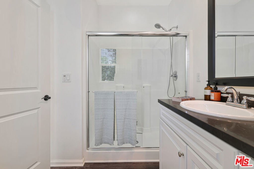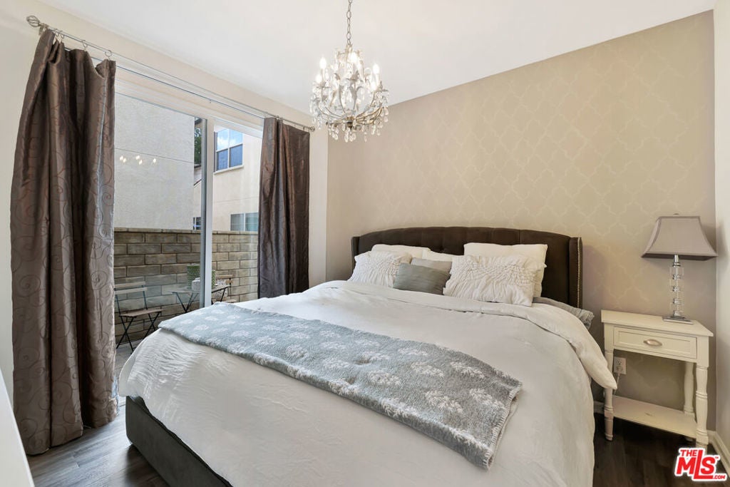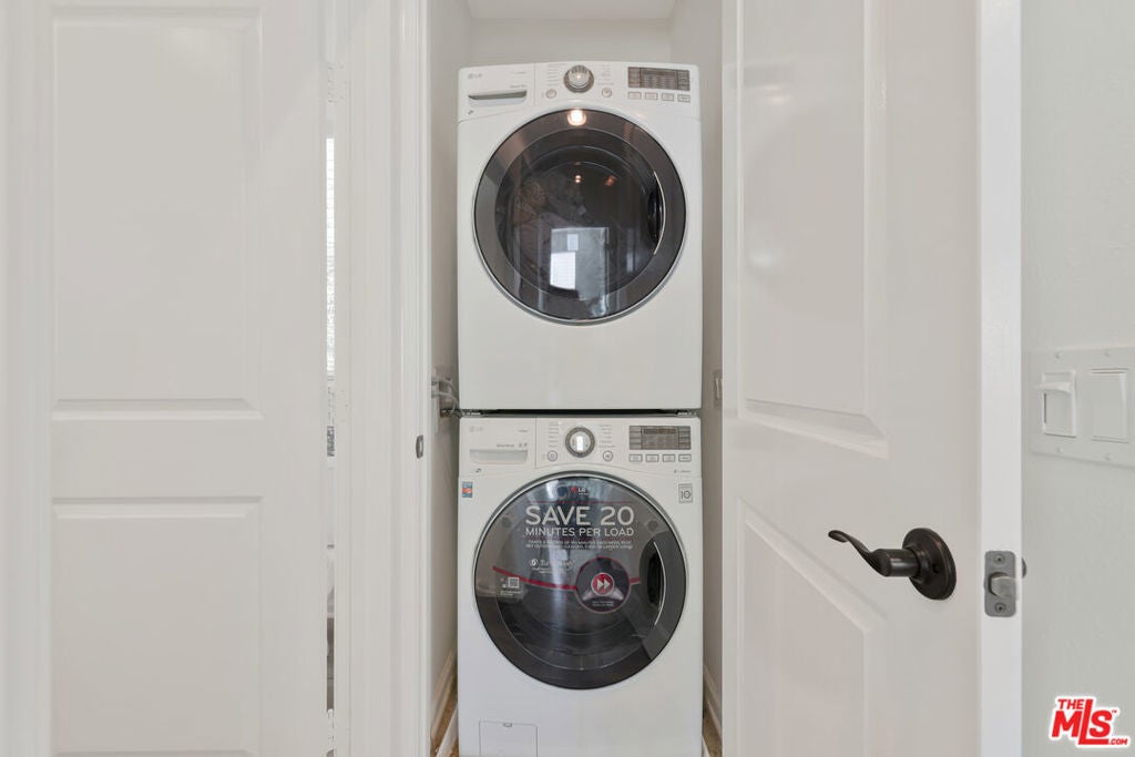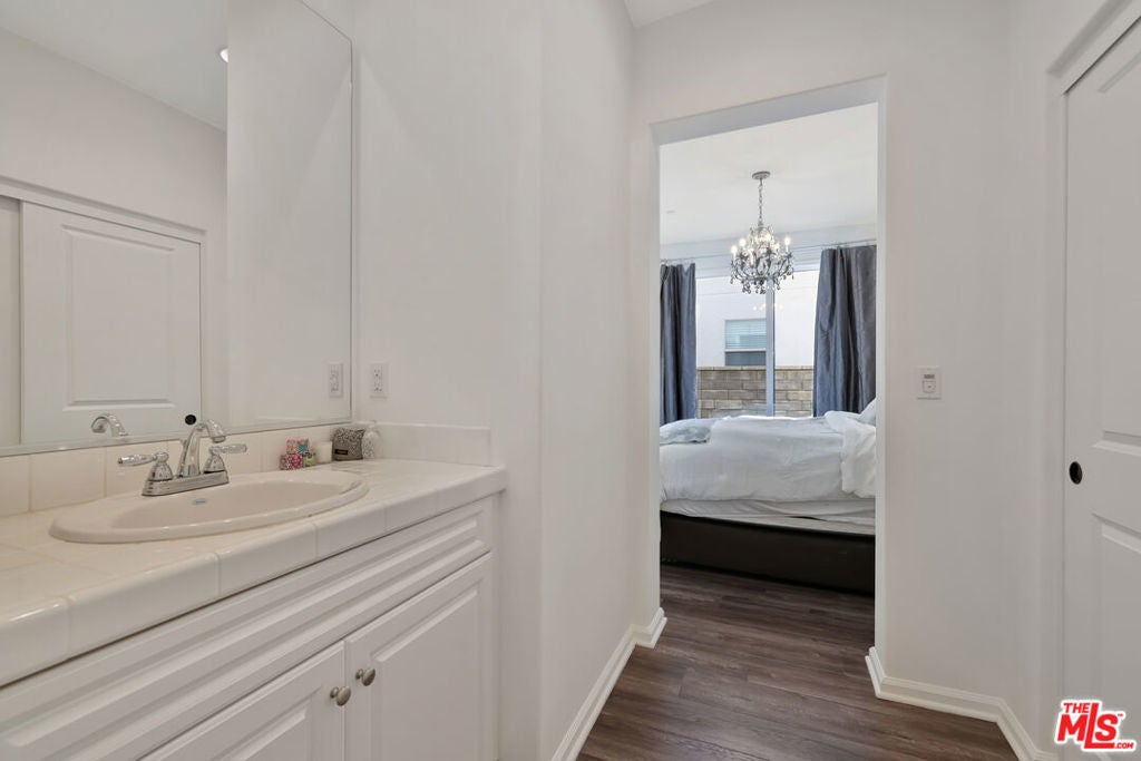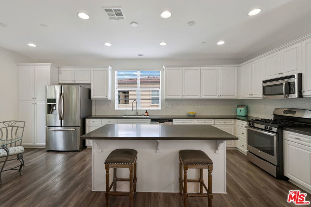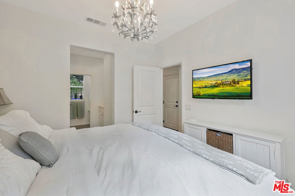 YOUR NEW HOME AWAITS IN BEAUTIFUL VILLA METRO! Welcome to resort-style living in the highly sought-after gated community of Villa Metro where modern design meets California charm. This stylish two-story detached home offers 2 bedrooms and 2 baths, featuring elegant wood-laminate flooring, plush carpeting, and designer accent walls throughout. The first-floor primary suite offers the perfect retreat with a private bath and sliding glass doors that open to your own tranquil patio. Ideal for morning coffee or quiet evenings. The open-concept upper level is bright and airy, boasting a chef-inspired kitchen with crisp white cabinetry, stainless-steel refrigerator, and appliances. A center island with bar seating that flows seamlessly into the dining area and cozy living room. Step through the sliding door to your covered balcony, a perfect spot to unwind and enjoy the breeze. Down the hall, discover the charming custom sky-blue barn doors leading to your second bedroom with its own a full bath, stackable washer/dryer, and convenient hallway storage. Enjoy direct access to your two-car attached garage, plus all the perks of Villa Metro's resort-inspired amenities a sparkling pool and spa, kiddie pool, clubhouse, BBQs, fire pit, community garden, bike path access, playground, and scenic courtyards perfect for evening strolls. Ideally located just minutes from the Metrolink station, shopping, dining, Six Flags Magic Mountain, and top-rated schools. This corner home is filled with natural light and designed for comfort, convenience, and effortless living! Low Mello Roos $1,484.00