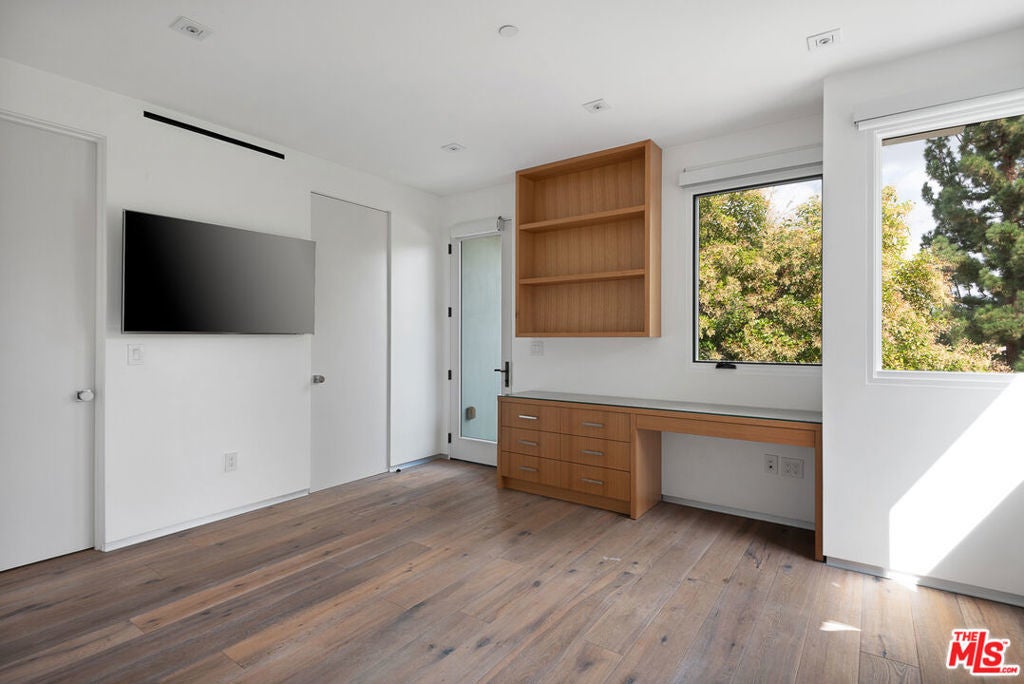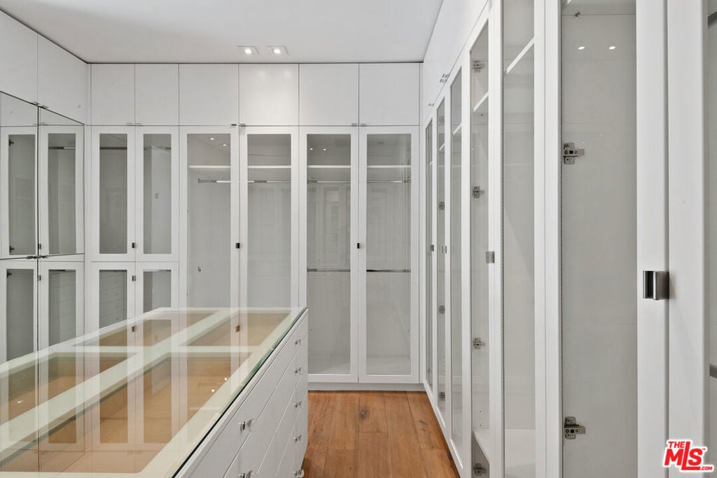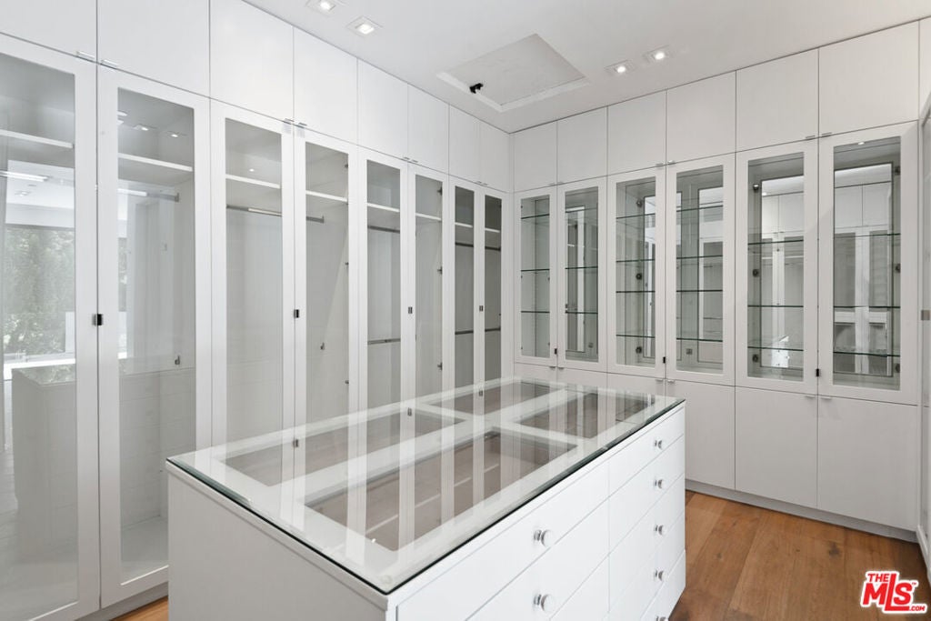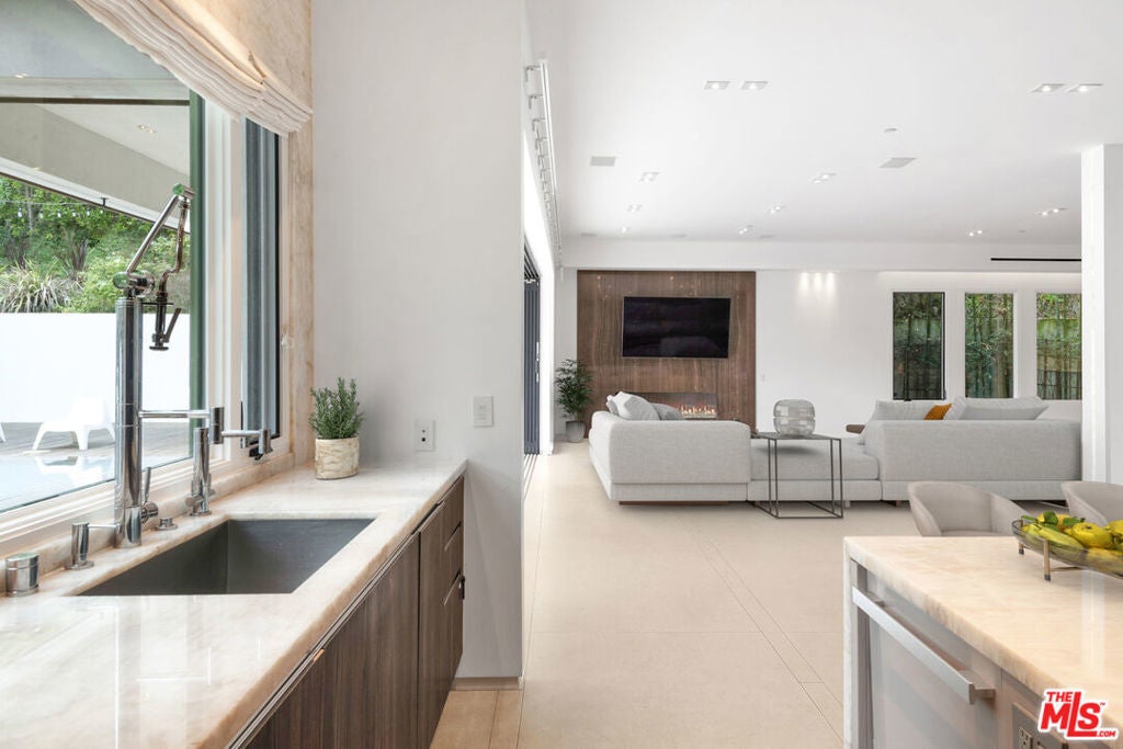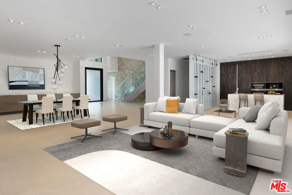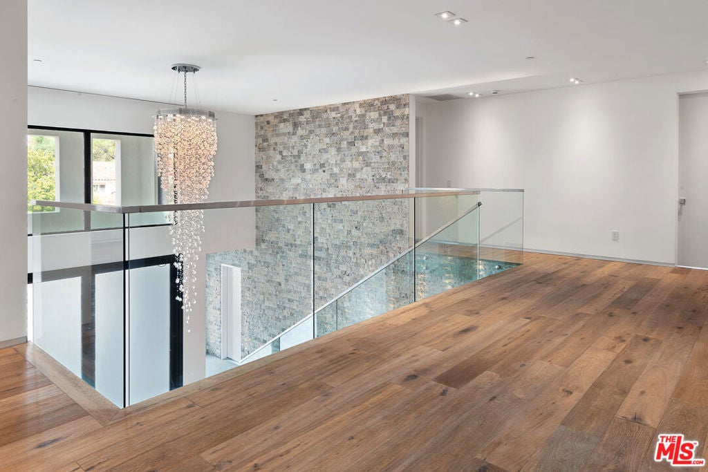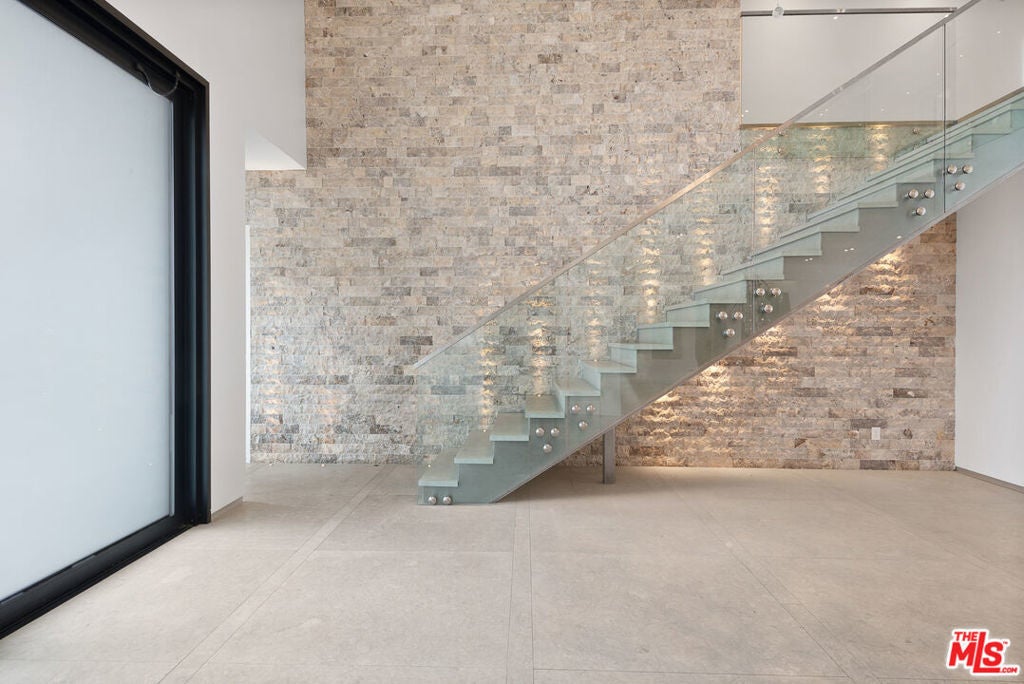 Sophistication meets modern luxury at this architecturally curated contemporary estate nestled in the prestigious enclave of Calabasas Park. Crafted with an extraordinary level of style and finish, this bespoke smart home offers over 5,000 sqft. featuring 5 bedrooms, 5 bathrooms, an additional office space and warm contemporary architecture and style. Beyond large double doors, a dramatic formal foyer features soaring ceilings and a striking stone accent wall. Expansive Fleetwood pocket doors stylishly fuse the line between indoor and outdoor living, leading to an entertainer's dream backyard featuring a zero-edge pool and spa, a fully outfitted outdoor kitchen, cozy fire pit, and a covered patio with built-in heaters and ceiling fans for year-round enjoyment. The kitchen is a culinary masterpiece with stainless steel Miele appliances, sleek built-in cabinetry, a dramatic waterfall center island, and a 192-bottle glass-enclosed wine wall. The open-concept dining area is highlighted by a built-in floating buffet bar topped with exquisite backlit Onyx countertops. Interior finishes are second to none, with stunning Batik Blue slab floors on the lower level and wide-planked hardwood throughout the upper level. The home features five en-suite bedrooms, each with private balconies, offering peaceful retreats with luxurious details. A downstairs office provides dedicated workspace, while the primary suite is a true sanctuary featuring Fleetwood accordion doors, a double-sided fireplace, steam shower with waterfall faucet, and a show-stopping walk-in closet. Designed for comfort, style, and cutting-edge convenience, the estate also includes full home automation, an advanced security system, water purifier, home gym, and a 3-car garage with epoxy flooring. Bold yet refined, this Calabasas estate offers a rare opportunity to experience elevated living in one of the area's most desirable communities. Located just minutes from premier shopping, dining, and with direct gated access to Lake Calabasas, this showpiece is a true statement of elegance and innovation.