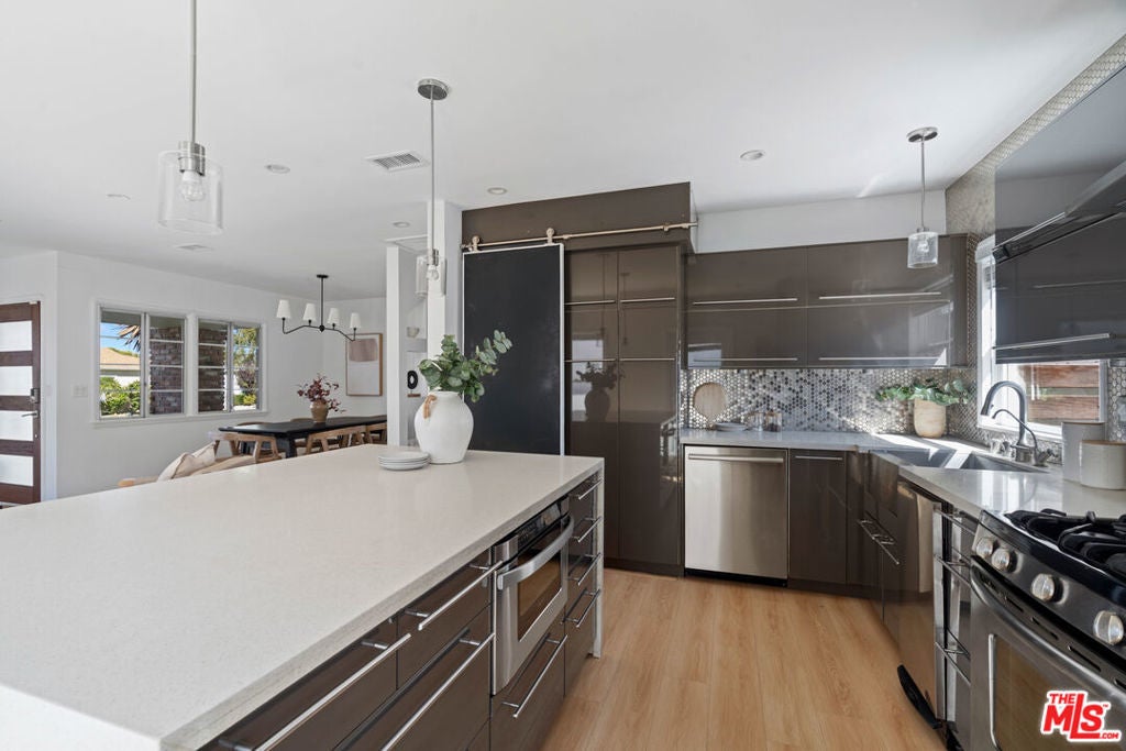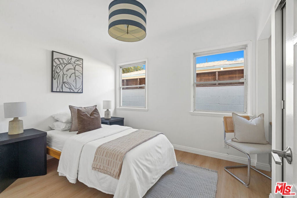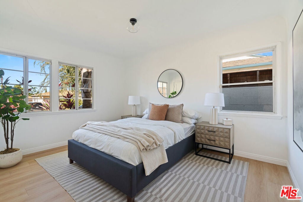 Charming Westport Heights Gem with Pool! Welcome to this beautifully updated home in the highly sought-after Westport Heights neighborhood of Westchester. Full of classic curb appeal and timeless character, the home features charming brick trim and a warm, welcoming vibe that perfectly fits the neighborhood's inviting feel. Inside, large windows fill the space with incredible natural light and highlight the open layout that flows effortlessly from room to room. The spacious living room connects seamlessly to a nicely tucked-away dining area, creating an ideal setup for both entertaining and everyday living. The kitchen is the heart of the home, featuring a generous center island, ample counter space, and great flow to the main living areas. The bedroom layout is ideal with two bright guest bedrooms and a stylish hallway bath, followed by a large primary suite complete with three closets, a beautifully renovated bathroom, and sliding doors that open directly to the backyard. Step outside to your private oasis where a sparkling pool with diving board invites endless fun and relaxation. A shaded daybed area offers the perfect spot to lounge or read outdoors, and the finished garage has been transformed into a great pool house with a sliding door for easy access to the pool. The large grassy yard offers even more space for kids, pets, or a friendly soccer match. Set in one of Los Angeles' most community-driven neighborhoods, this home combines Westport Heights charm with modern comfort. Don't miss your chance to make it yours!