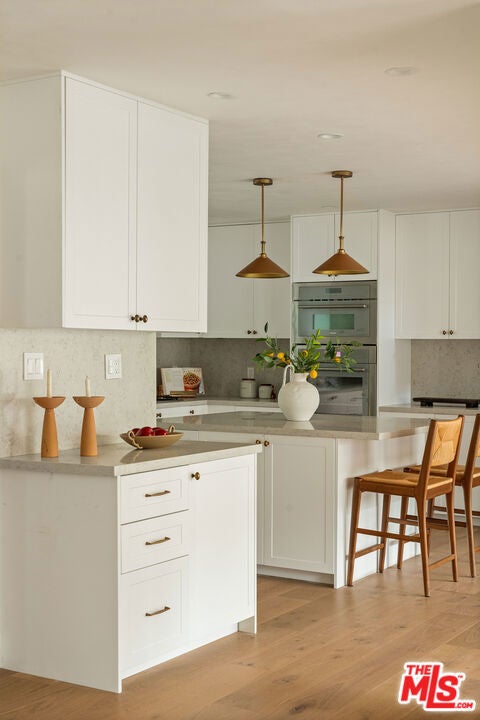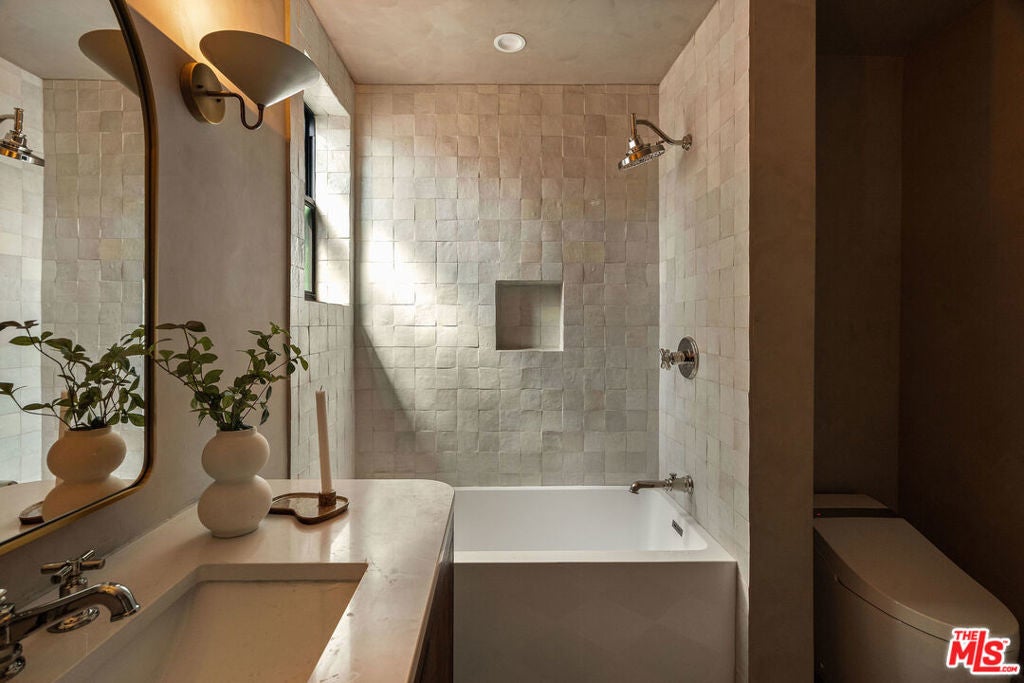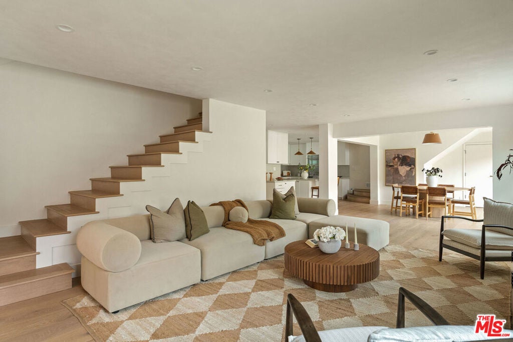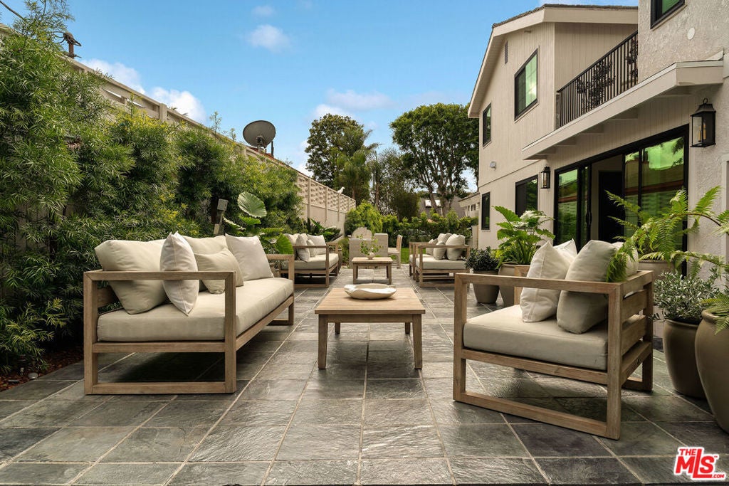 Set on one of the largest lots in the Oxford Triangle, this Marina del Rey residence blends elevated coastal living with timeless transitional design. This newly renovated 4-bedroom, 5-bath home features lime-washed walls, vaulted ceilings, and wall-to-wall sliding glass doors for effortless indoor-outdoor flow. The primary suite is a true sanctuary with Taj Mahal stone finishes, a luxurious spa shower, walk-in closet, double-door entry, and a private deck overlooking the property. Each additional bedroom includes its own ensuite bath, offering comfort and privacy. The inviting living room is anchored by a custom stone fireplace and framed by oversized picture windows that flood the home with natural light. Upstairs you'll find a versatile lounge area - the perfect setting for a cozy media room, intimate cocktail lounge, or quiet reading nook. Outside, enjoy a large deck, built-in barbecue with bar seating, lounge area and separate dining space ideal for entertaining or unwinding under the sun or stars. A rare combination of sophistication and serenity, this home embodies the essence of modern California living just moments from the beach and Abbot Kinney.