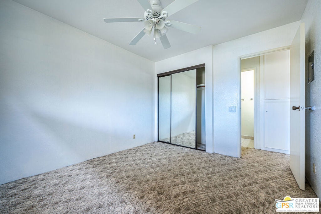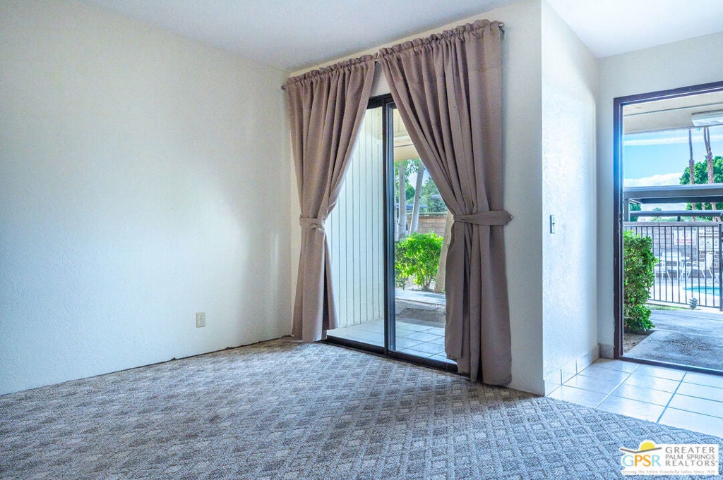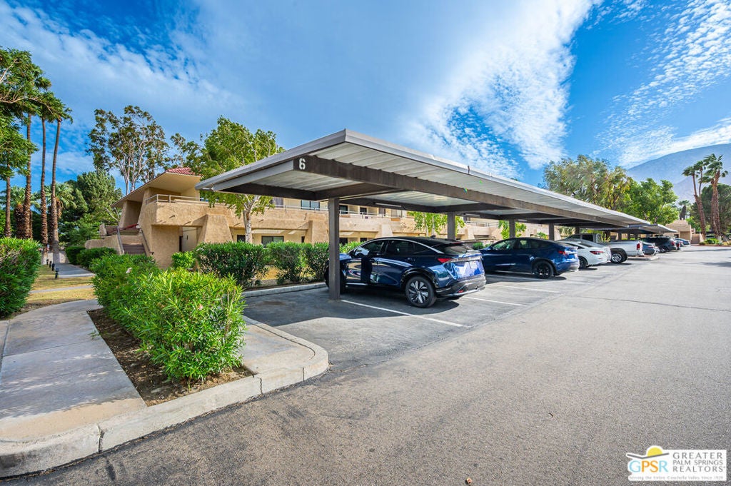 Ground level condo just steps from the spa and covered parking. This 1 bedroom 1 bath unit is thoughtfully priced for your first property, pied a terre, longterm or seasonal rental. Renovate and reimagine a beautiful space keeping very budget friendly. Palm Springs Villas II is located just minutes from downtown Palm Springs and all the Coachella Valley has to offer. The community offers tennis courts, multiple pools and spas, a gated entry for security, plenty of green space and community laundry. The community offers amazing mountain views and a very private resort style feel. Plenty of open unassigned covered parking as well as uncovered parking. This is one of the lowest priced condos in Palm Springs. Bring all offers!! Seller is motivated!!