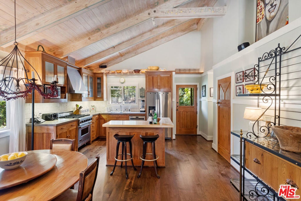 This One-of-a-Kind Estate is located in the most enchanting area of Topanga: Greenleaf Canyon. It offers a rare opportunity to embrace nature and tranquility on 8 plus acres bordered by the Topanga State Park open space. Rock ledges, mountain terrain, cross canyon views are many, long and spectacular. This property celebrates the very best of Topanga's natural beauty. This offering features three stunning homes. Each is custom built to perfection: high ceilings, attention to detail, and fine craftsmanship. All three include spacious decks and generous stone or brick patios and walk-ways. In addition to the three homes, the property includes a large two story accessory building with loft and decks, currently use for creating one of a kind unique craftsman furniture, artistic work and designs. This incredible "over-built" building offers great potential for an easy creative conversion to a 5000 plus square foot home. It invites your imaginative spirit to work with the currently seven large separate areas and transform into a dream kitchen, living-dining -area, primary bedroom with ensuite bathroom and walk-in closets, art studio, exercise room, library-office, recording studio, entertainment center, up to four luxurious bedroom suites, and more. Several professional architectural renderings have been prepared to demonstrate possible existing room transformations and stimulate your own creative visions. Every view from this bonus building is different and outstanding. There is ample space in two locations for a swimming pool/spa. The property is blessed with the best of Topanga's natural vegetation including many magnificent old oak trees distributed throughout the property and accompanied by seasonal creeks and whimsical bridges. The many paths and trails that interconnect all parts of the property pass through well placed fruit tree orchards, vegetable gardens, and decorative landscaping. It welcomes immersing oneself in nature's wonderful miracles. It's not an overstatement to describe this property as PERFECT.