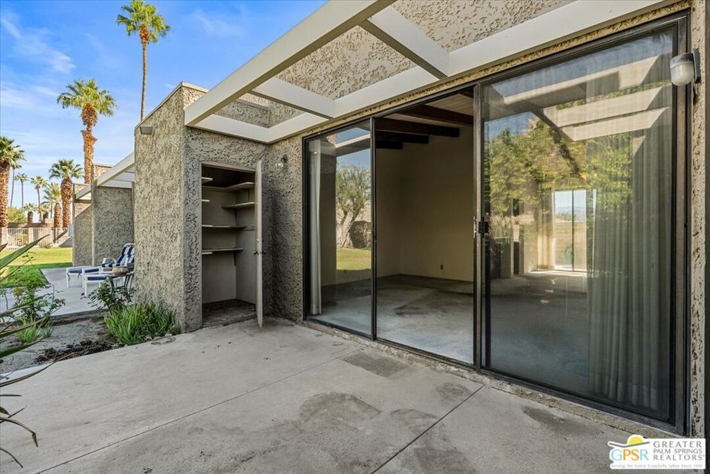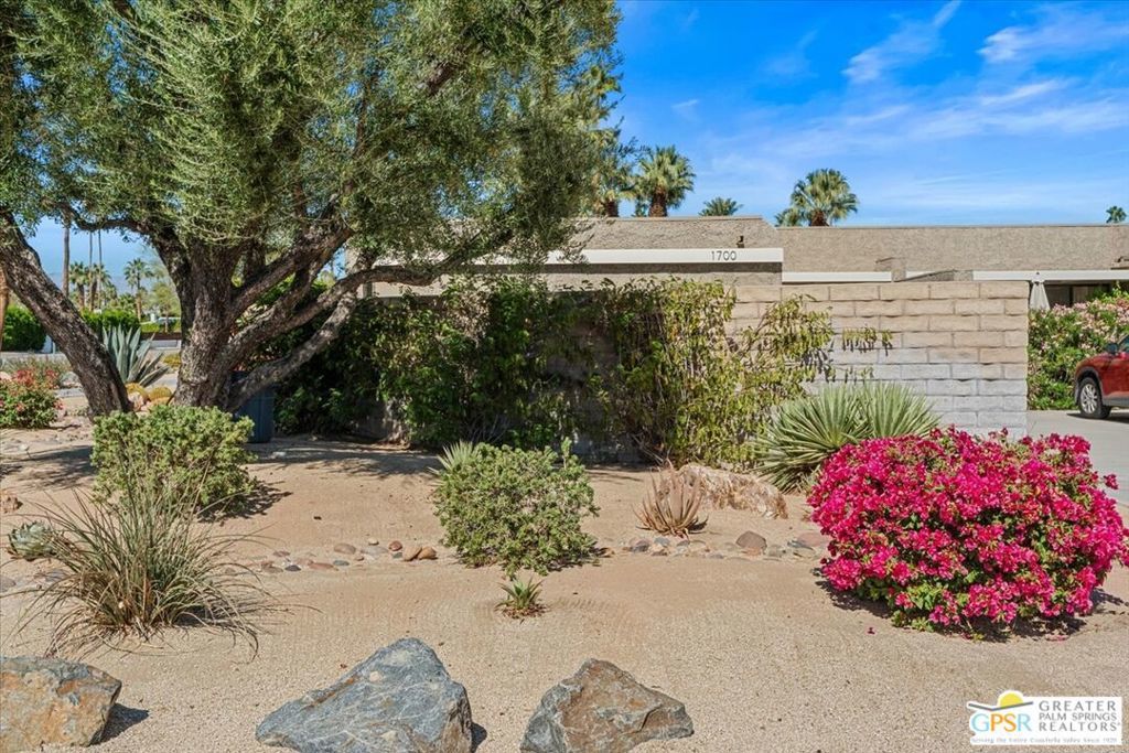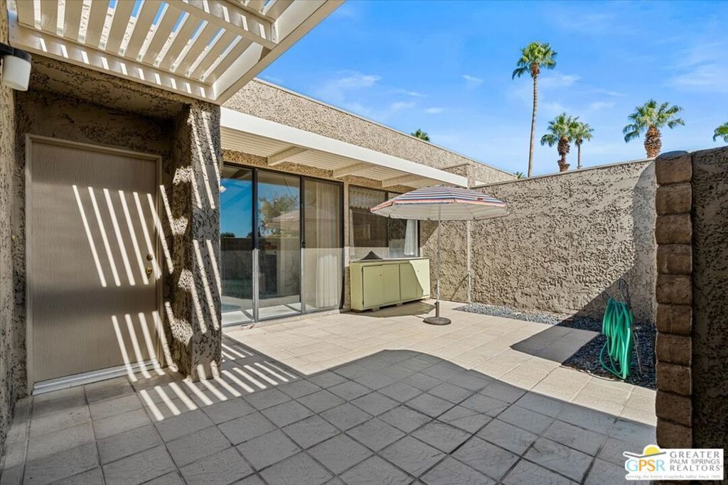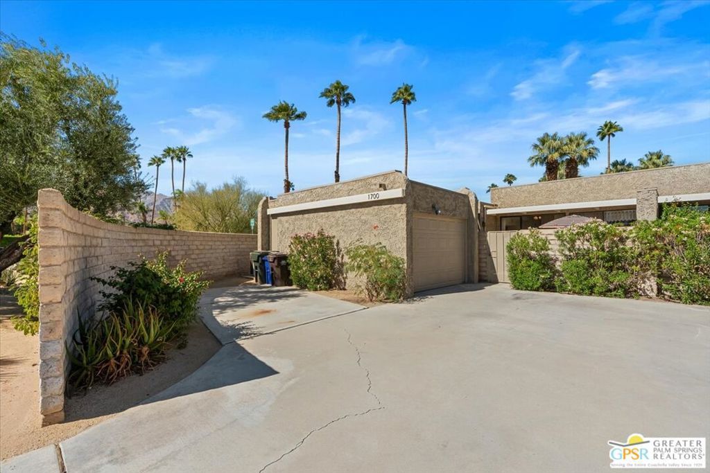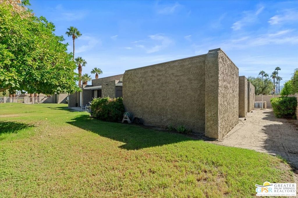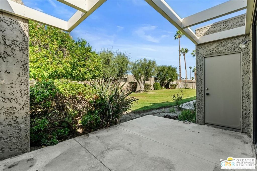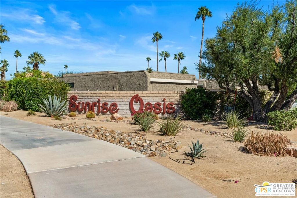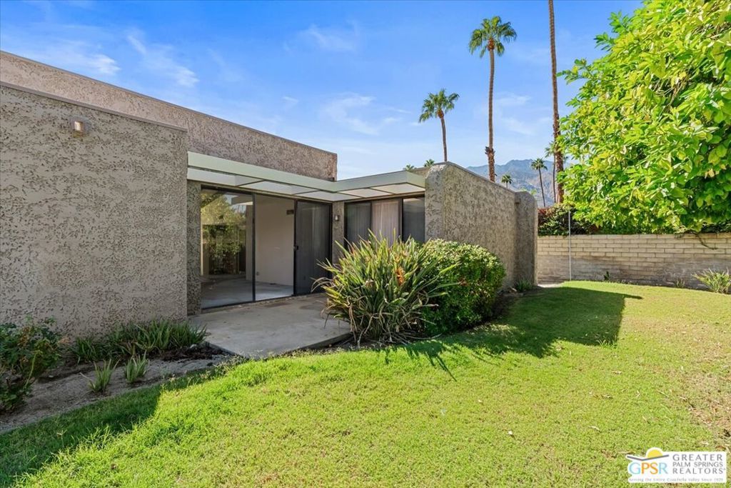 Classic Palm Springs living in a fantastic central location ready for you to make it your own! This single story, end unit condo in Sunrise Oasis has great bones for the buyer looking to personalize in their own style. With a primary ensuite and two guest bedrooms, this is an amazing opportunity to fashion your own weekend getaway or full-time residence. The unit features a fully enclosed front patio off the kitchen and rear patio leading out to fenced grassy area shared by four units. Recent upgrades to the unit include a new roof and new electrical panel and a newer water heater. All appliances including washer & dryer included. The condo comes with a 1-car garage and room for additional parking up to 3 vehicles. Located just a mile from Downtown Palm Springs, this community is on fee land (you own) near Ruth Hardy Park, Desert Regional Hospital and all of the shopping and dining options Palm Springs has to offer. HOA includes water, roof maintenance, landscaping, 3 pools/spas, 2 pickleball courts, exterior building insurance, and trash.