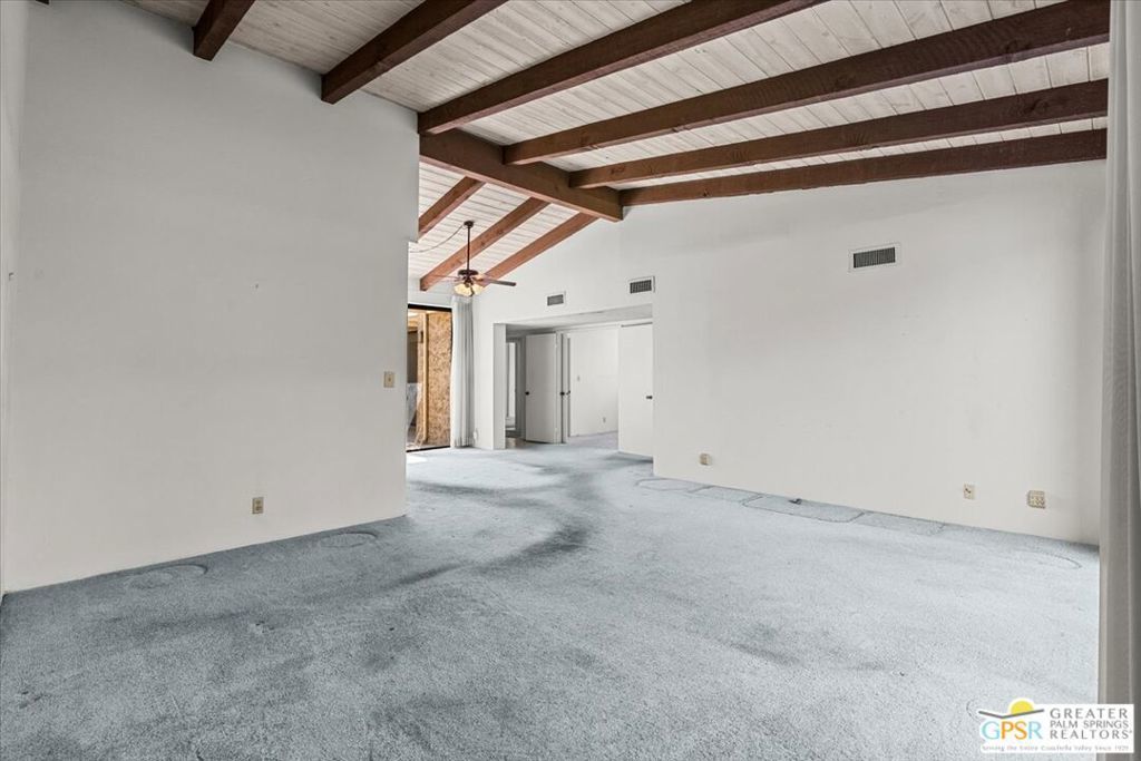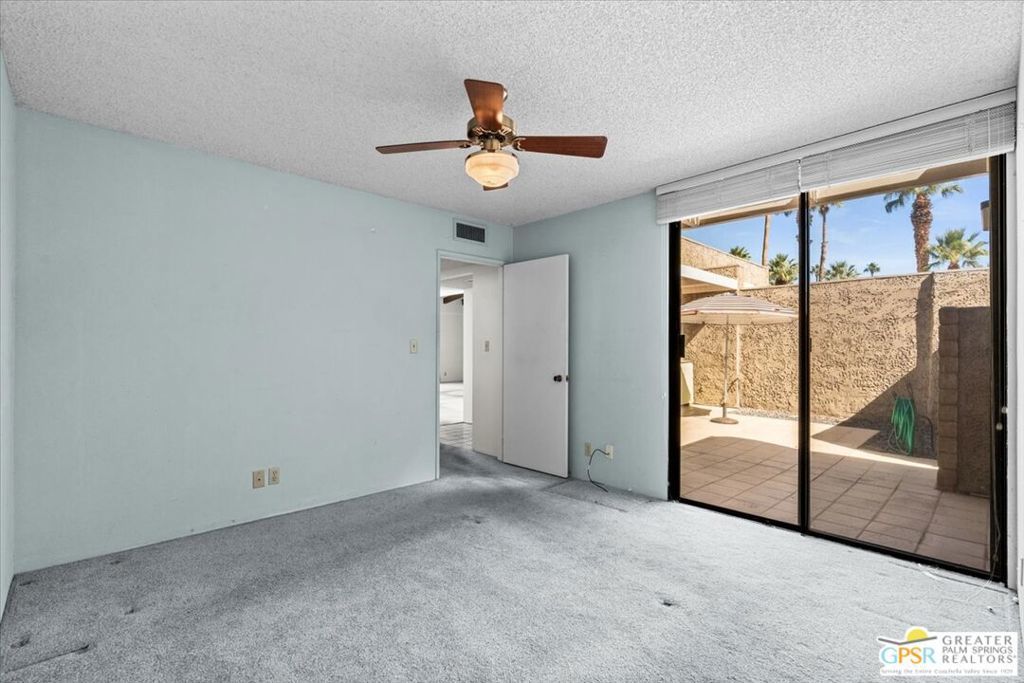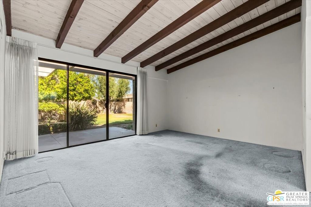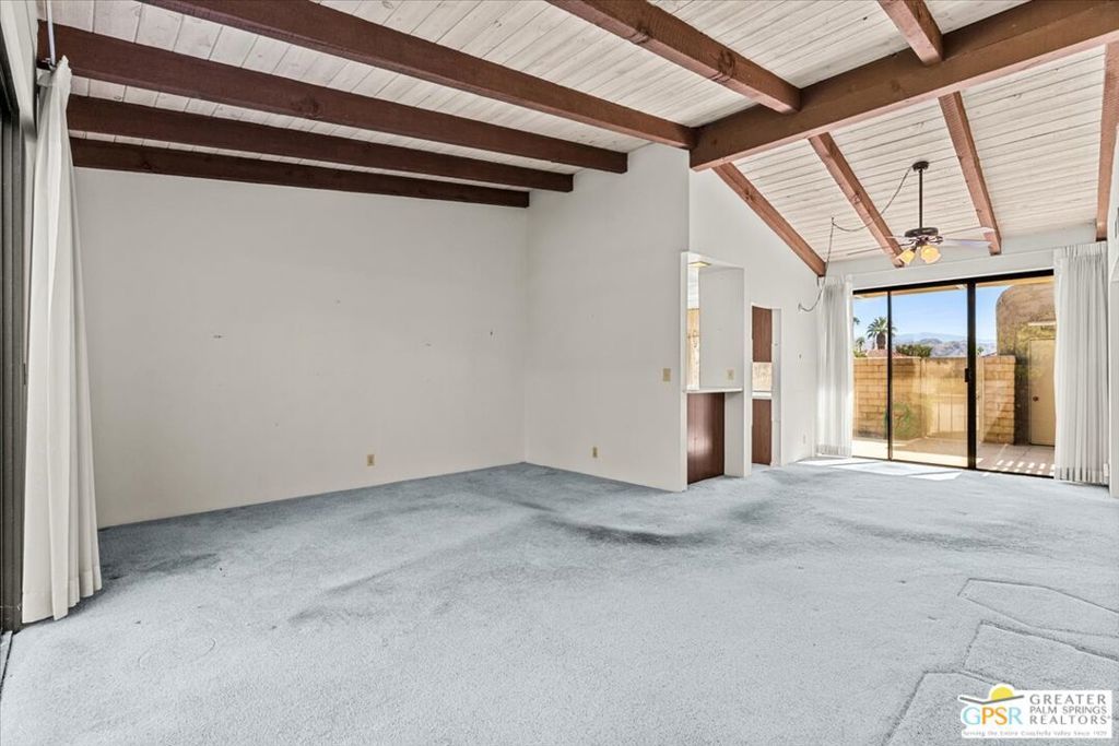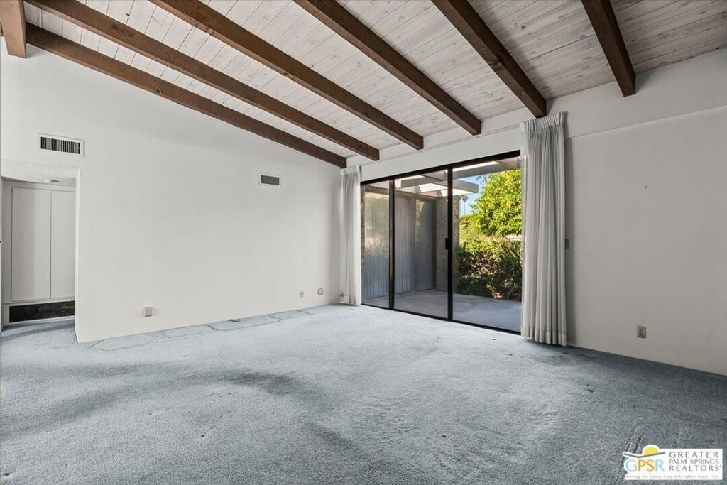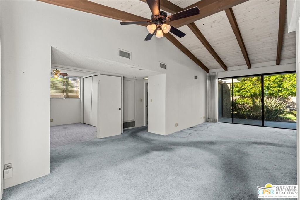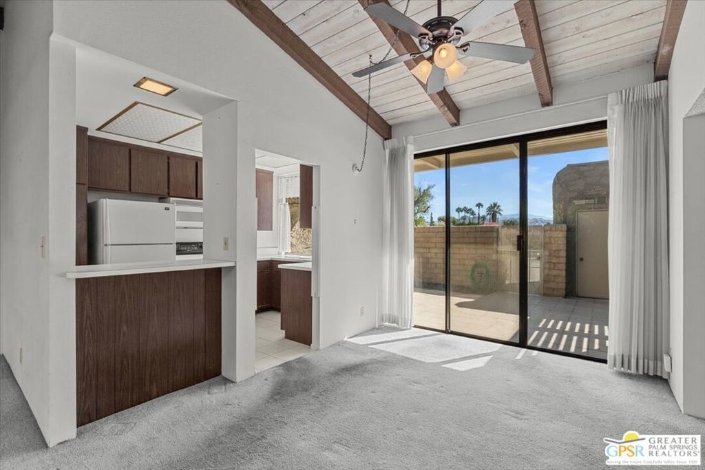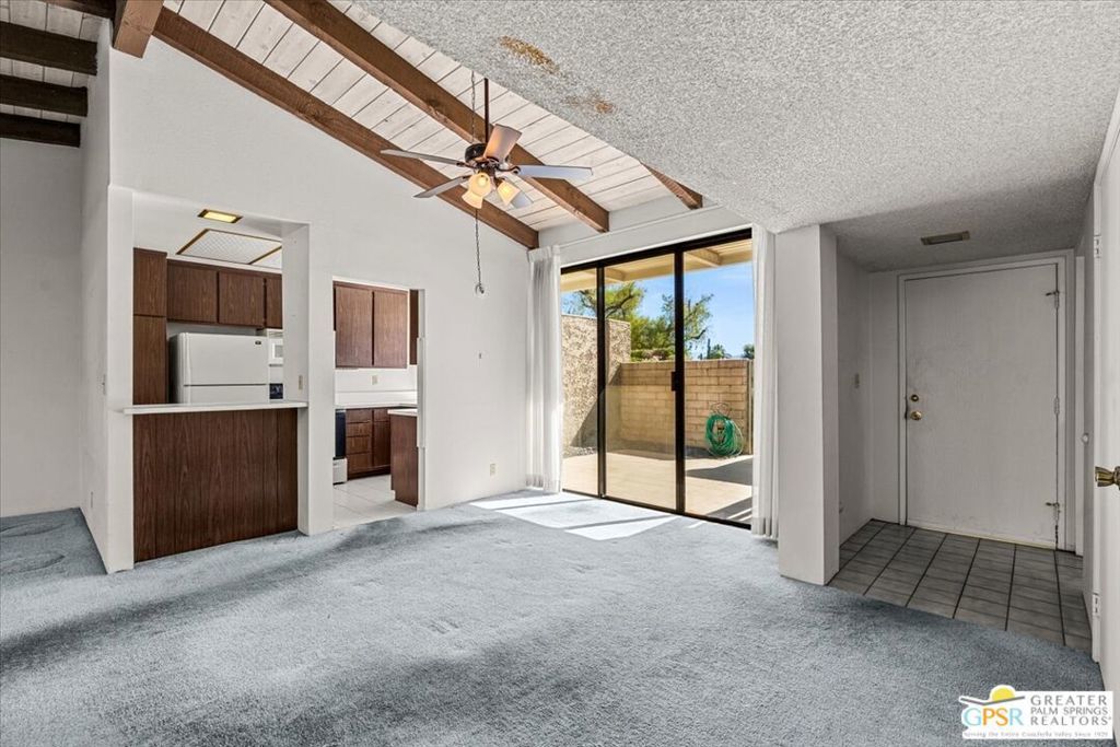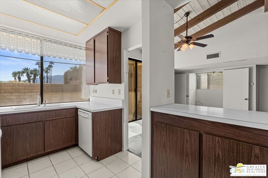 Classic Palm Springs living in a fantastic central location ready for you to make it your own! This single story, end unit condo in Sunrise Oasis has great bones for the buyer looking to personalize in their own style. With a primary ensuite and two guest bedrooms, this is an amazing opportunity to fashion your own weekend getaway or full-time residence. The unit features a fully enclosed front patio off the kitchen and rear patio leading out to fenced grassy area shared by four units. Recent upgrades to the unit include a new roof and new electrical panel and a newer water heater. All appliances including washer & dryer included. The condo comes with a 1-car garage and room for additional parking up to 3 vehicles. Located just a mile from Downtown Palm Springs, this community is on fee land (you own) near Ruth Hardy Park, Desert Regional Hospital and all of the shopping and dining options Palm Springs has to offer. HOA includes water, roof maintenance, landscaping, 3 pools/spas, 2 pickleball courts, exterior building insurance, and trash.