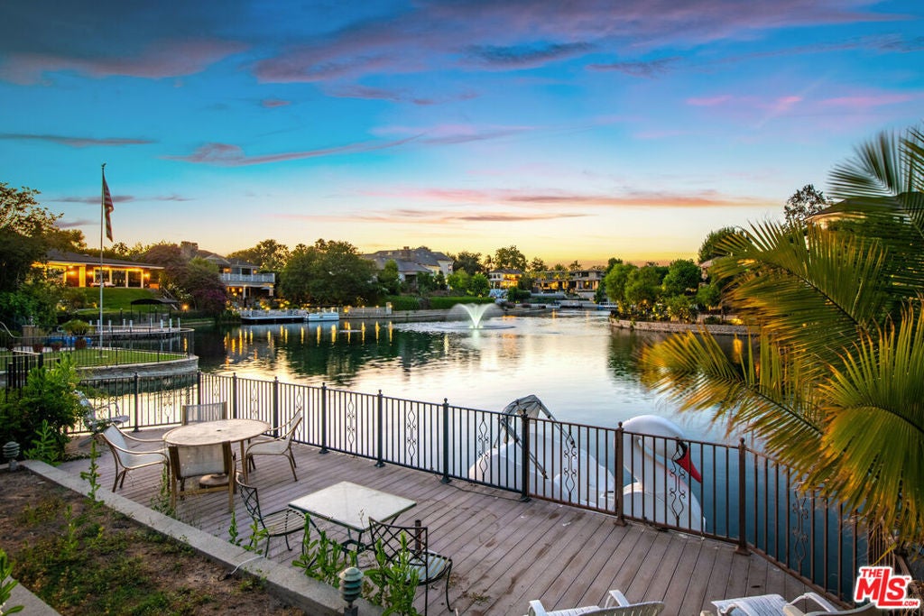Exquisite Lakefront Retreat in Coveted Toluca Lake. A rare opportunity to own one of Toluca Lake's most distinguished properties one of only 34 exclusive residences with direct access to the private lake. Custom-designed and built in 1976, this spacious two-story home offers approximately 4,584 square feet of light-filled living space, thoughtfully designed for both comfort and elegant entertaining. Plus, an oversized 19,524 sq ft lot adds incredible outdoor living space perfect for relaxation, entertaining, or future enhancements. Walls of floor-to-ceiling glass and soaring ceilings flood the interiors with natural light, framing panoramic multi-directional views of Toluca Lake. The expansive living, dining, and kitchen areas flow seamlessly to a lakeside patio, ideal for indoor/outdoor entertaining. A stylish wet bar and dual walk-in pantries enhance functionality for hosting guests. The residence includes 3 generous bedrooms and 4 bathrooms, including a luxurious primary suite that commands broad second-story views of the lake. Enjoy your morning coffee or sunset wine on a private balcony, or relax in the spa-like ensuite featuring dual vanities, cedar-lined walk-in closets, a separate shower, and a private sauna. Just outside, a lakeside jacuzzi provides a tranquil spot to unwind while taking in the water views. Additional highlights include rich hardwood flooring throughout, elegant crown moulding, and a private boat dock offering immediate access to the lake. The expansive lot features mature trees and provides ample room to expand, add a pool, or build additional garages. This is lakefront living at its finest combining timeless design, exceptional views, and exclusive privacy in one of Los Angeles' most desirable neighborhoods.