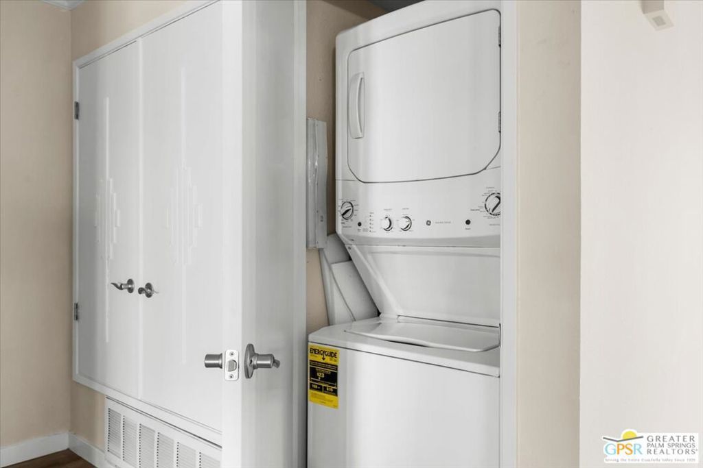 Welcome to this beautifully maintained lower-level condo in the desirable community of Canyon Shores. Featuring two bedrooms and two baths, this thoughtfully updated home offers a peaceful desert retreat designed for comfort and ease of living.Inside, you'll find updated windows and sliding glass doors, electronic window coverings, updated ceiling fans, easy-care flooring, and a bright, open layout that feels spacious and inviting. Step out to your private patio, where you can relax beside the tranquil water feature and enjoy the lush, landscaped greenbelt that surrounds this serene community. Located on fee simple land (you own the land) this home combines lasting value with an enviable resort-style lifestyle. Residents of Canyon Shores enjoy multiple pools and spas, tennis and pickleball courts, a fitness center, and more, all within a beautifully maintained gated setting. The HOA covers water, trash, and building and grounds maintenance, ensuring a worry-free living experience. Perfectly situated between Palm Springs and Palm Desert, Cathedral City provides convenient access to shopping, dining, golf, and entertainment throughout the Coachella Valley. Ideal as a full-time residence, seasonal escape, or investment property, this inviting condo offers the perfect blend of comfort, location, and ownership advantage.
