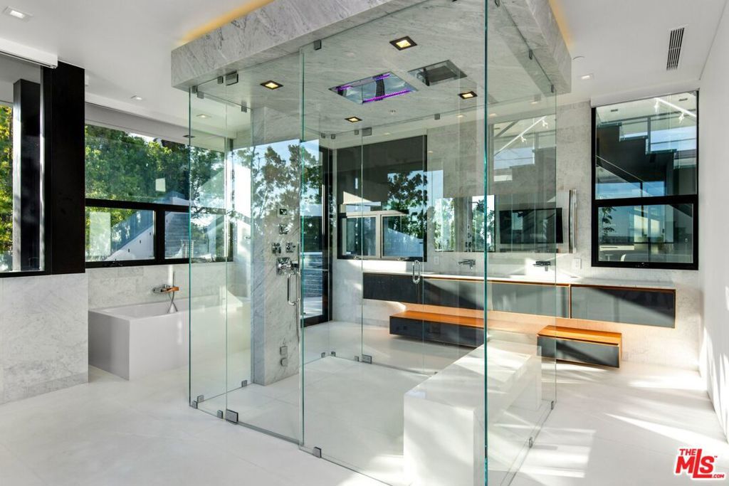Have it all in this architectural Bird Streets compound that is set behind gates and floating just above the buzz of the city. With floor-to-ceiling glass windows throughout, open the automated shades to enjoy the iconic palm-tree lined view of the Sunset Strip that surrounds and feel the energy of Los Angeles outside. This property was made for entertaining, with Fleetwood sliding doors that pocket fold in true indoor-outdoor California fashion and multiple levels to host guests both indoors and outdoors on the various terraces or on the 3,500 square foot, 180-degree view rooftop deck. Additional features include 7,332 square feet of living, five bedrooms, nine baths, a dedicated club space with theater, elevator, four-car garage, Control 4 system and incredible resort-style yard and pool area set amidst the LA backdrop and city lights. A perfect sanctuary with access to everything.