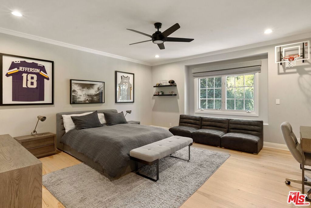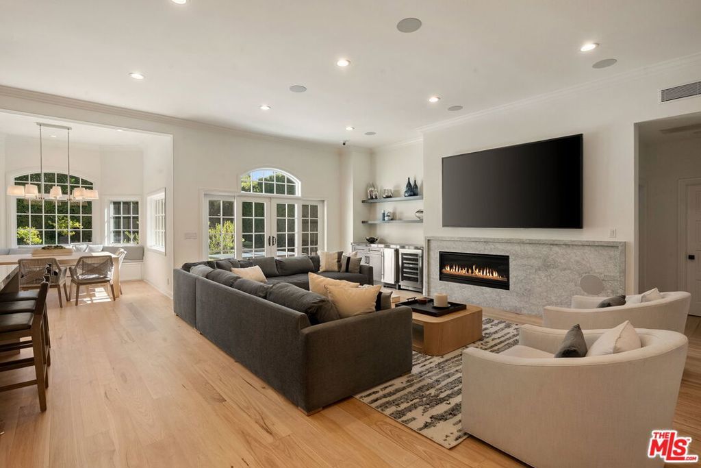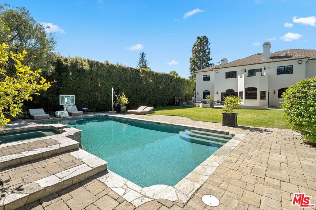 Located on one of Brentwood's most desirable streets, Homewood Road, this newly reimagined estate combines refined design with relaxed California living. Extensively renovated by the current owner, the residence offers approximately 6,800 sq. ft. of living space on an expansive 18,359 sq. ft. flat lot. A grand double-door entry opens to a light-filled foyer with soaring 23-ft ceilings, setting the tone for the home's bright and open layout. The main level features a formal dining room with garden views, a dedicated theater, and a stunning great room where a double-island chef's kitchen flows seamlessly to the family room and outdoors. The kitchen is outfitted with custom wood cabinetry, marble countertops, professional-grade appliances, and a walk-in pantry. A breakfast nook surrounded by windows overlooks the pool and gardens. Two spacious bedrooms and a full laundry room complete the main floor. Upstairs are four en-suite bedrooms, each with walk-in closets, including a luxurious primary suite with private sitting area, office, and dual walk-in closetsone currently used as a fitness studio. The resort-style backyard offers a sparkling pool and spa, multiple lounging areas, lush landscaping, and a generous lawn. Additional highlights include a private pickleball court and a fully permitted two-bedroom, one-bath guest house with its own laundry. Situated within the Kenter Canyon Elementary district and surrounded by Brentwood's finest estates, this exceptional property embodies timeless elegance, modern comfort, and an desirable place to call home.
