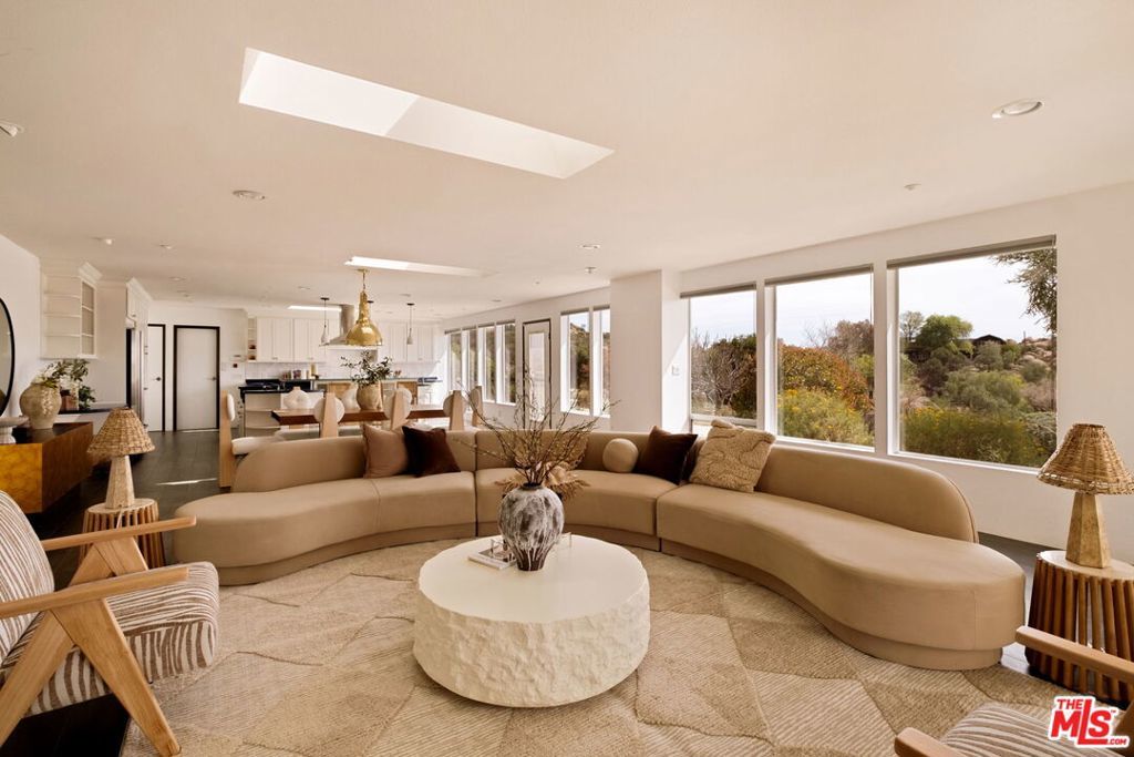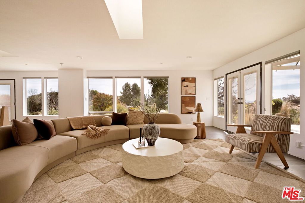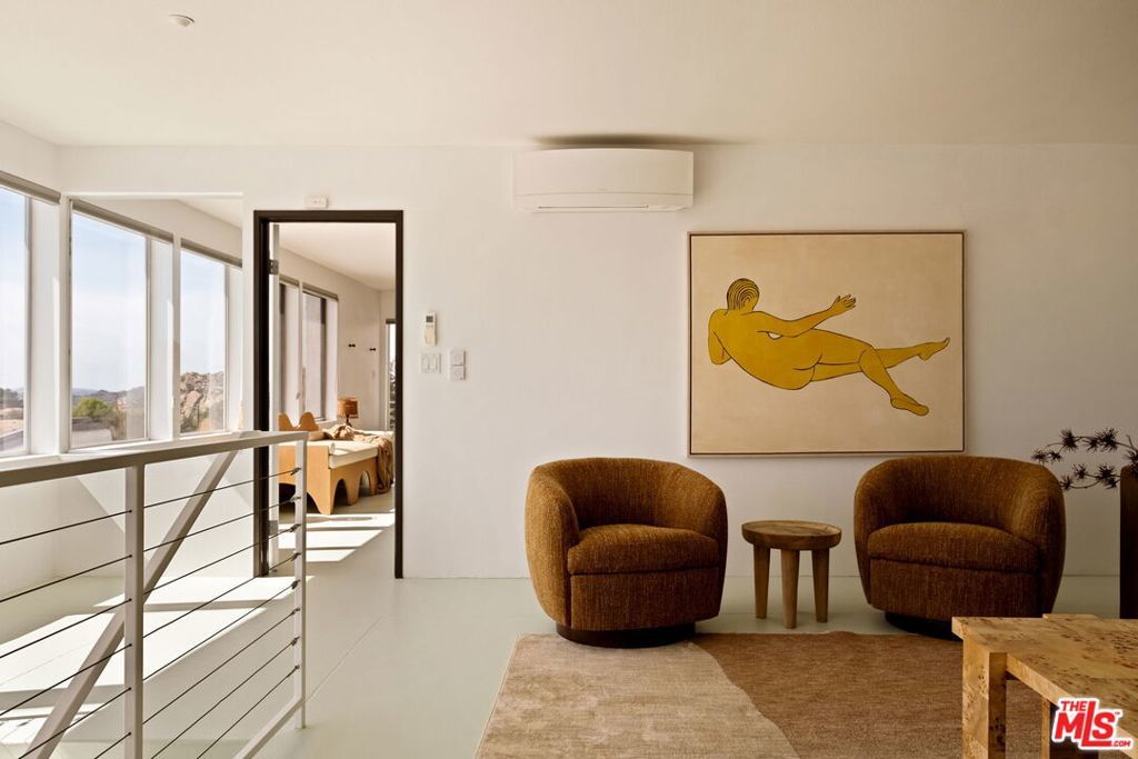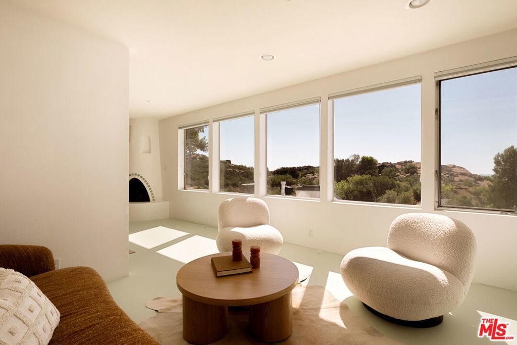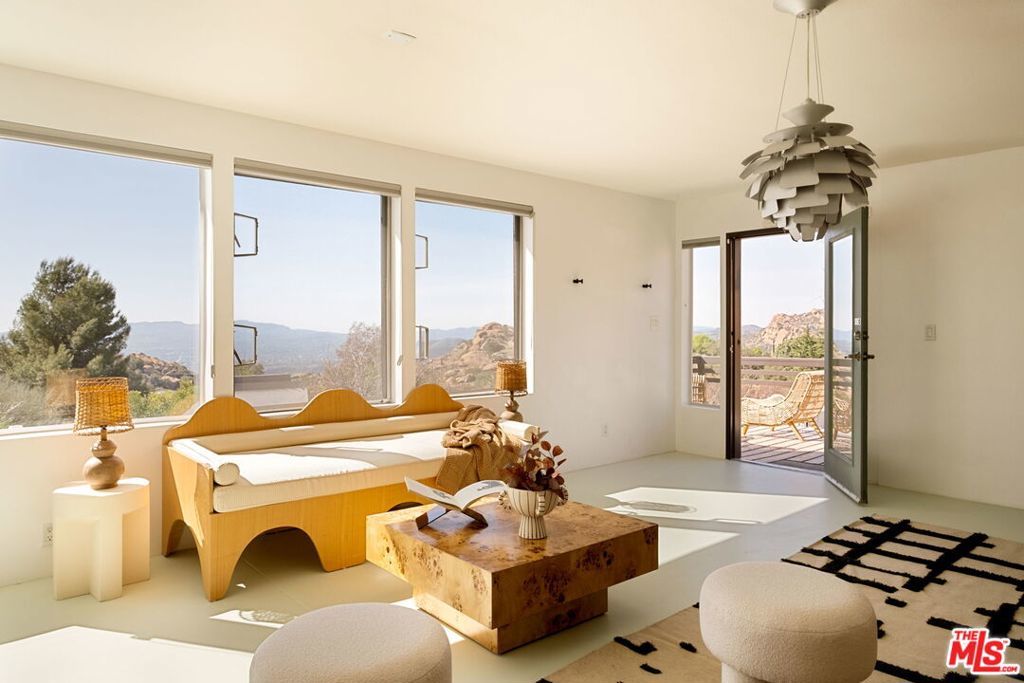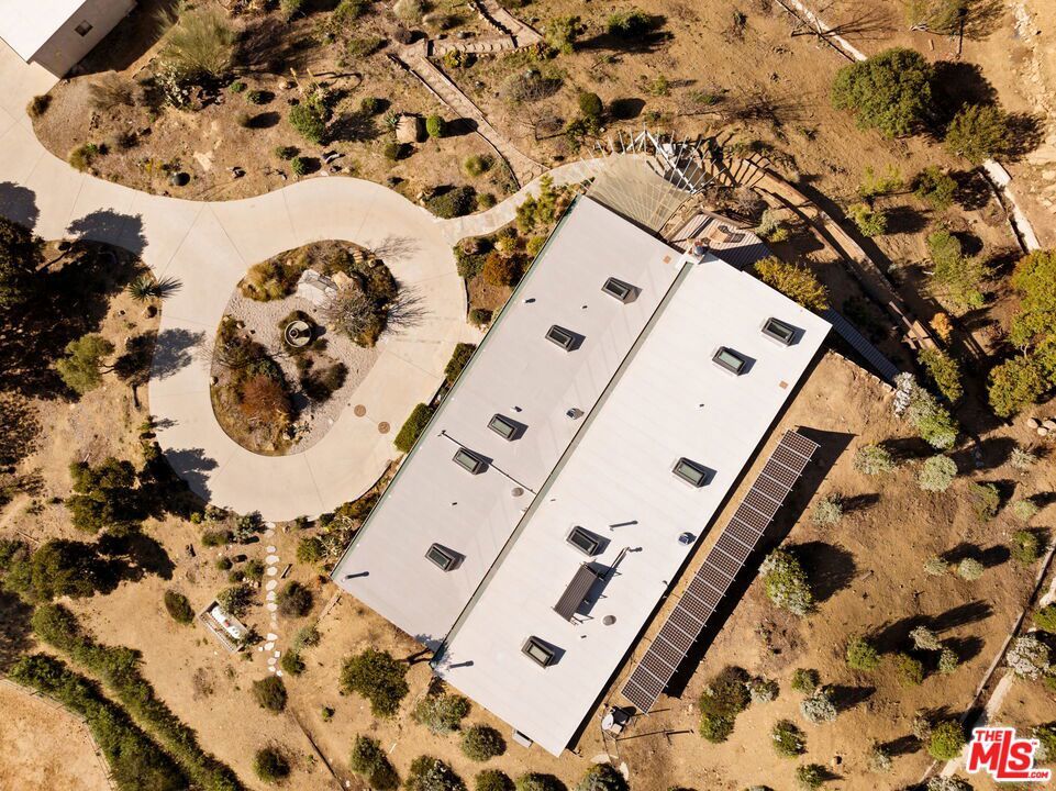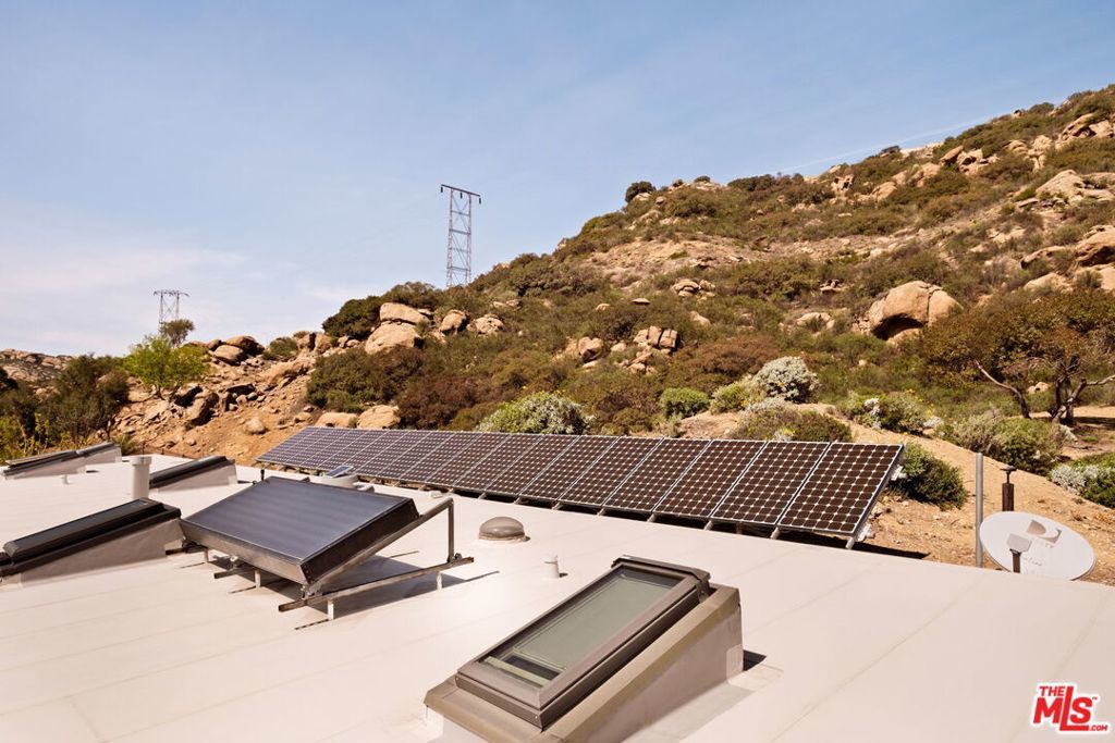 An artful blend of design, sustainability, and tranquility. Conceived by world-renowned architect Michael Reynolds, this eco-conscious retreat at 7401 Studio Road offers 3 beds, 2 baths and 3,600 sqft of elevated living on over two acres. Built with fire-resistant materials, including a fire-resistant roof on both the home and detached two-car garage, it's as durable as it is beautiful. Fully powered by owned solar panels, the residence operates with remarkable efficiency and near-total energy independence. A long private drive winds through a park-like setting with native gardens and a centerpiece water feature within a circular motor court. Inside, remodeled bathrooms, an open kitchen and sunlit living spaces with 120 ft of energy-efficient windows frame breathtaking mountain and canyon views. The main living room anchors the home with dramatic scale and warmth, while the upstairs lounge doubles as a cozy screening room with a drop-down projectorperfect for movie nights under the stars. The detached two-car garage offers versatile creative use, while a natural path leads to an al fresco dining terrace. A serene sanctuary of light, design and calm.