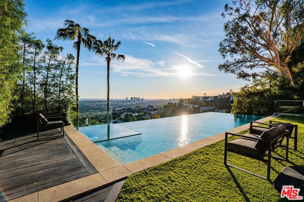 Perched above the iconic Sunset Strip, this architectural modern residence offers sweeping panoramic views from Century City to the Pacific Ocean. Thoughtfully redesigned with a seamless blend of luxury and livability, the home features approximately 2,890 square feet of open living space with four ensuite bedrooms and four and a half baths. Expansive Fleetwood glass doors open to an infinity-edge pool and outdoor entertaining terraces, creating a true indoor/outdoor lifestyle experience. The chef's kitchen is equipped with top-of-the-line Miele appliances, custom cabinetry, and sleek finishes throughout. The primary suite showcases stunning city views, a spa-inspired bathroom, and direct access to a private terrace. Smart home technology, integrated sound, and security systems complete the modern amenities. Located just moments from the best of West Hollywood, Beverly Hills, and the Sunset Strip, residents enjoy close proximity to world-class dining, nightlife, shopping, and hiking at Runyon Canyon. Perfectly situated for those seeking privacy, design, and the quintessential Los Angeles lifestyle with unmatched views and sophistication.
