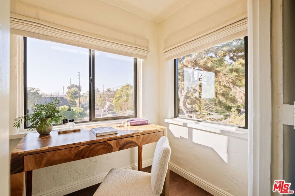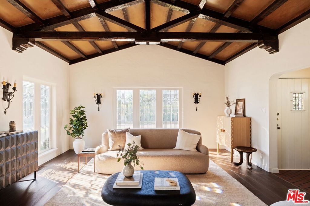 Classic 1928 Spanish Revival Home in Wilshire Vista | Los Angeles. A neighborhood gem built in 1928, this one-of-a-kind Spanish Revival residence embodies the warmth, character, and craftsmanship that define classic Los Angeles architecture. Nestled on a tree-lined street in Wilshire Vista, this charming two-story home welcomes you with timeless elegance and modern comfort. The sun-filled living room features original beveled leaded-glass windows that flood the space with natural light. A soaring beamed cathedral ceiling with hand-stenciled detailing adds dramatic beauty, while a Batchelder-tiled fireplace creates the perfect gathering spot for cozy evenings. The house has been freshly renovated with new hardwood flooring and new windows throughout, blending the home's rich 1920s details with contemporary ease. With three large bedrooms, two full bathrooms and 2,719 sq. ft of living space, the home offers generous, light-filled spaces ideal for everyday living and entertaining. Handcrafted tilework and vintage fixtures put the artistry and the enduring charm of the 1920s front and center, making the house a truly special place to call home.