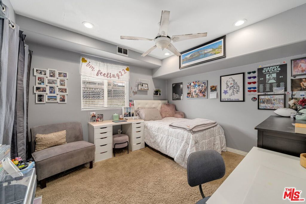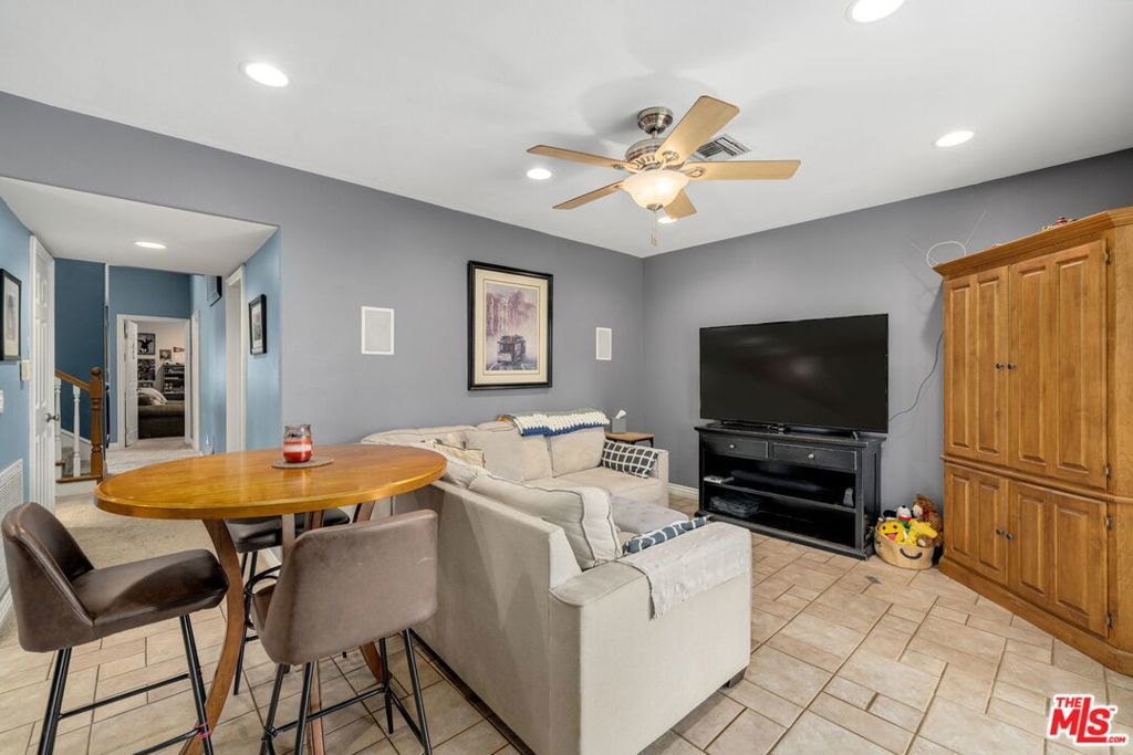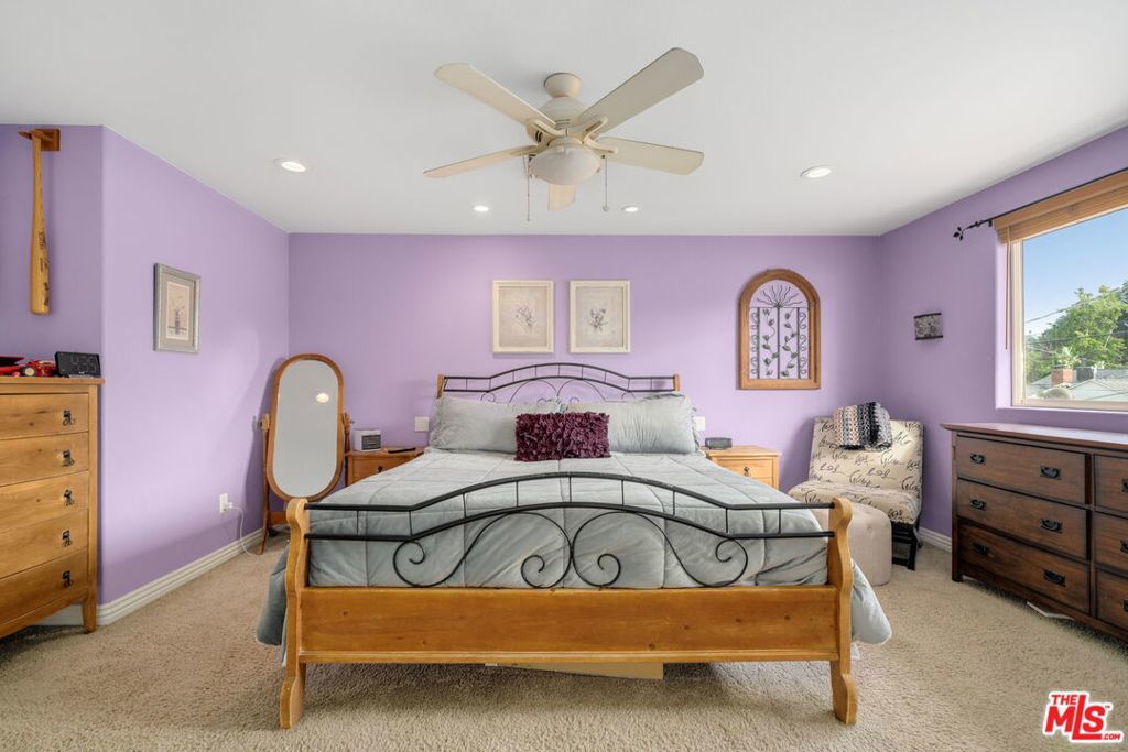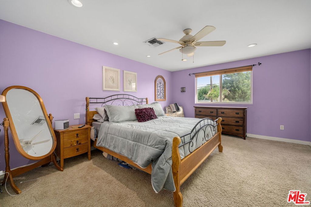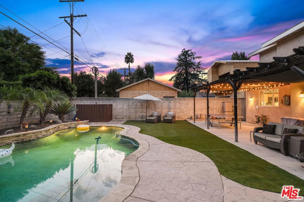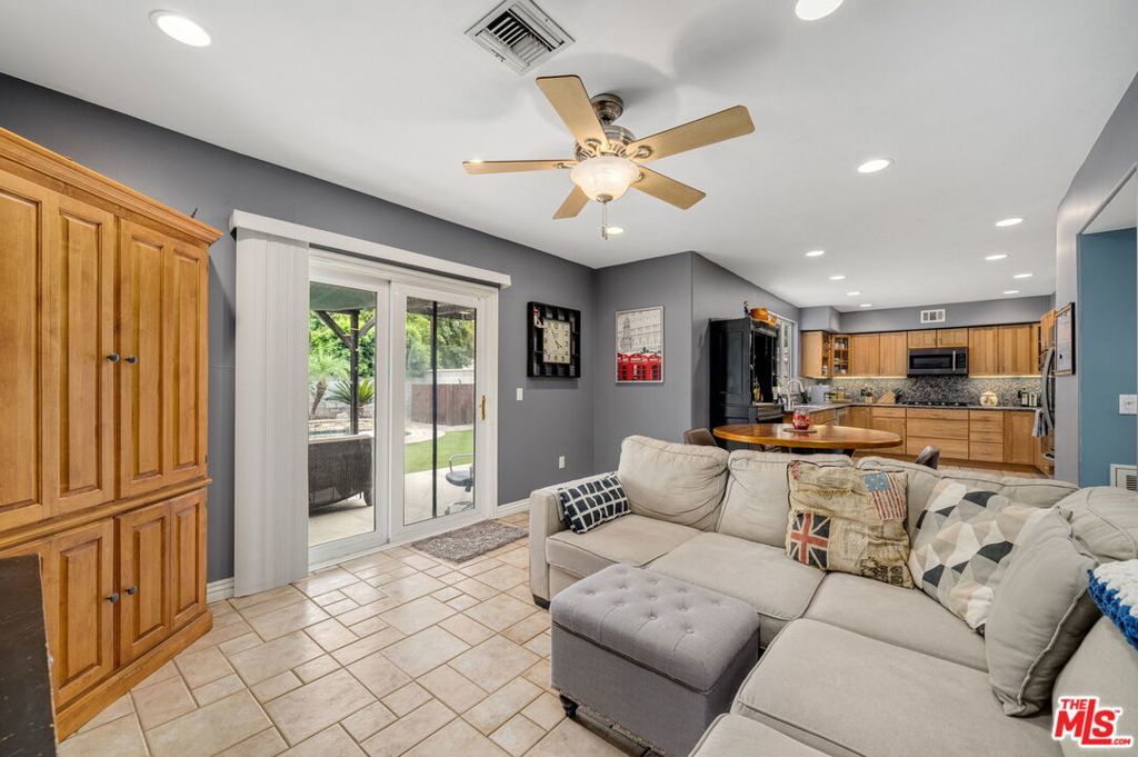 First time on the market in over 30 years, this beautifully maintained 3-bedroom, 2-bathroom home is ideally located in prime Woodland Hills on a large lot just north of Ventura Boulevard. Step inside to soaring ceilings, a bright living room with a great fireplace, an elegant grand staircase, and windows that fill the space with natural light. The spacious kitchen, complete with abundant cabinetry and stainless steel appliances, is a chef's delight and opens directly to the expansive backyard perfect for al fresco dining, entertaining under the stars, or hosting unforgettable pool parties. The home's comfortable layout features two generously sized bedrooms with ample closet space on the main level, while the entire upstairs is dedicated to a private primary suite retreat. This sanctuary includes a large walk-in closet, an oversized en suite bathroom with jetted tub and walk-in shower, and a separate versatile den that can serve as an office, lounge, or easily be converted into a fourth bedroom. Outside, enjoy your own private oasis with a Pebble Tec pool featuring a Baja shelf, and a separate attached spa with waterfall, all surrounded by drought-tolerant landscaping that provides year-round beauty with minimal upkeep. Move-in ready yet full of potential, this home offers the perfect opportunity to upgrade, add equity, and create your dream space. Ideally situated near Ventura Boulevard, Topanga Westfield, the upcoming Ram's Village (get into the neighborhood while you can!), fine dining, and more, this rare offering captures the best of the California lifestyle in one of the Valley's most sought-after neighborhoods.