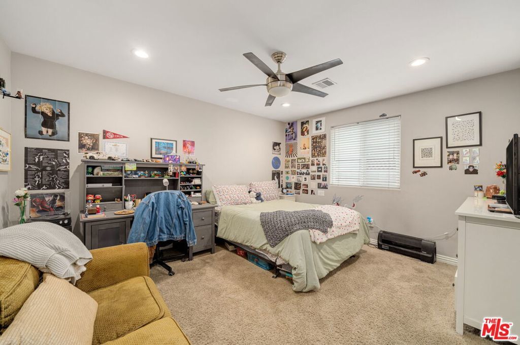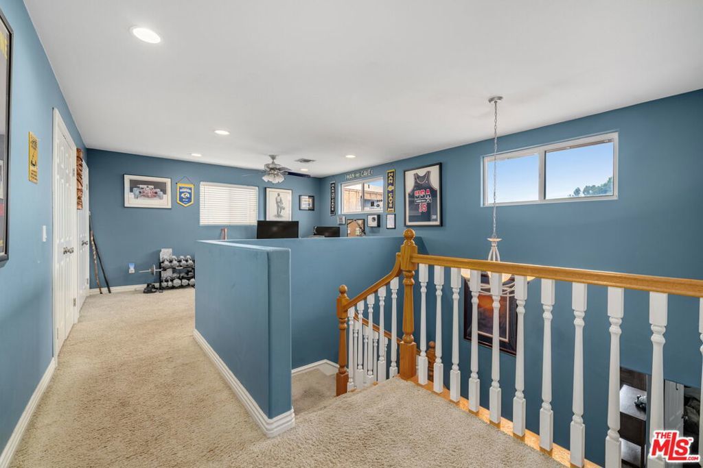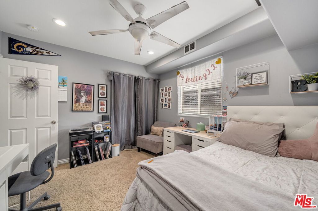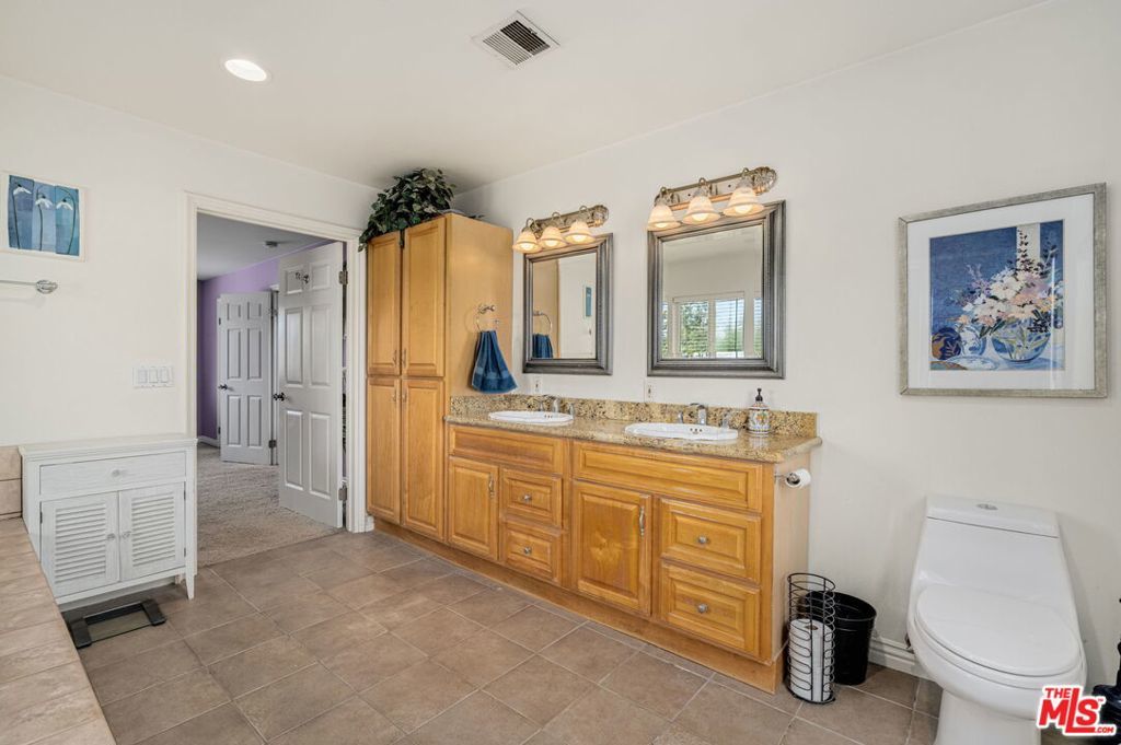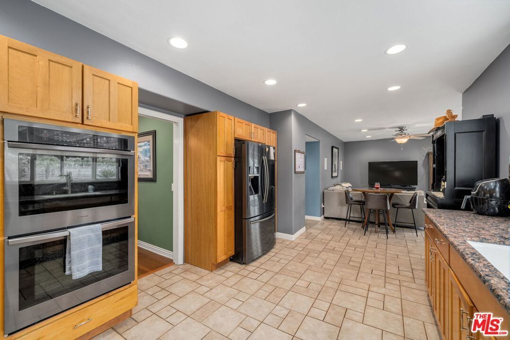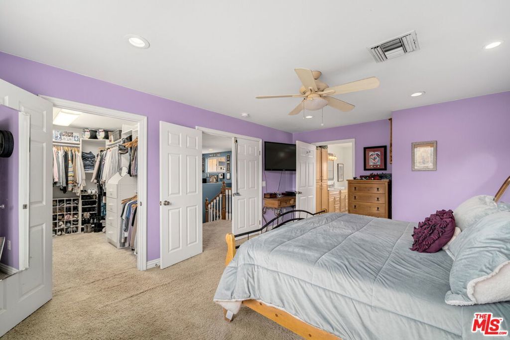 First time on the market in over 30 years, this beautifully maintained 3-bedroom, 2-bathroom home is ideally located in prime Woodland Hills on a large lot just north of Ventura Boulevard. Step inside to soaring ceilings, a bright living room with a great fireplace, an elegant grand staircase, and windows that fill the space with natural light. The spacious kitchen, complete with abundant cabinetry and stainless steel appliances, is a chef's delight and opens directly to the expansive backyard perfect for al fresco dining, entertaining under the stars, or hosting unforgettable pool parties. The home's comfortable layout features two generously sized bedrooms with ample closet space on the main level, while the entire upstairs is dedicated to a private primary suite retreat. This sanctuary includes a large walk-in closet, an oversized en suite bathroom with jetted tub and walk-in shower, and a separate versatile den that can serve as an office, lounge, or easily be converted into a fourth bedroom. Outside, enjoy your own private oasis with a Pebble Tec pool featuring a Baja shelf, and a separate attached spa with waterfall, all surrounded by drought-tolerant landscaping that provides year-round beauty with minimal upkeep. Move-in ready yet full of potential, this home offers the perfect opportunity to upgrade, add equity, and create your dream space. Ideally situated near Ventura Boulevard, Topanga Westfield, the upcoming Ram's Village (get into the neighborhood while you can!), fine dining, and more, this rare offering captures the best of the California lifestyle in one of the Valley's most sought-after neighborhoods.