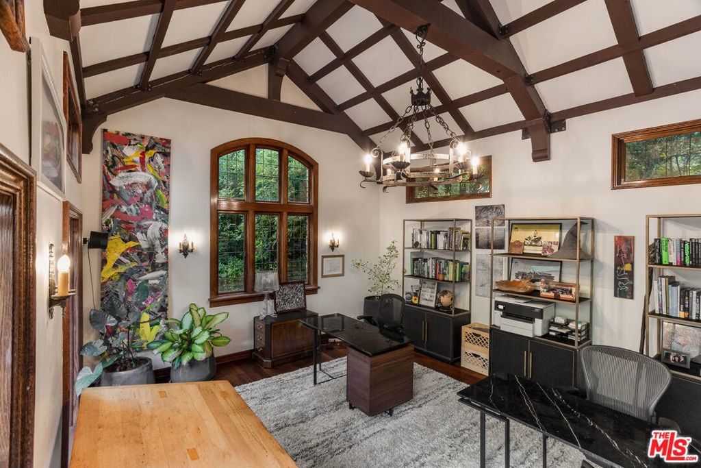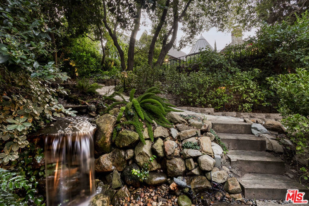 Secluded behind wrought iron gates, this historic Woodland Hills retreat revisits a magical era in the days of Hollywood. Originally owned by director Michael Curtiz, this private escape has housed some of Hollywood's biggest names. The original owner meticulously emulated the design from an English Cottswald cottage and imported materials and trees to build this retreat. The current owner has expanded on the property staying true to the architecture that makes it so appealing. Stepping into this one of a kind residence you will be surrounded by the elegant yet rustic environment this homes provides. From the exposed beam ceilings, oak flooring, iron and brass railings and stunning hand-made windows throughout. Significant recent upgrades and additions have been done in past few years adding a peaceful guest bedroom wing with 2 large en-suite bedrooms. A tastefully reimagined chefs kitchen was recently built with premium appliances and custom cabinetry. Boasting room for all your loved ones and guests, the property boasts Two detached guest quarters with its owns systems. One of which is perfect for home office, den or guest suite with beautiful vaulted ceilings and double French doors overlooking the impressive outdoors. Step outside to the serene grounds and enjoy a peaceful relationship with nature boasting a sweeping stream, waterfalls, terraced patios and a custom built workshop! Truly a one of one property offering unrivaled privacy and a magical environment to live and thrive.