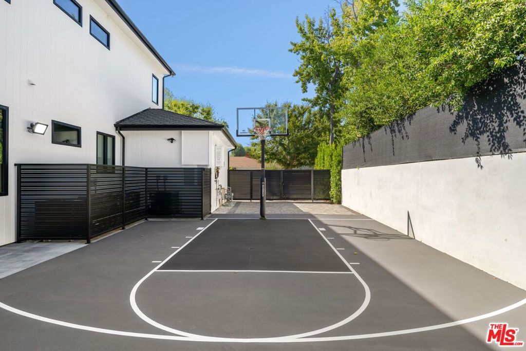 Welcome to the epitome of modern luxury nestled in the exclusive Amestoy Estates! Every inch of this breathtaking residence, thoughtfully crafted by Ossi Designs, speaks to sophistication and artistry. Enter and be captivated by this brand-new Traditional masterpiece, where precision craftsmanship meets visionary aesthetics. Step onto the European oak floors, which guide you through an open layout flawlessly integrating spacious living and dining areas with seamless indoor outdoor experience.At the heart of this home lies a bespoke chef's kitchen, an absolute showpiece featuring custom solid oak cabinetry, exquisite Taj Mahal quartzite leather-finish countertops, and elite Thermador appliances. Ascend to the upper level to find a serene primary suite with a private balcony, rustic oak ceilings, and a luxurious ensuite bathroom, offering a peaceful retreat. Each upstairs bedroom is a showcase of elegance, embodying meticulous attention to detail.Outside, an expansive backyard paradise awaits, inviting you to unwind by the sparkling pool, relax under the covered cabana beside a cozy fireplace, or savor culinary creations at the fully-equipped BBQ area. For recreation, a private sports court adds a spirited touch, perfect for games and entertainment. The detached ADU, filled with natural light from grand glass doors, offers a charming separate living space with its own bedroom, bathroom, and full kitchen, perfect for guests or rental potential.Indulge in cinematic experiences in the dedicated home theater, adding a layer of entertainment within your own residence. Further elevating the lifestyle is the advanced Control4 smart home system, ensuring integration of lighting, climate, security, and entertainmentall at your fingertips. This Encino estate redefines upscale living, blending timeless elegance with cutting-edge technology and offering a lifestyle of luxury beyond compare.