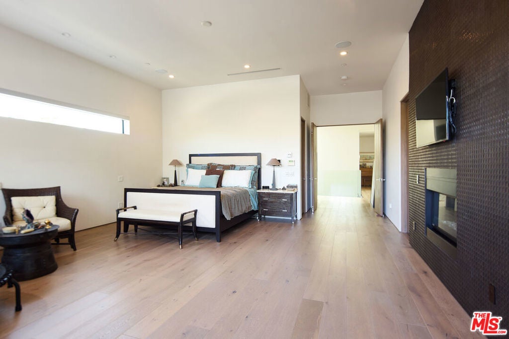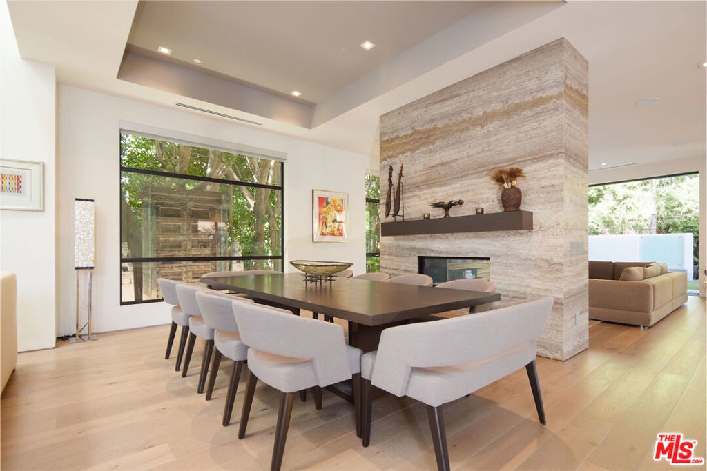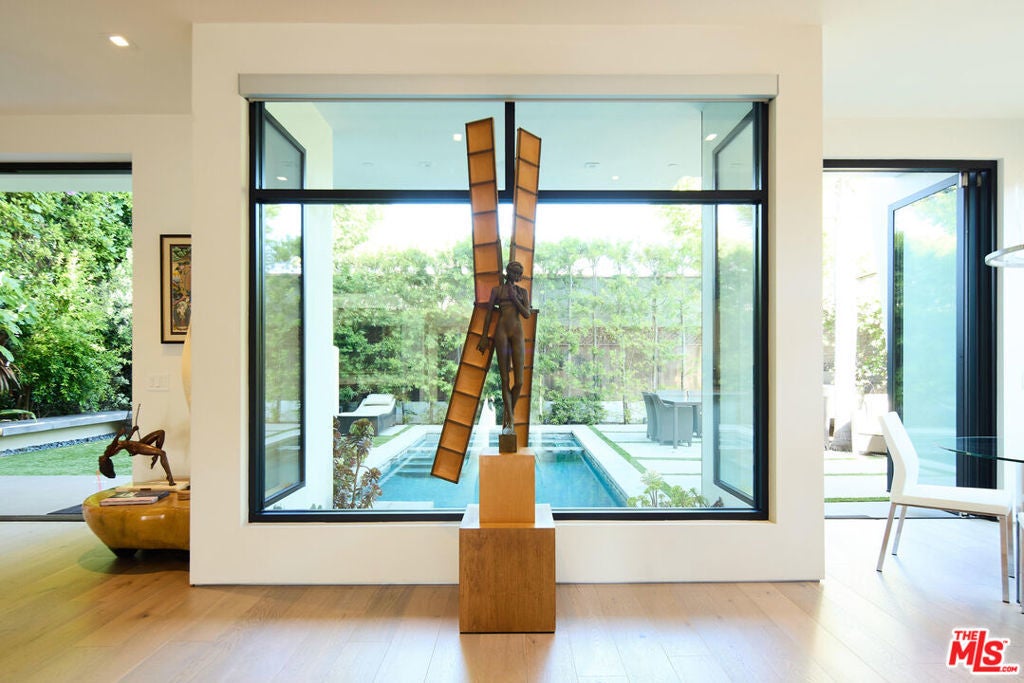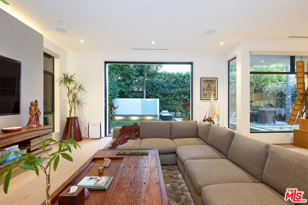 Welcome to an extraordinary architectural triumph nestled in the heart of coveted West Hollywood - where visionary design harmonizes effortlessly with the essence of luxurious California living. This tranquil sanctuary offers a refined blend of modern innovation and timeless elegance, creating an environment that is both inspiring and inviting. Flooded with natural light, the expansive open-concept layout unveils (5) generously proportioned en-suite bedrooms and (5) impeccably designed bathrooms. Each private suite is enhanced with direct access to oversized balconies, artfully blurring the lines between indoor comfort and outdoor serenity. Meticulously conceived with an eye for design and craftsmanship, the home features soaring volume ceilings and expansive pocket doors that vanish to seamlessly unite the interior and exterior spaces. A custom chef's kitchen serves as the heart of the home, appointed with top-tier appliances and designer finishes, while a dramatic open staircase serves as a striking architectural centerpiece. The meticulously curated landscaping envelops both the front entry and the private backyard and pool offering lush greenery and a serene aesthetic that enhances the home's sense of privacy and tranquility. Every detail has been thoughtfully considered from exquisitely tiled bathrooms to a temperature-controlled walk-in wine room and a fully integrated home automation system that ensures modern convenience at every turn. The primary suite redefines indulgence, presenting a private haven complete with a cozy fireplace, dual oversized walk-in closets, an expansive private balcony, and a spa-quality bathroom featuring double vanities, a deep soaking tub, and a separate glass-enclosed rainfall shower. Created with both entertainment and relaxation in mind, the backyard retreat is a private oasis. It boasts a sleek outdoor fireplace, a built-in barbecue, and yard perfect for hosting gatherings or enjoying quiet moments under the California sun. Positioned in one of Los Angeles' most dynamic and desirable neighborhoods, this residence offers unrivaled access to premier dining, upscale shopping, and a vibrant cultural scene. Just steps from iconic Melrose Avenue, the home's walkable location and lively surroundings capture the very spirit of the West Hollywood lifestyle - making it a rare offering of sophistication, comfort, and urban charm.