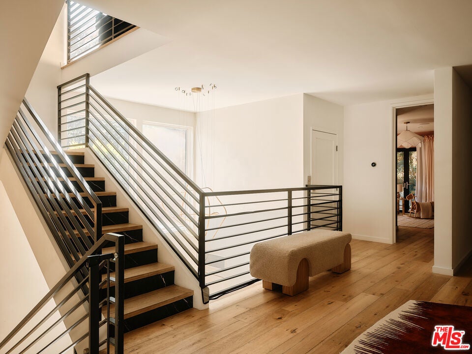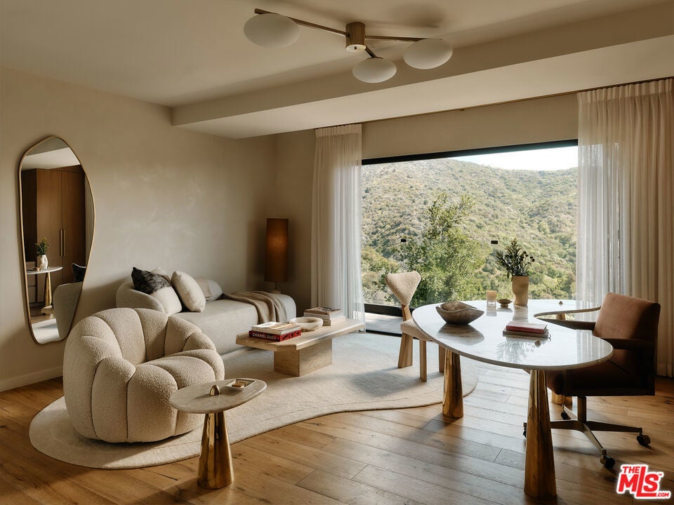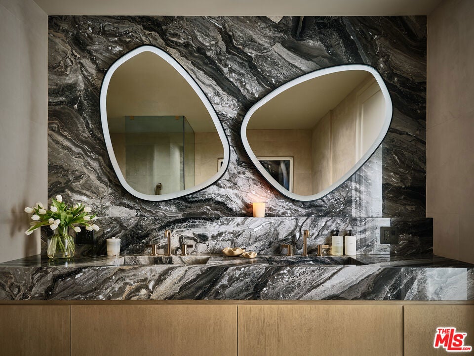 As featured in Architectural Digest, this modern Brentwood estate offers 7 bedrooms, 10 bathrooms, and sweeping ocean and canyon views. Set on a lush, private lot, the residence balances refined architecture with effortless indoor outdoor living. Walls of glass and natural materials flood the home with light and frame the landscape from nearly every room. Multiple patios and connected entertaining areas create an easy flow for hosting gatherings or quiet everyday moments. The chef's kitchen pairs top-tier appliances with clean, modern lines and bold designer details - equally at home for early morning coffee or a lively dinner party. The serene primary suite offers a spa-worthy bath, expansive walk-in closet, private balcony, and warm, curated finishes. Other bespoke features include an intimate, clubroom-style speakeasy, a dedicated gym/wellness center, and a 1,000 sq ft rooftop deck that captures the breathtaking views. Designed for privacy and connection, the home transitions effortlessly between vibrant entertaining and tranquil retreat - California living at its finest.