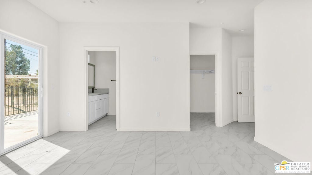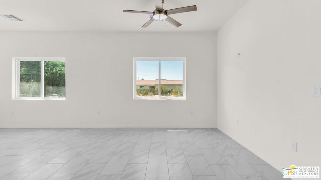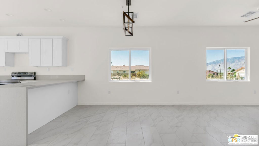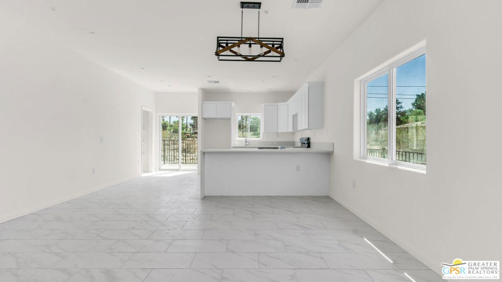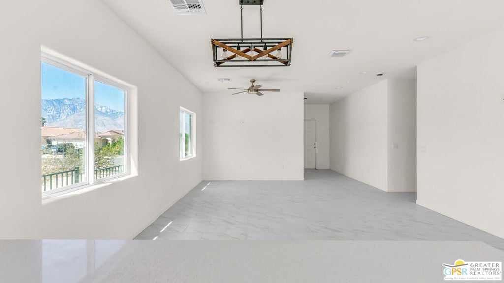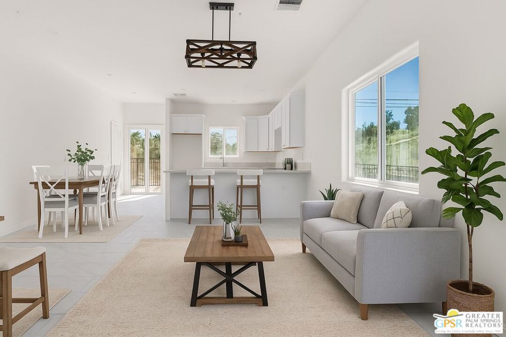 Contemporary Desert Living With Private Guest Quarters! Welcome to this brand-new contemporary home in Desert Hot Springs, where modern design meets comfort and convenience. This single-story residence features an open-concept layout with stylish upgrades that feature tile flooring that flows seamlessly throughout the living spaces. Clean lines and modern finishes create a sleek, inviting atmosphere. The thoughtfully designed kitchen with stainless steel appliances , waterfall granite counter top opens to the living and dining areas, making it ideal for entertaining or relaxing at home. A special highlight of this property is the private guest quarters, offering flexibility for visiting family, friends, or even a home office. With its combination of contemporary elegance, practical design, and the ease of single-level living, this home is move-in ready and perfectly situated to enjoy everything Desert Hot Springs has to offer. Equipped with Central AC / Heat and Solar. Enjoy your mountain views while entertaining in your fenced back yard.